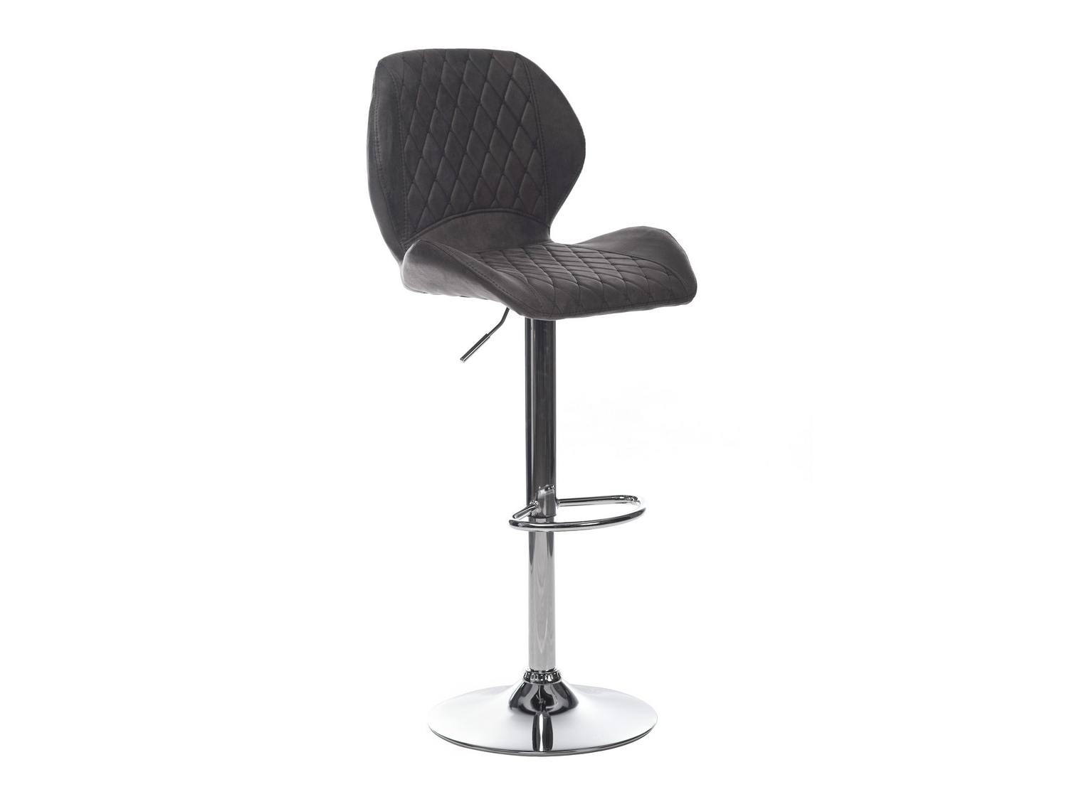 Сидіння з оббивкою зі штучного нубуку сірого кольору гармонійно поєднується з хромованою сталевою основою, створюючи лаконічний і привабливий вигляд.