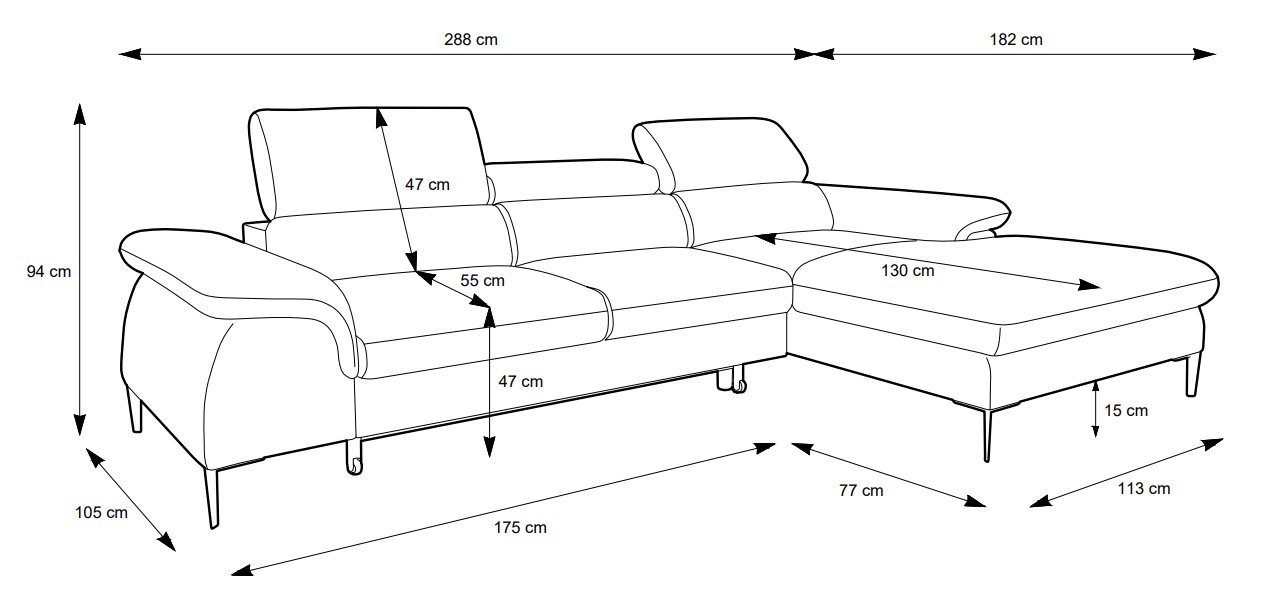 Диван кутовий розкладний БЛЮС М / BLUES M на ніжках Perfect Home Польща