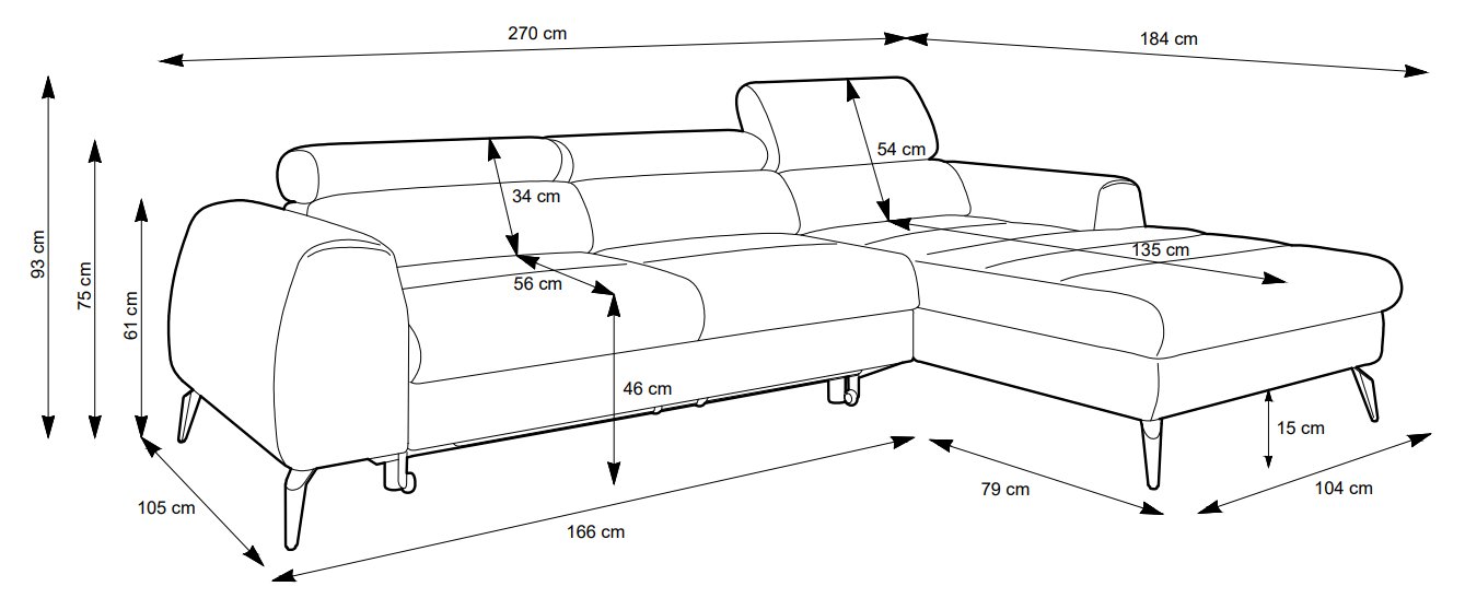 Диван кутовий розкладний БЛЮС Л / BLUES L на ніжках Perfect Home Польща