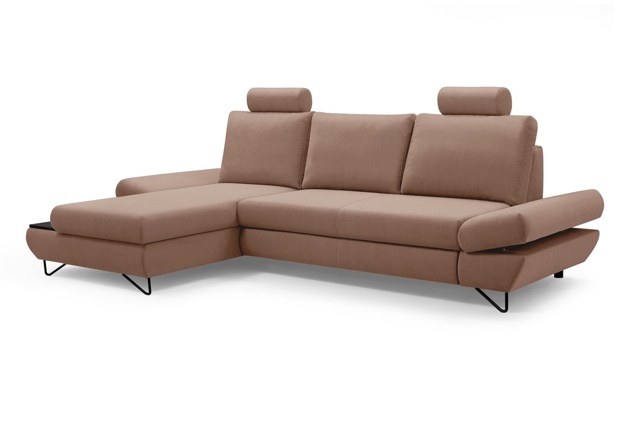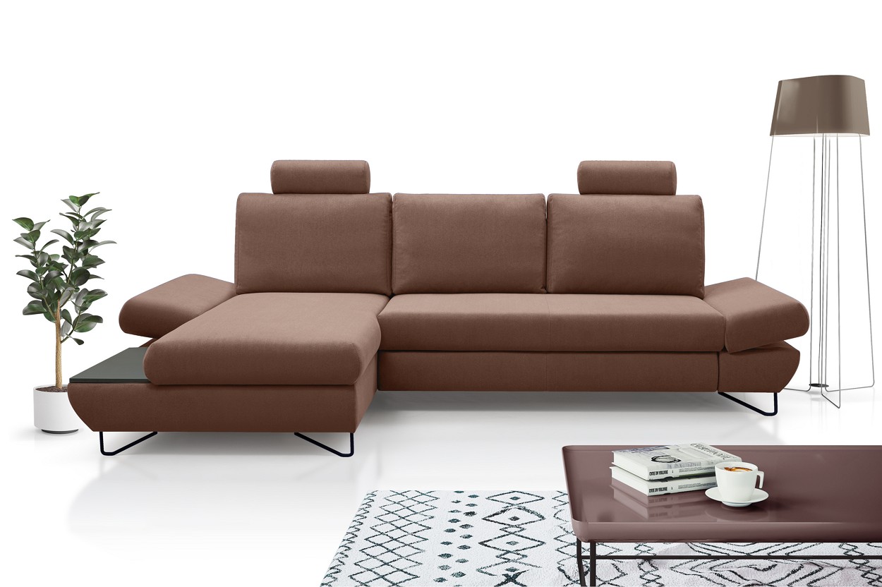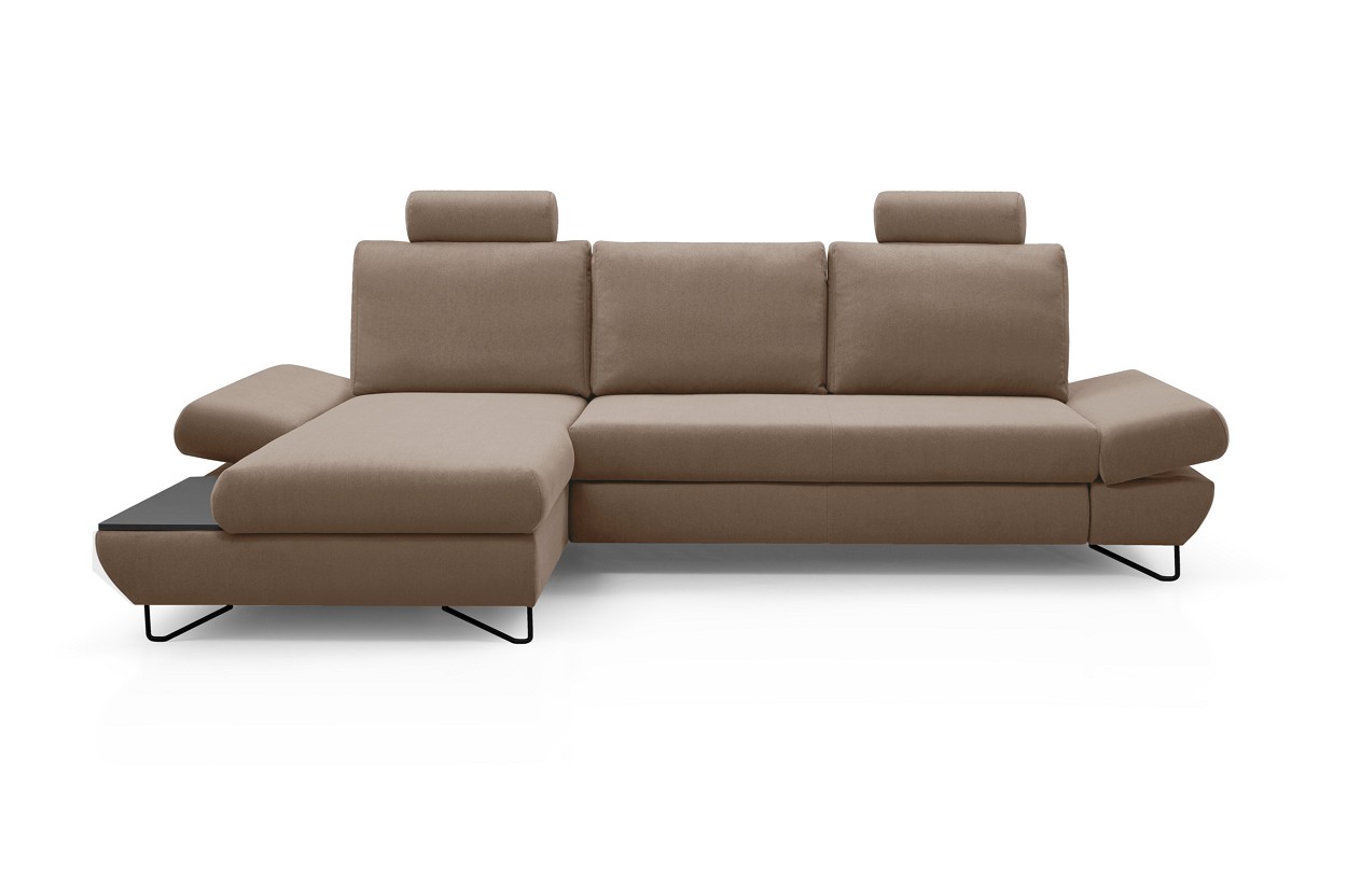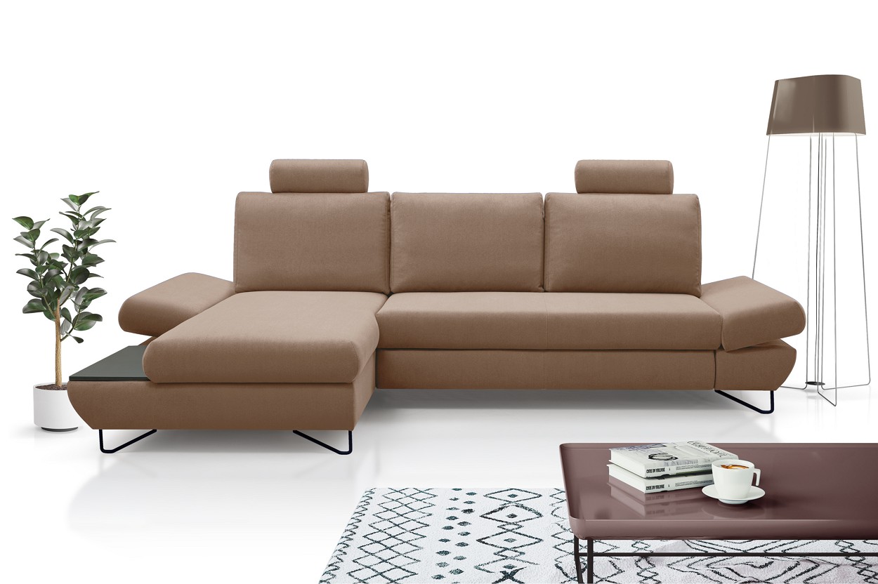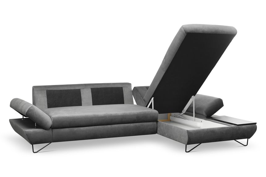 Якщо ви шукаєте багатофункціональний, середнього розміру, сучасний кутовий диван на ніжках, тоді Loft - це меблі для вас! Він має функцію спального місця з допоміжним розкладанням, завдяки якому розкладання меблів ще ніколи не було таким легким. Кутовий диван також оснащений контейнером для постільної білизни та розміщення додаткових джемперів або ковдр. Цікавими елементами є регульовані підлокітники, полиця з лакованого МДФ і підголівник, які можна встановлювати взаємозамінно. Меблі доступні в правосторонньому та лівосторонньому варіантах. Механізм Дельфін - один із найнадійніших і найпопулярніших механізмів трансформації диванів. Він дає можливість отримати рівне і зручне спальне місце з пружною основою. Цей механізм підходить для щоденного використання.