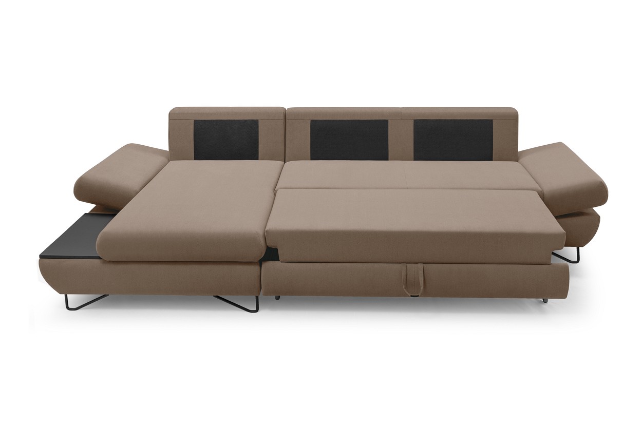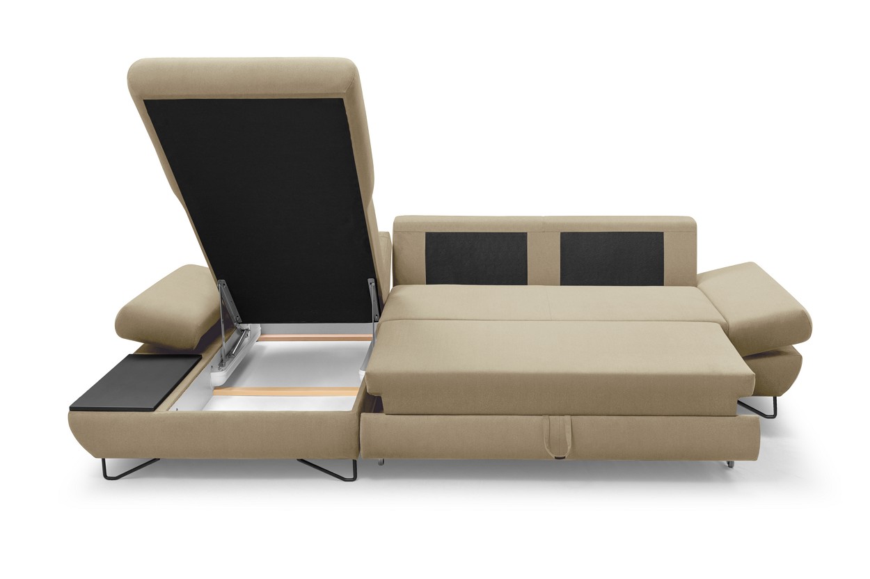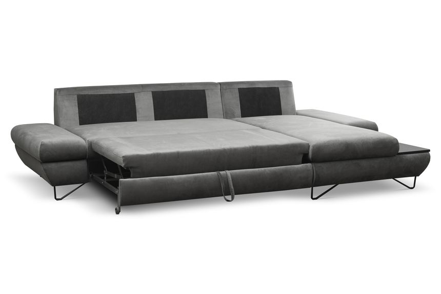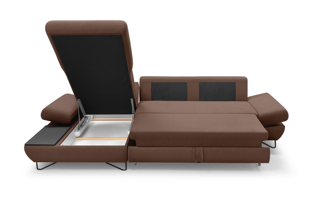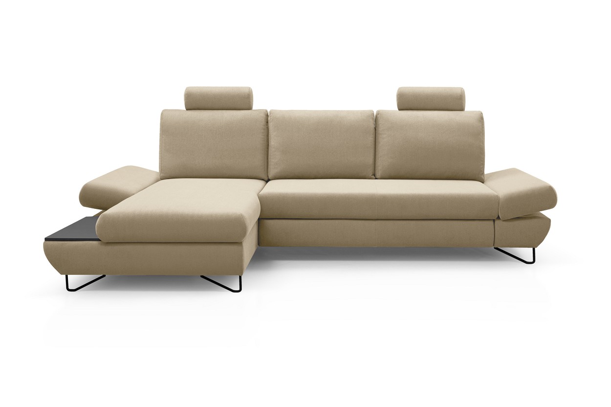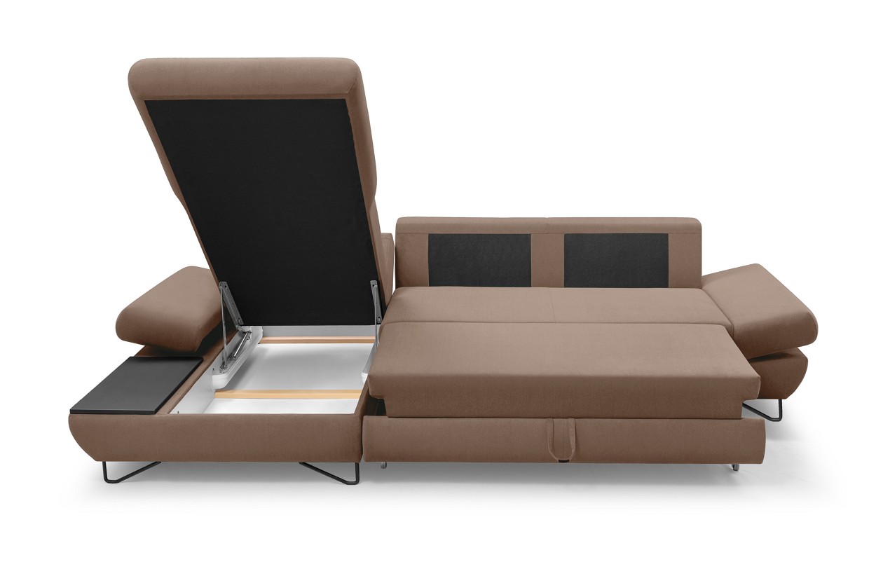 Якщо ви шукаєте багатофункціональний, середнього розміру, сучасний кутовий диван на ніжках, тоді Loft - це меблі для вас! Він має функцію спального місця з допоміжним розкладанням, завдяки якому розкладання меблів ще ніколи не було таким легким. Кутовий диван також оснащений контейнером для постільної білизни та розміщення додаткових джемперів або ковдр. Цікавими елементами є регульовані підлокітники, полиця з лакованого МДФ і підголівник, які можна встановлювати взаємозамінно. Меблі доступні в правосторонньому та лівосторонньому варіантах. Механізм Дельфін - один із найнадійніших і найпопулярніших механізмів трансформації диванів. Він дає можливість отримати рівне і зручне спальне місце з пружною основою. Цей механізм підходить для щоденного використання.