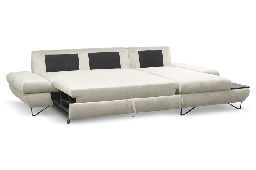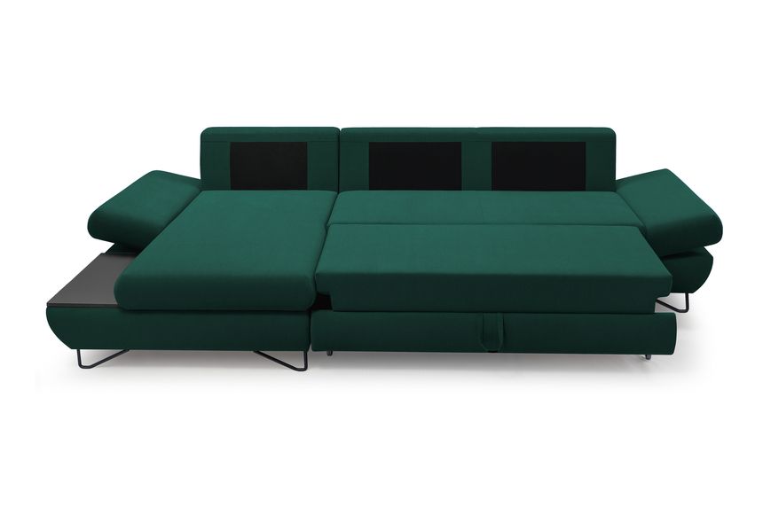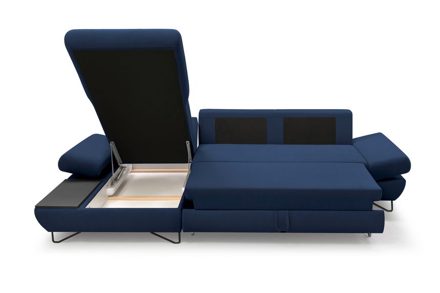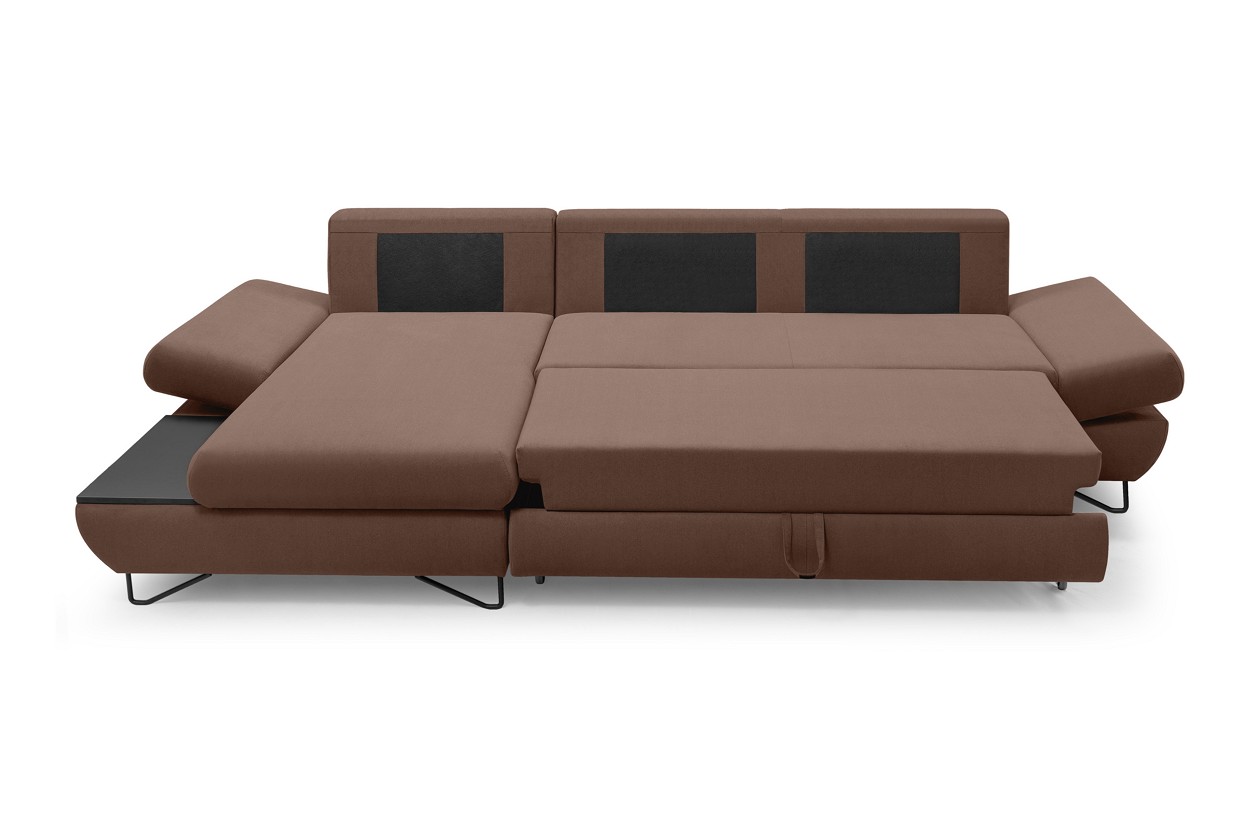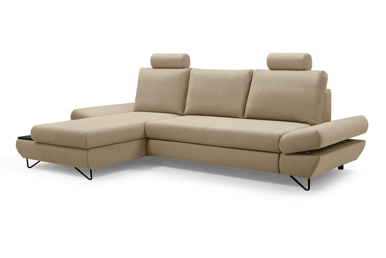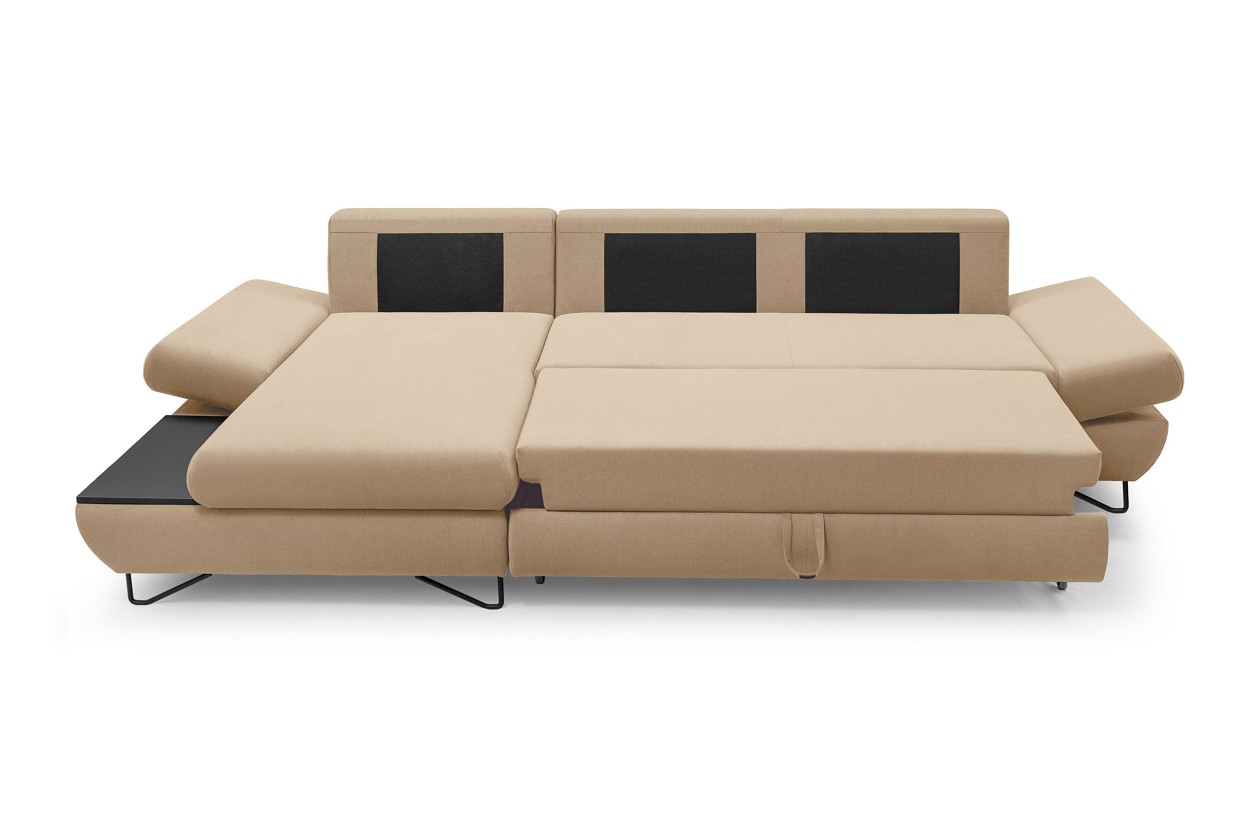 Якщо ви шукаєте багатофункціональний, середнього розміру, сучасний кутовий диван на ніжках, тоді Loft - це меблі для вас! Він має функцію спального місця з допоміжним розкладанням, завдяки якому розкладання меблів ще ніколи не було таким легким. Кутовий диван також оснащений контейнером для постільної білизни та розміщення додаткових джемперів або ковдр. Цікавими елементами є регульовані підлокітники, полиця з лакованого МДФ і підголівник, які можна встановлювати взаємозамінно. Меблі доступні в правосторонньому та лівосторонньому варіантах. Механізм Дельфін - один із найнадійніших і найпопулярніших механізмів трансформації диванів. Він дає можливість отримати рівне і зручне спальне місце з пружною основою. Цей механізм підходить для щоденного використання.