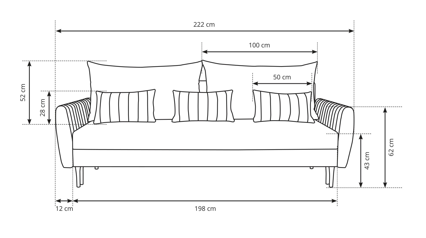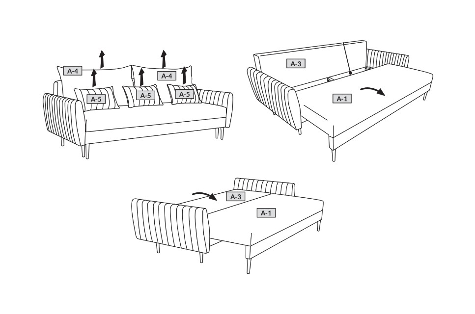 Диван розкладний Frezja на ніжках – сучасний диван з автентичними декоративними швами на підлокітниках і подушках. Механізм пантограф – один із надійніших механізмів. Тут немає петель на середньому стику, тому спальна поверхня виходить рівною і комфортною для сну. Механізм «Пантограф» - розкладається в 4 прості кроки: Сидіння легко піднімається вгору Тягнеться на себе Опускається вниз Спинка опускається на простір, що утворився У цьому просторі можна зберігати постільну білизну.