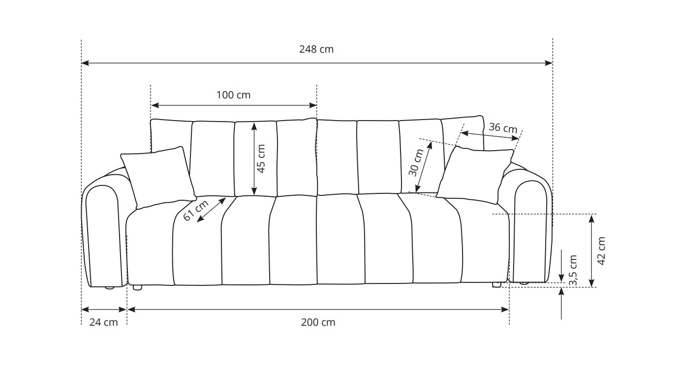 Диван прямий SATO - Великі м'які подушки для спинки, декоративна вертикальна строчка, вигнуті боковини та сидіння створюють ідеальний комплект. Декоративні подушки завершують образ. Цей прекрасний диван забезпечить вам надзвичайний комфорт і зробить ваш інтер'єр затишним та стильним.Легке розкладання в 4 кроки з системою «Пантограф»: