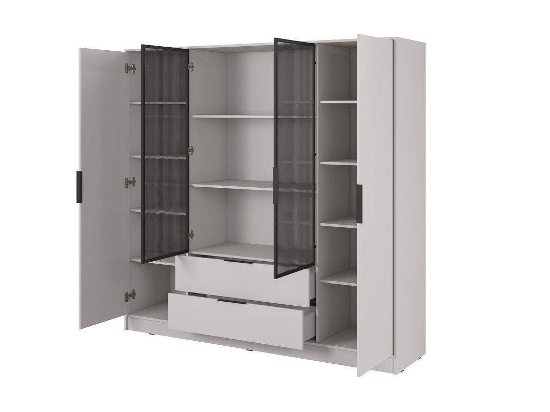 Гардеробна / шафа для одягу Perfect Home Келлі / Kelly 4DRM 4-дверна з центральними прозорими дверцятами та реєю Кашемір