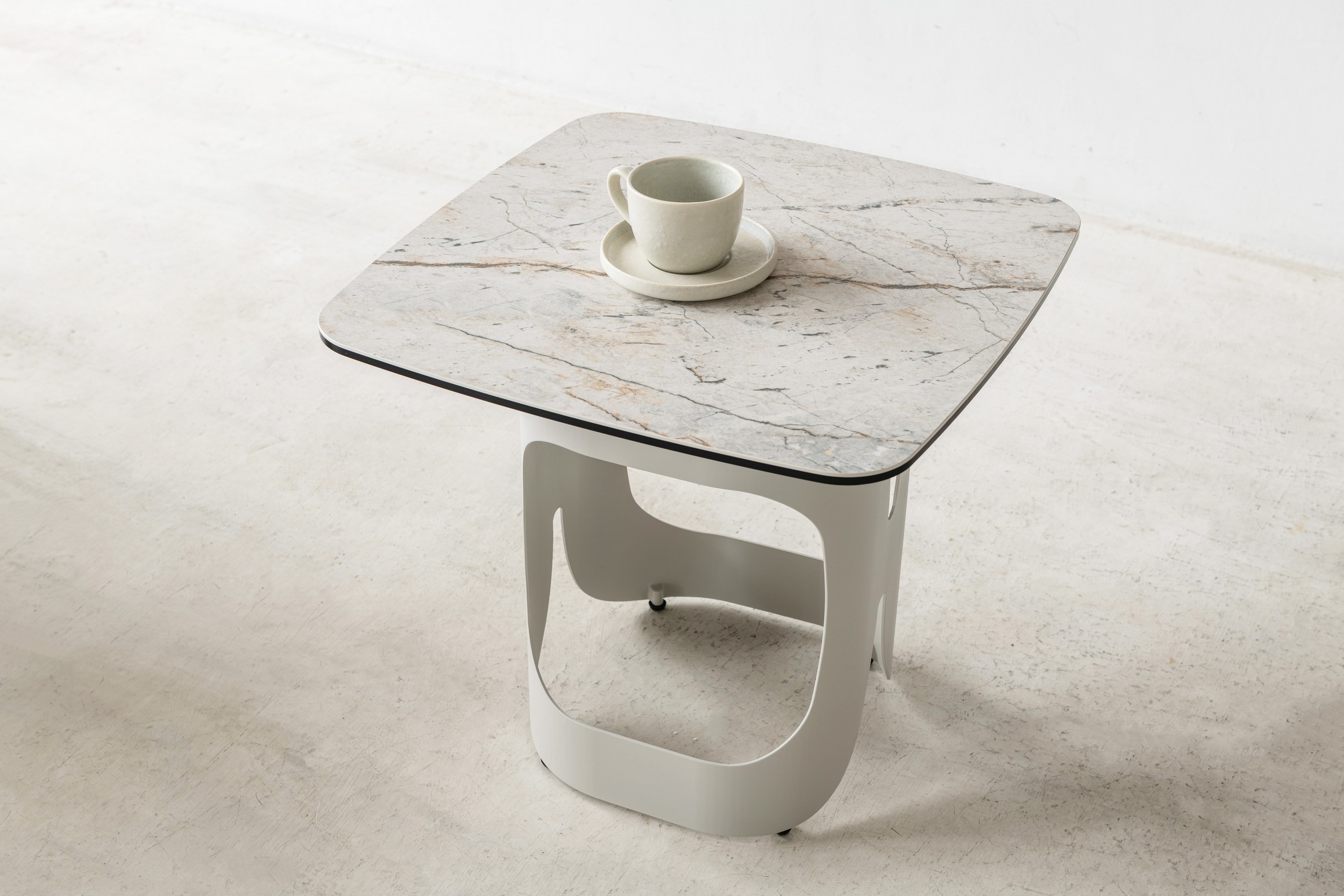 Кавовий стіл "Арно" сілвер рівер + айворі — це маленький, але виразний елемент інтер’єру, який одразу привертає увагу своїм сучасним дизайном. Його стільниця створена з комбінації матової кераміки та гартованого скла — поєднання, що виглядає стильно й водночас забезпечує високу практичність. Відтінок сілвер рівер нагадує природний камінь з його унікальними візерунками, створюючи ефект глибини та природної краси. Контрастна металева основа кольору айворі додає витонченості та легкості, підкреслюючи гармонію форм і відтінків.