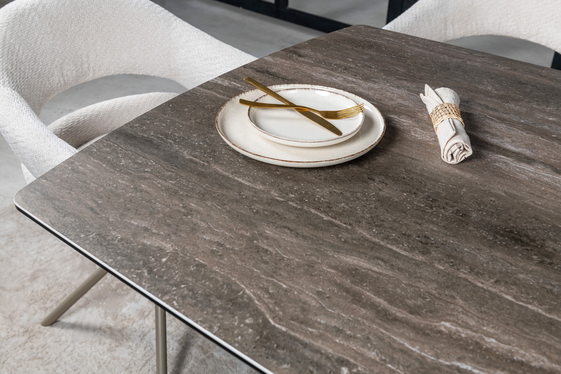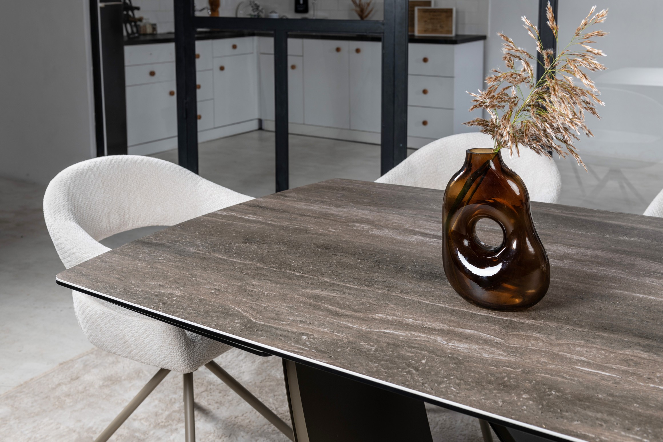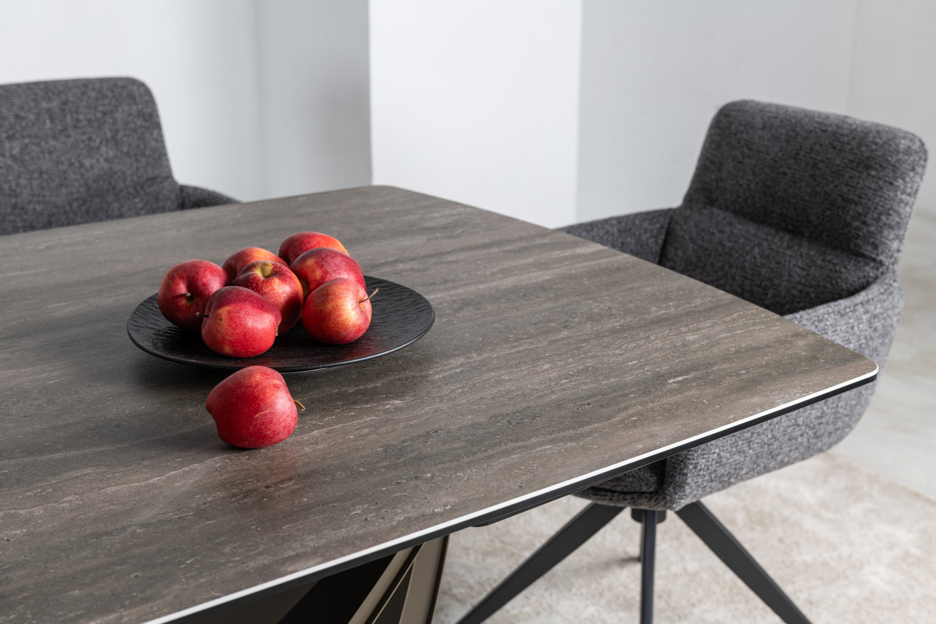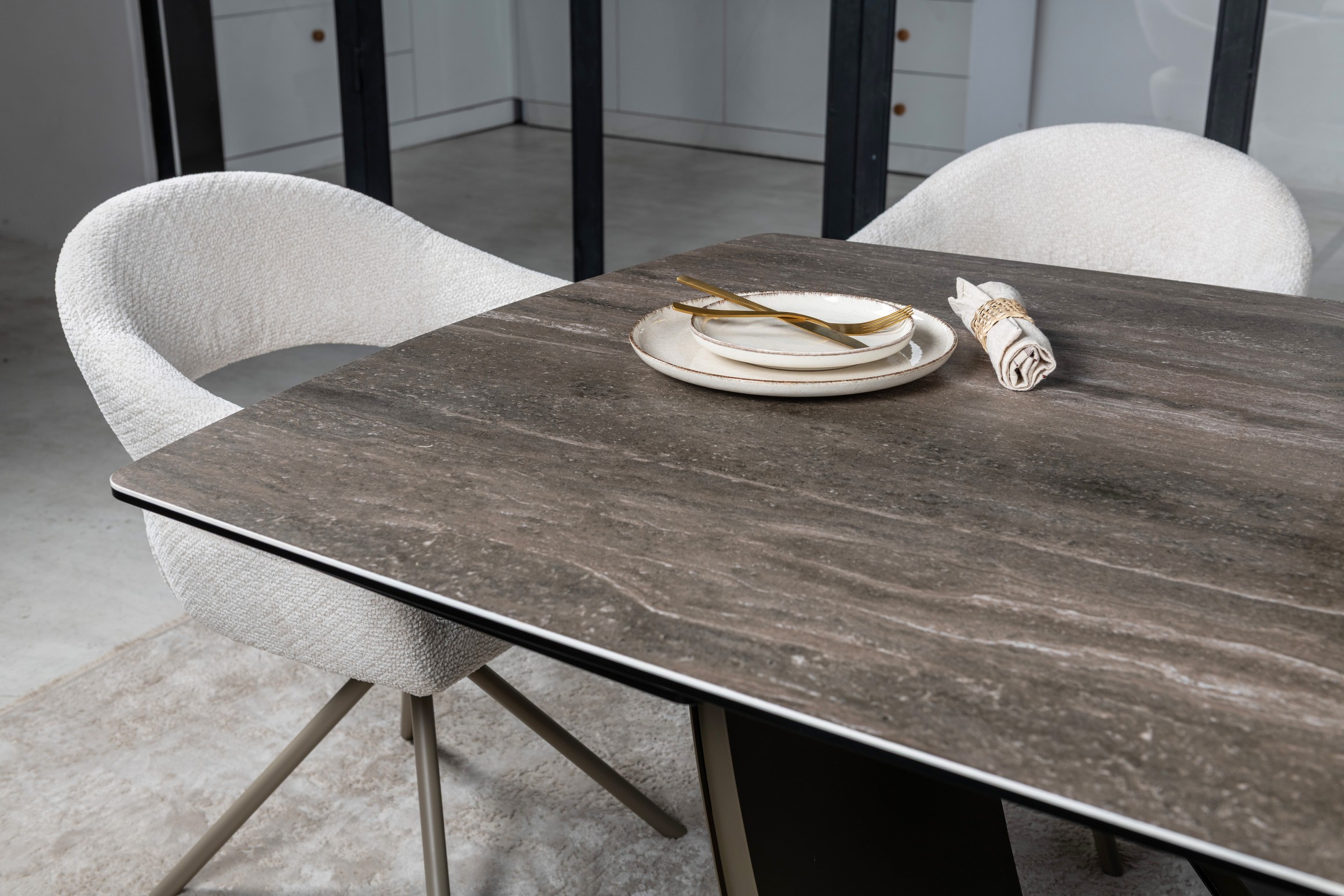 Стільниця виготовлена з високоякісної матової кераміки, посиленої гартованим склом. Вона не лише виглядає ефектно, а й є практичною — стійка до подряпин, перепадів температур і забруднень.