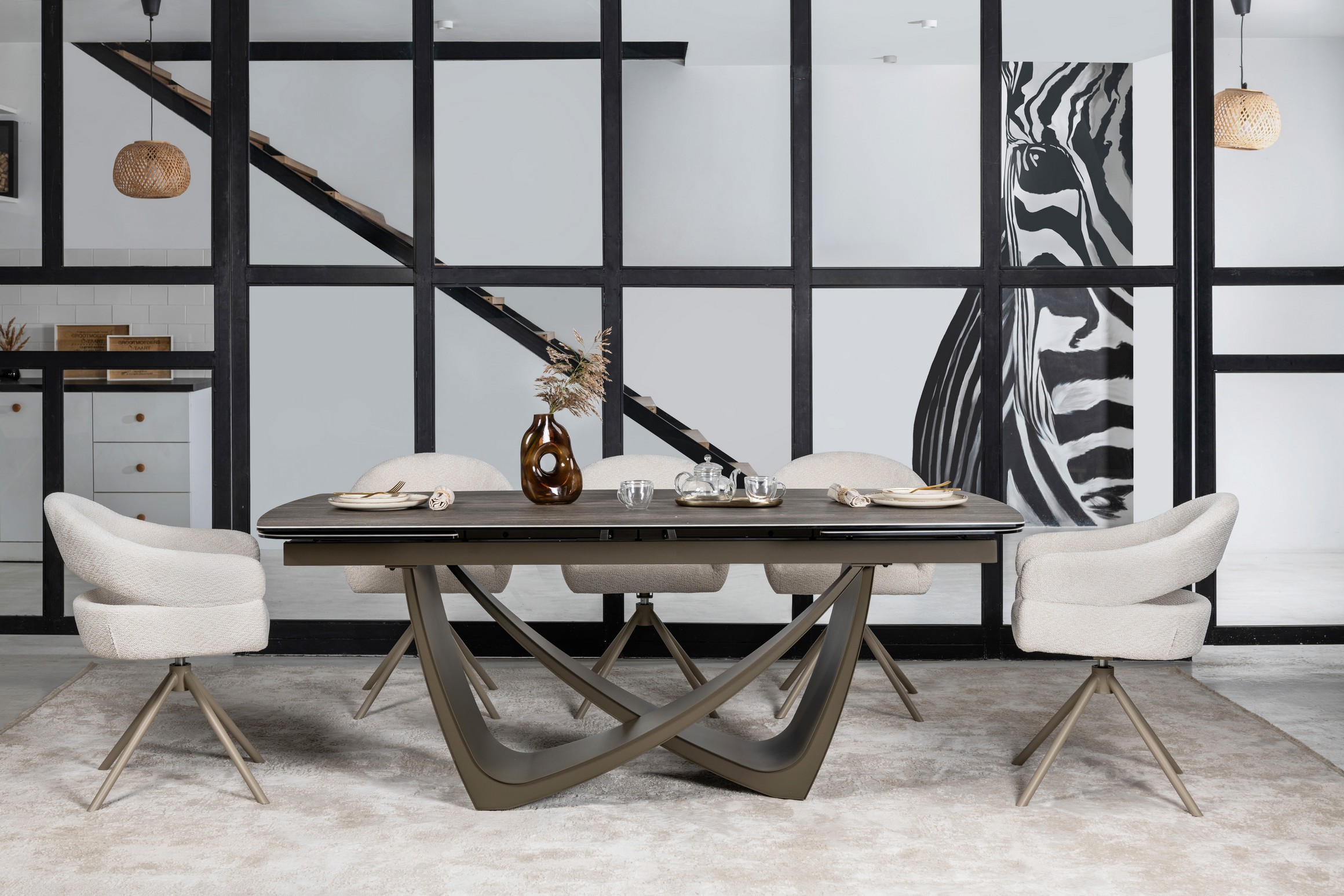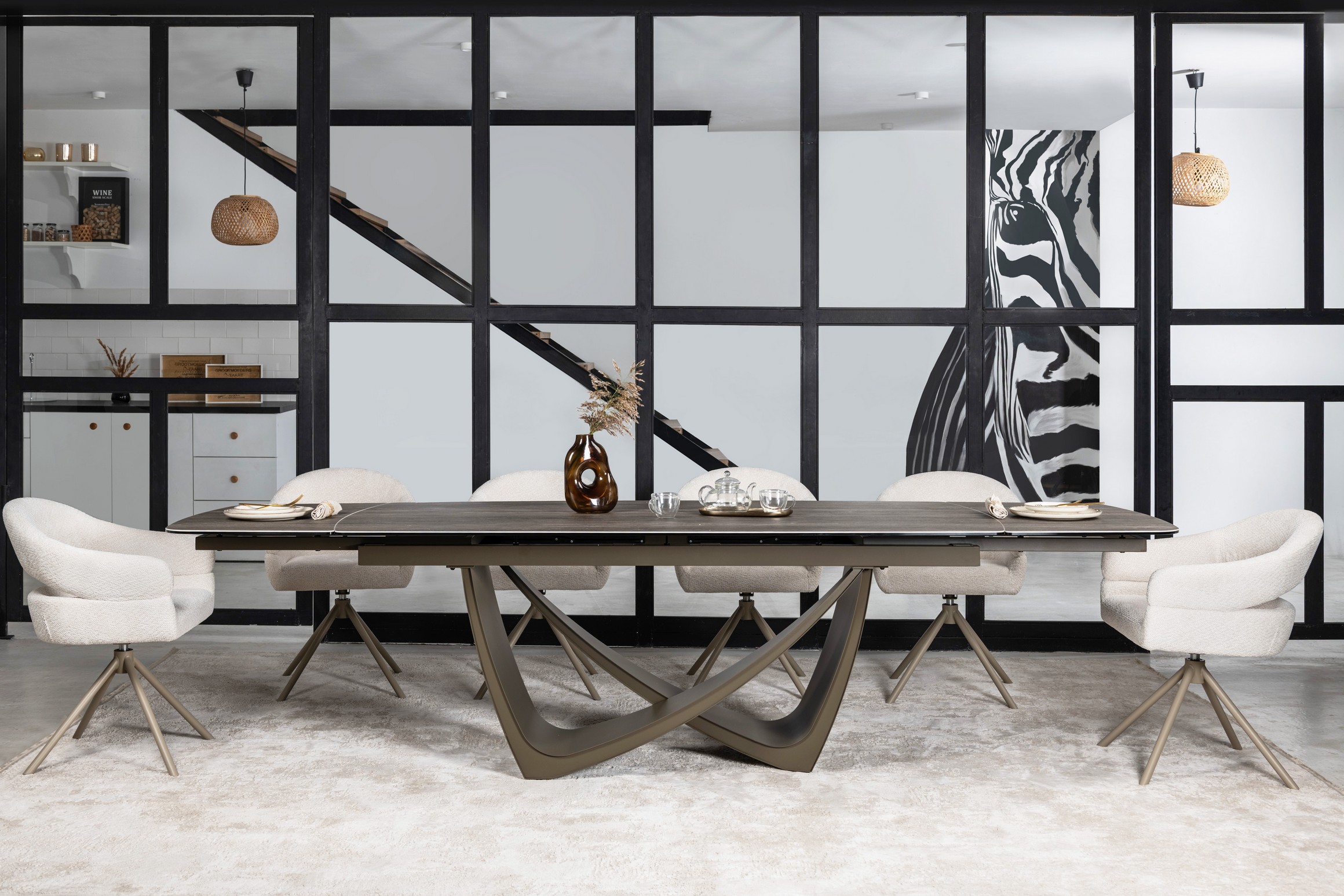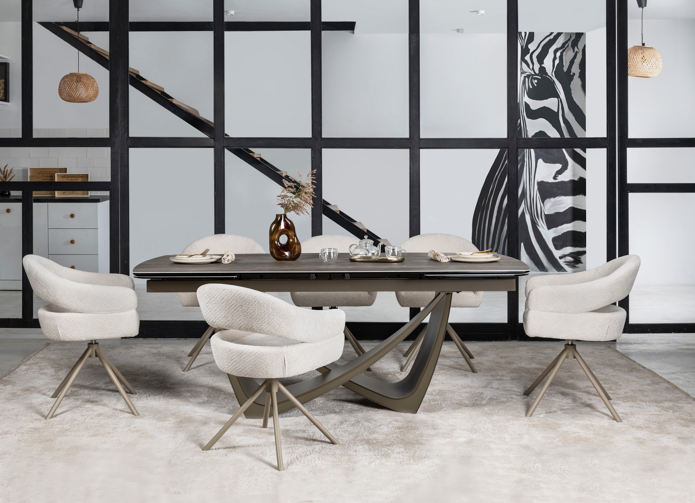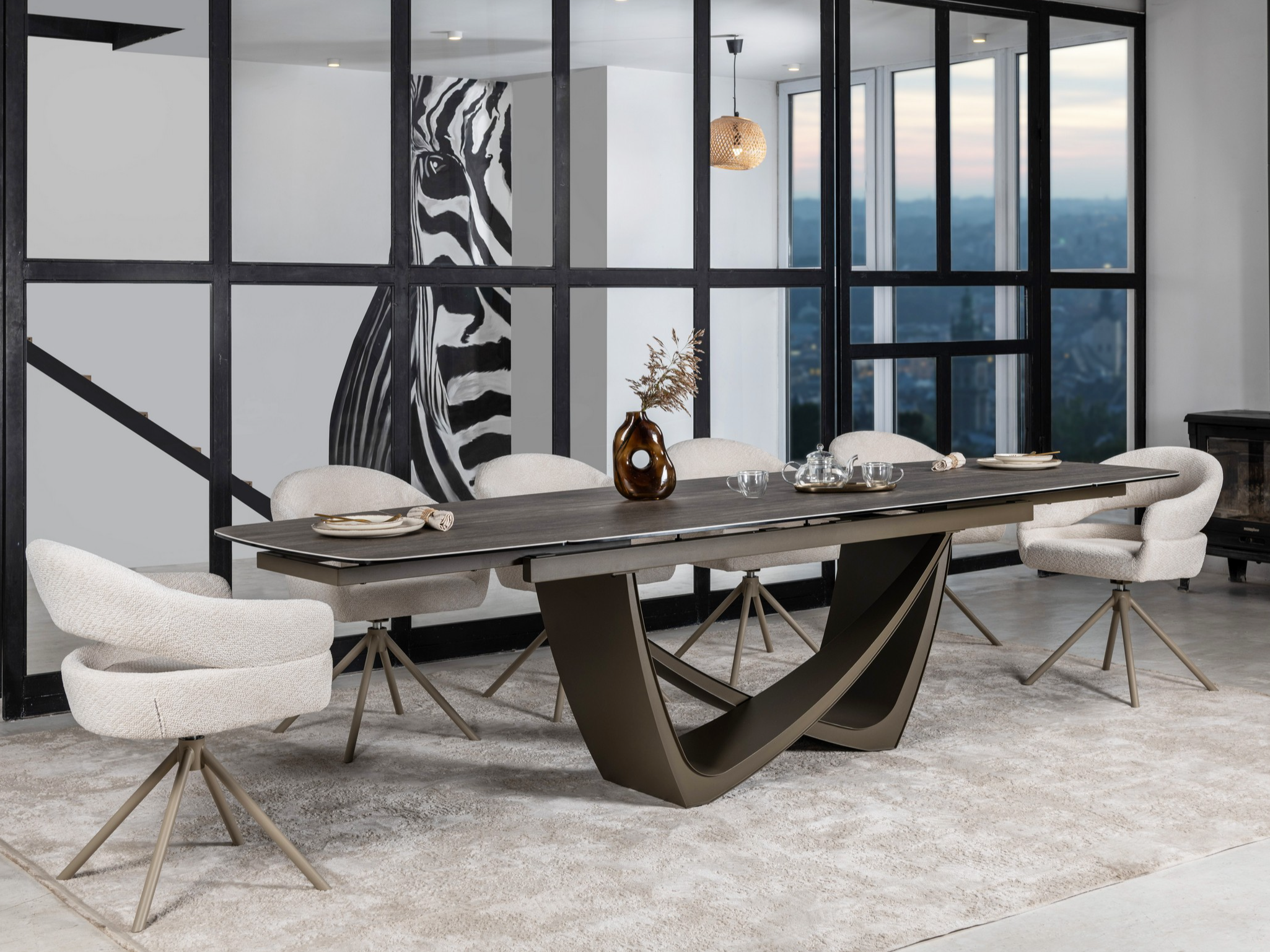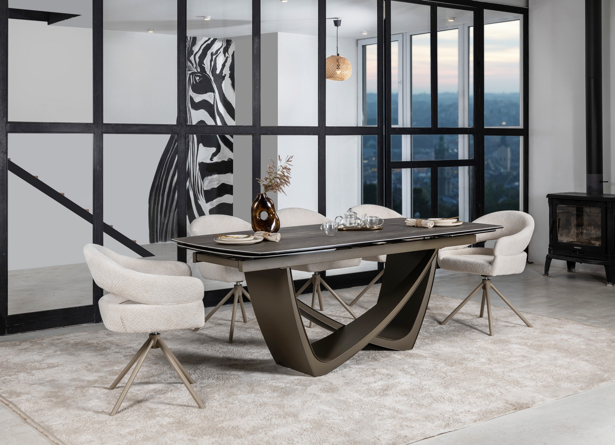 Керамічний стіл Беатріче TML-994 у відтінку неро зебрано + коричневий — це розкішне рішення для тих, хто цінує виразний дизайн, функціональність і довговічність. Благородне поєднання глибокого чорного кольору з природним деревним візерунком зебрано та теплим коричневим відтінком основи робить стіл вишуканим акцентом у сучасному, індустріальному чи лофт-інтер’єрі.