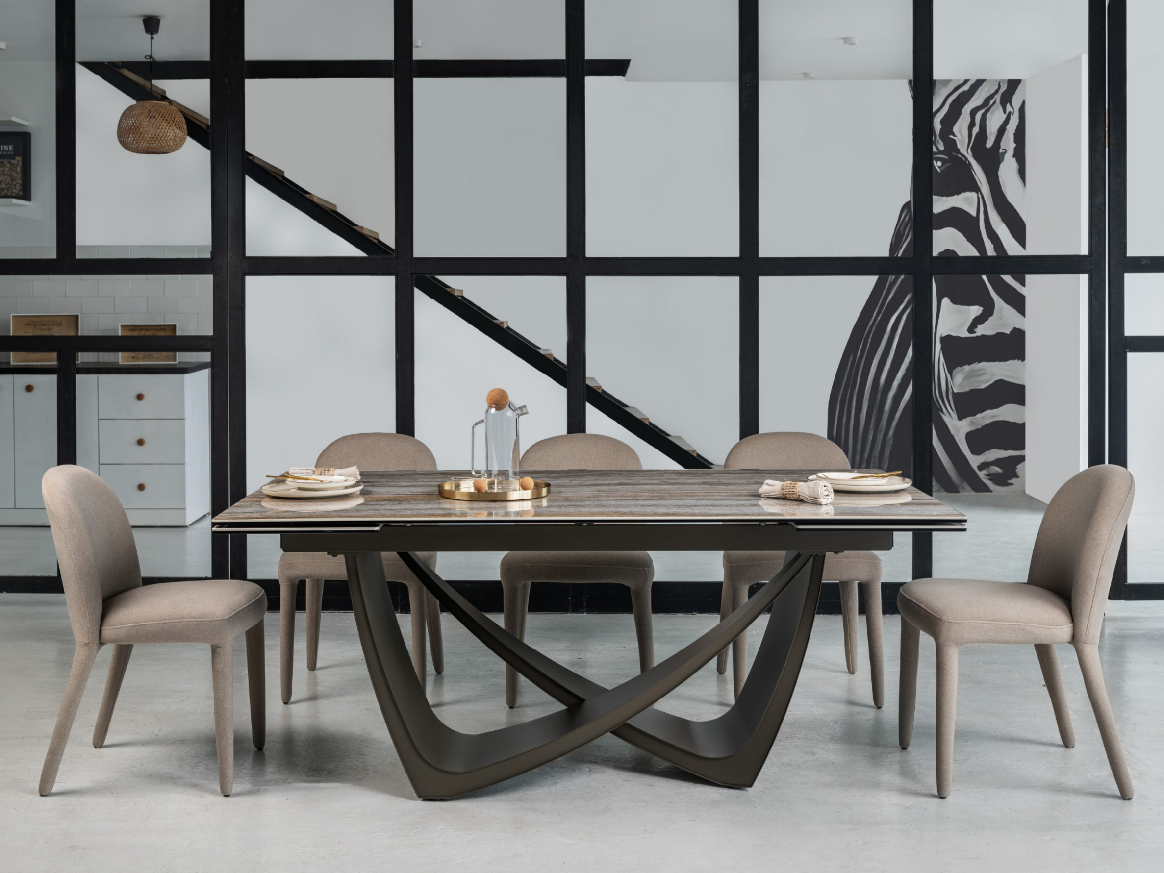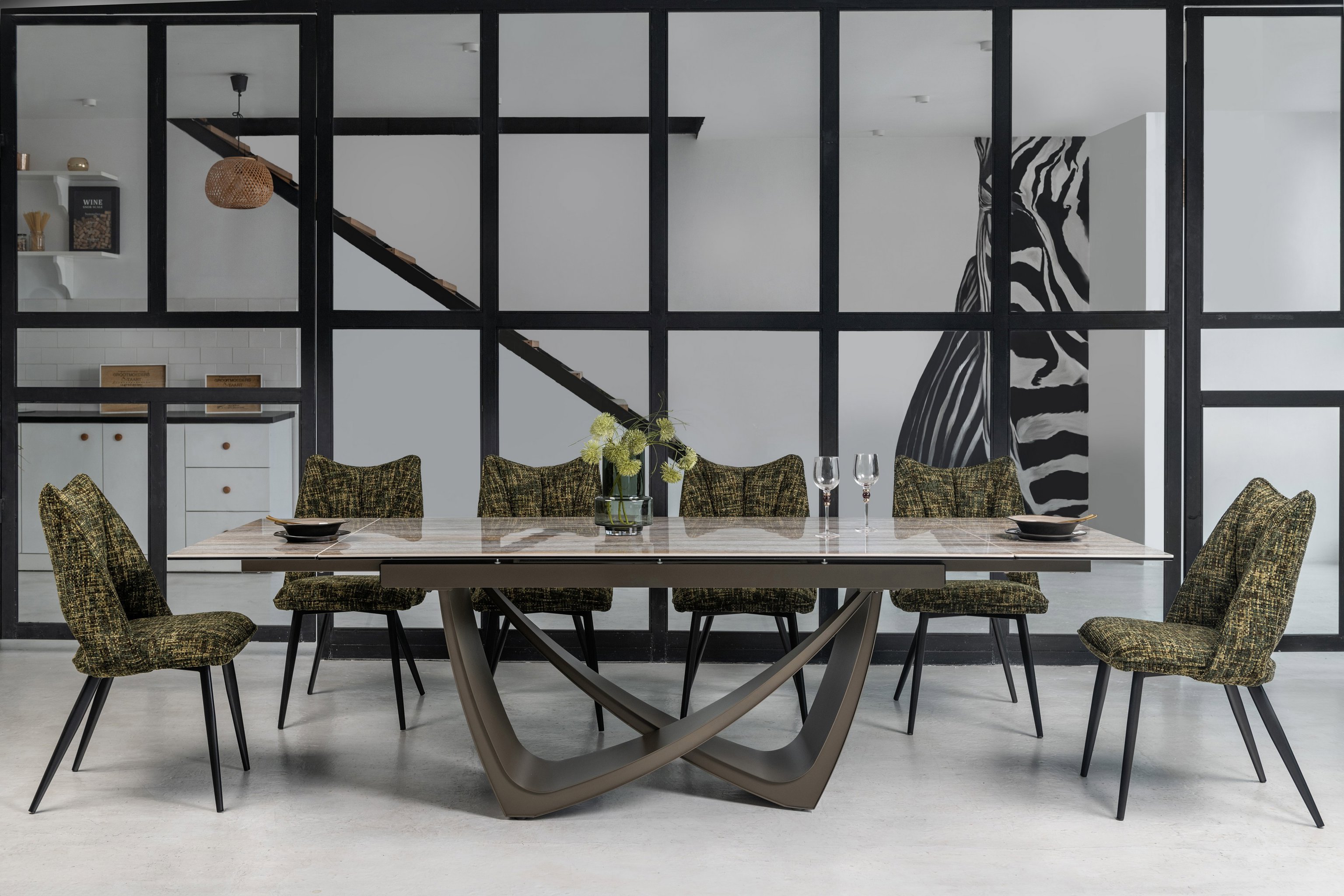 Цей стіл ідеальний для просторих кухонь або віталень, де важлива поєднання стилю, надійності та функціональності.