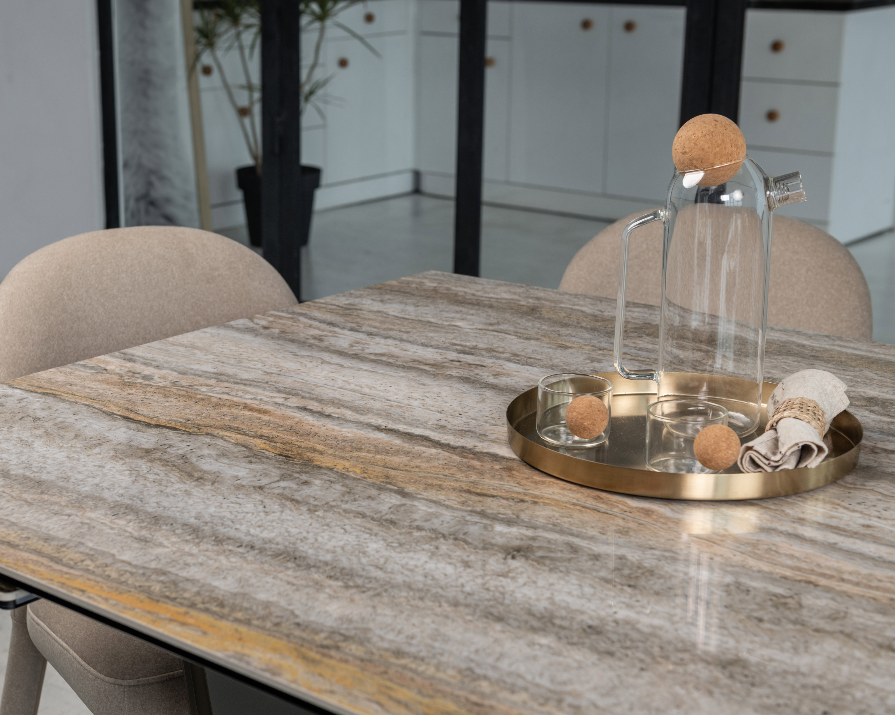 Колір тайгер травертін надає поверхні природної краси, нагадуючи мармурові текстури. Це додає інтер’єру розкішного та сучасного вигляду.