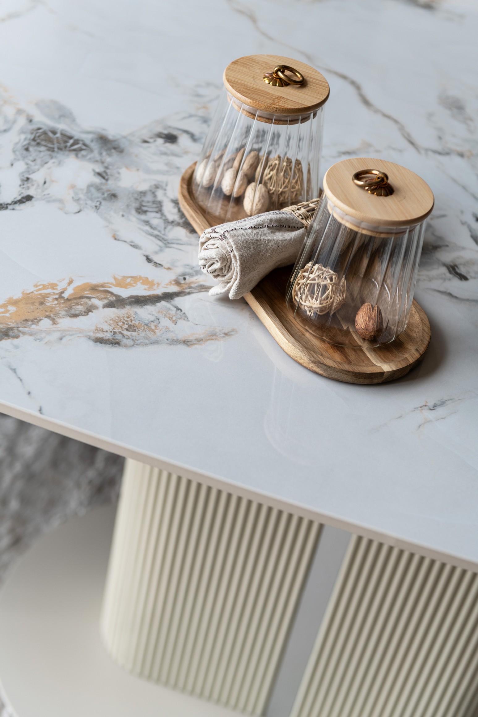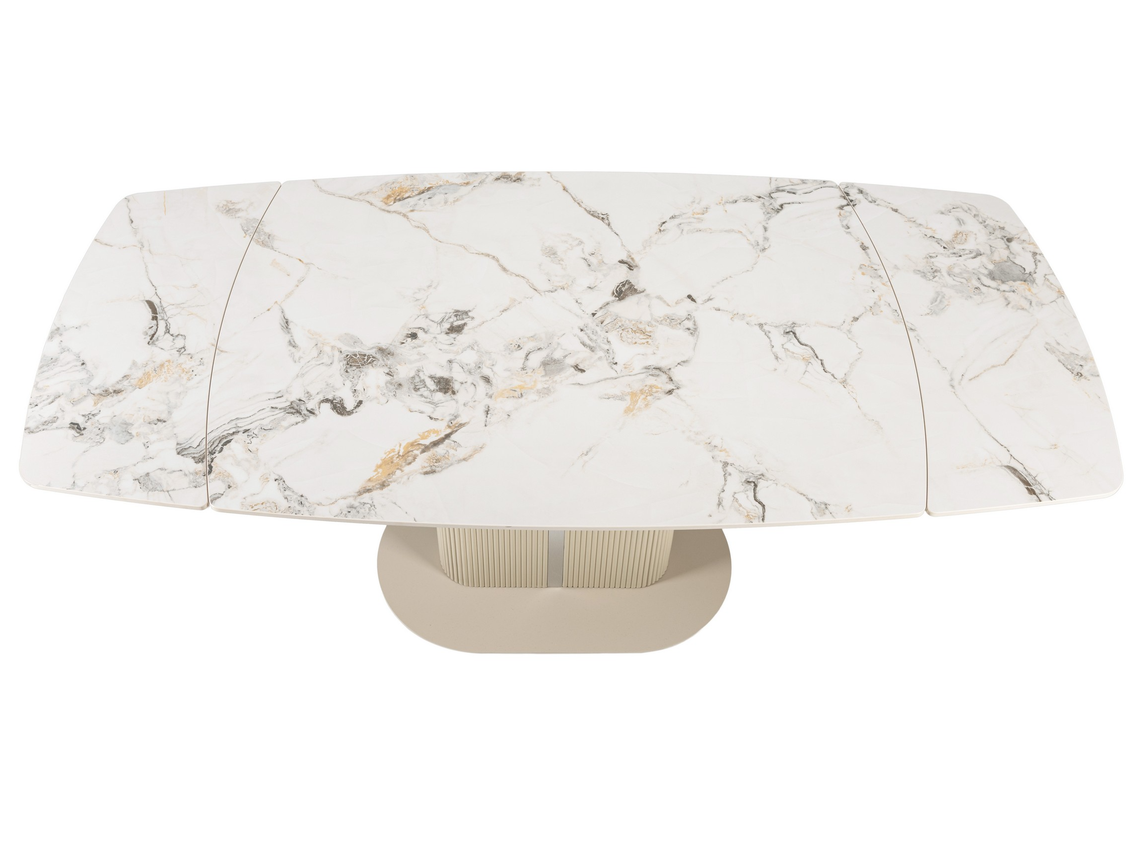 Керамічний стіл Комо TML-1306 у відтінку статуаріо анго + бежевий створений, щоб додати вашій оселі шарму та відчуття простору. Його глянцева стільниця з кераміки нагадує витончені прожилки мармуру, що грають світлом і підкреслюють глибину природного візерунка. Теплий відтінок статуаріо анго створює враження благородного каменю, а гладенька поверхня легко очищується та стійка до перепадів температур.