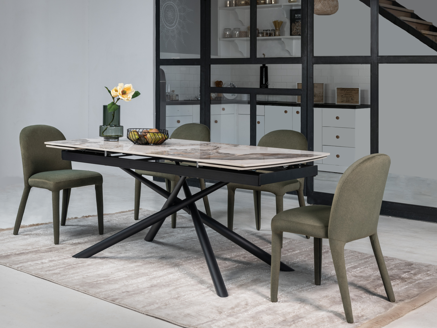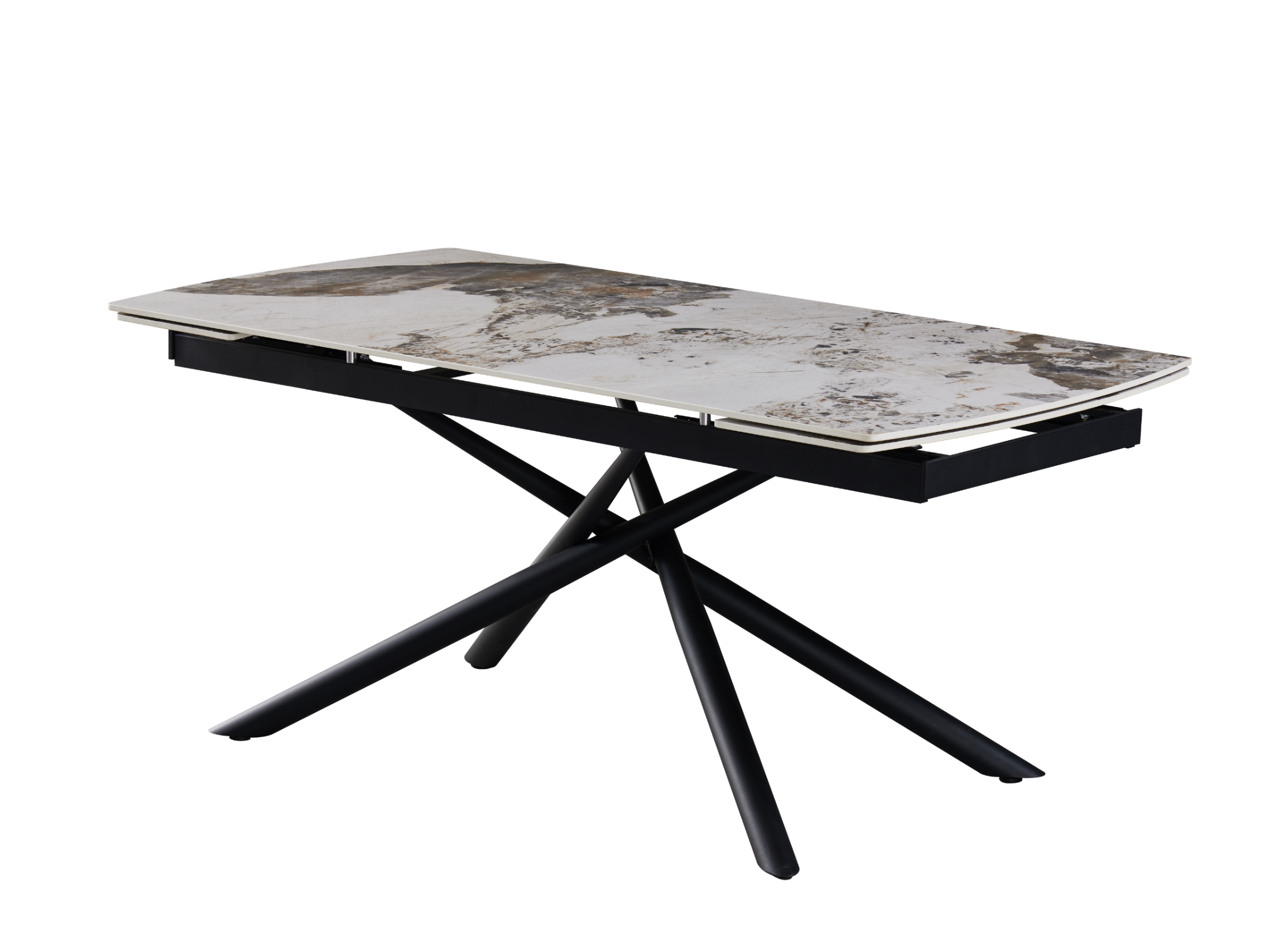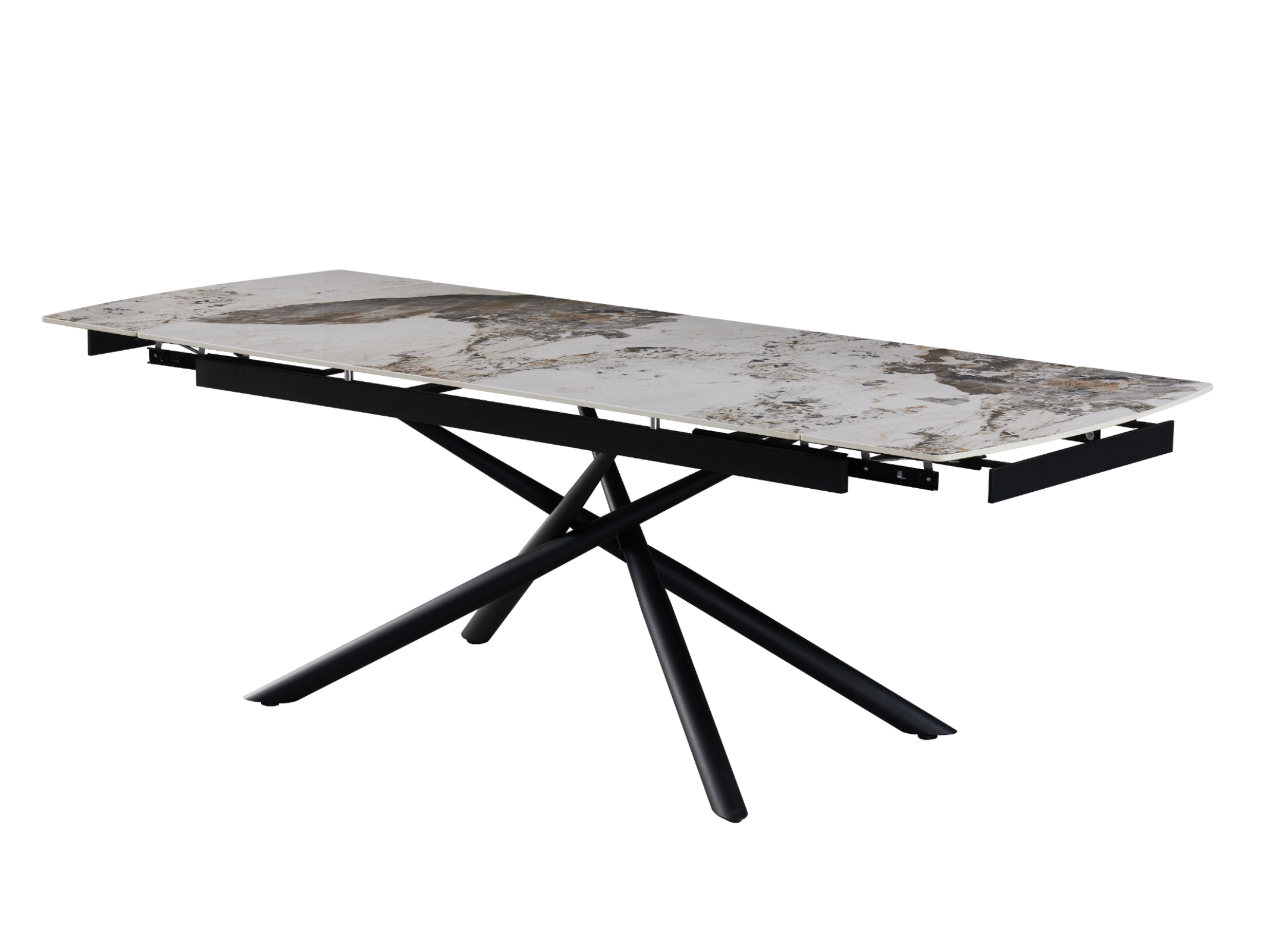 Боковий механізм розкладки дозволяє збільшити довжину стільниці з 180 см до 240 см, забезпечуючи більше місця для гостей.