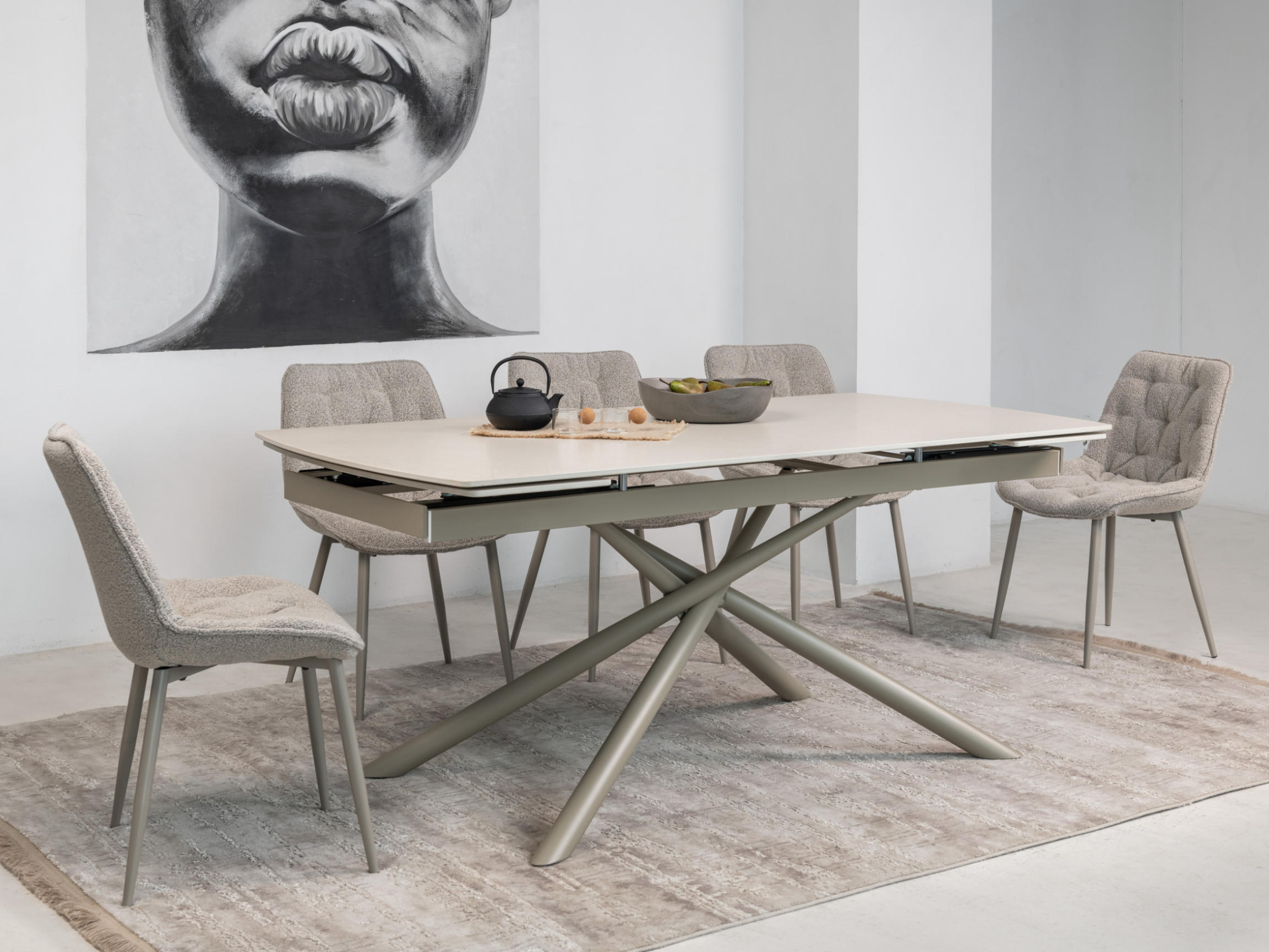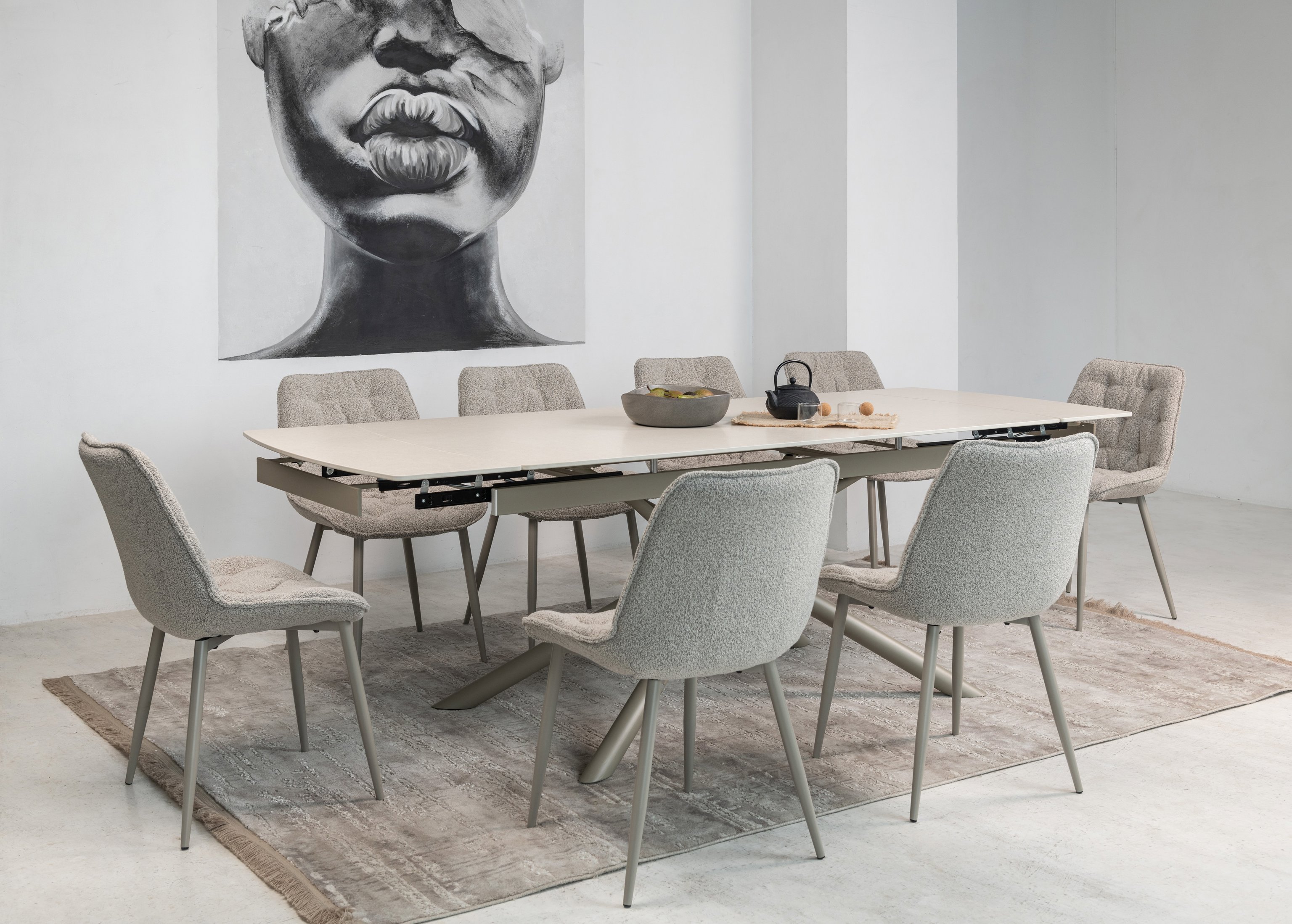 Завдяки боковому механізму розкладки довжина стола змінюється з 180 см до 240 см, що дозволяє розмістити більше гостей.