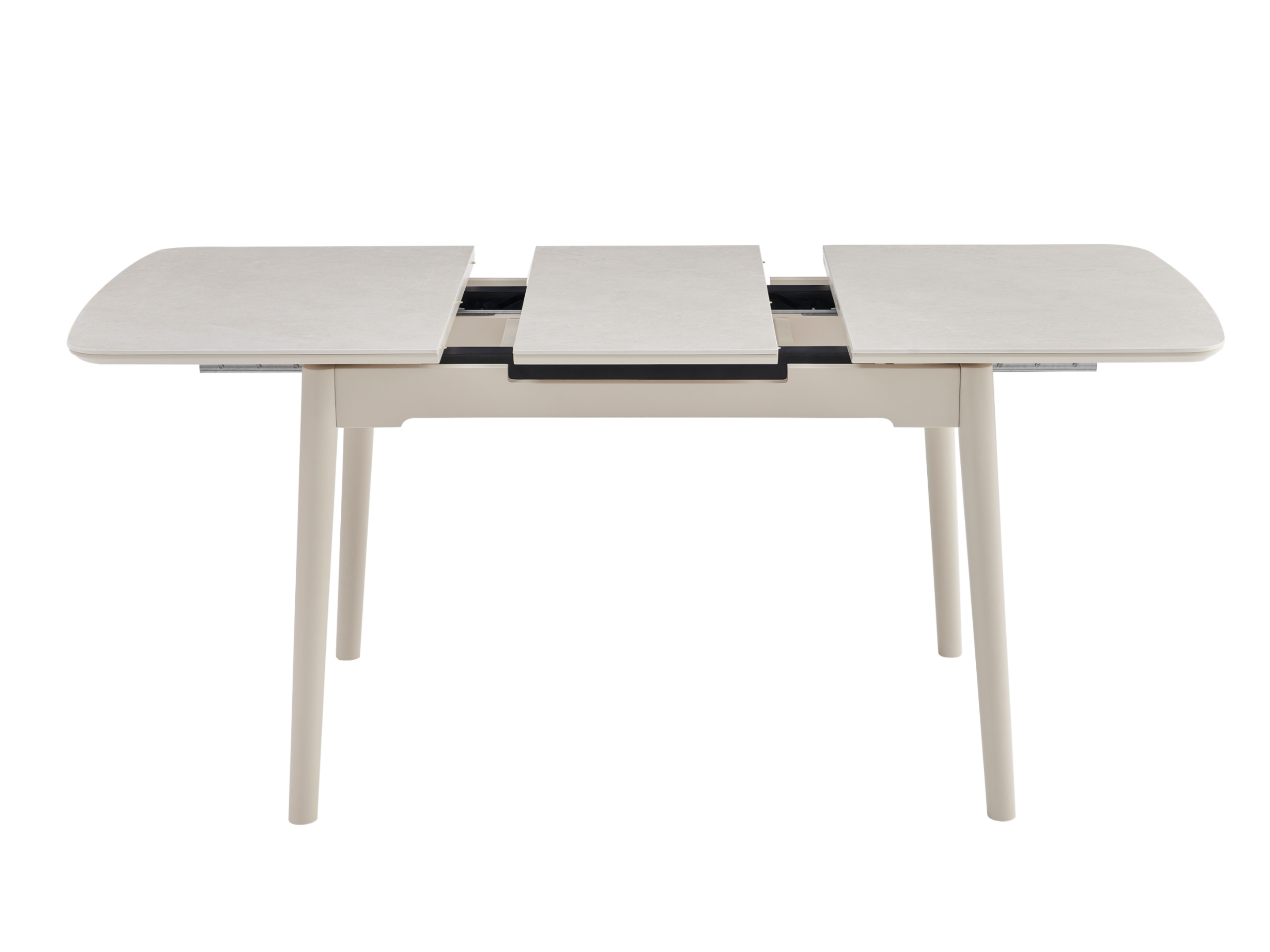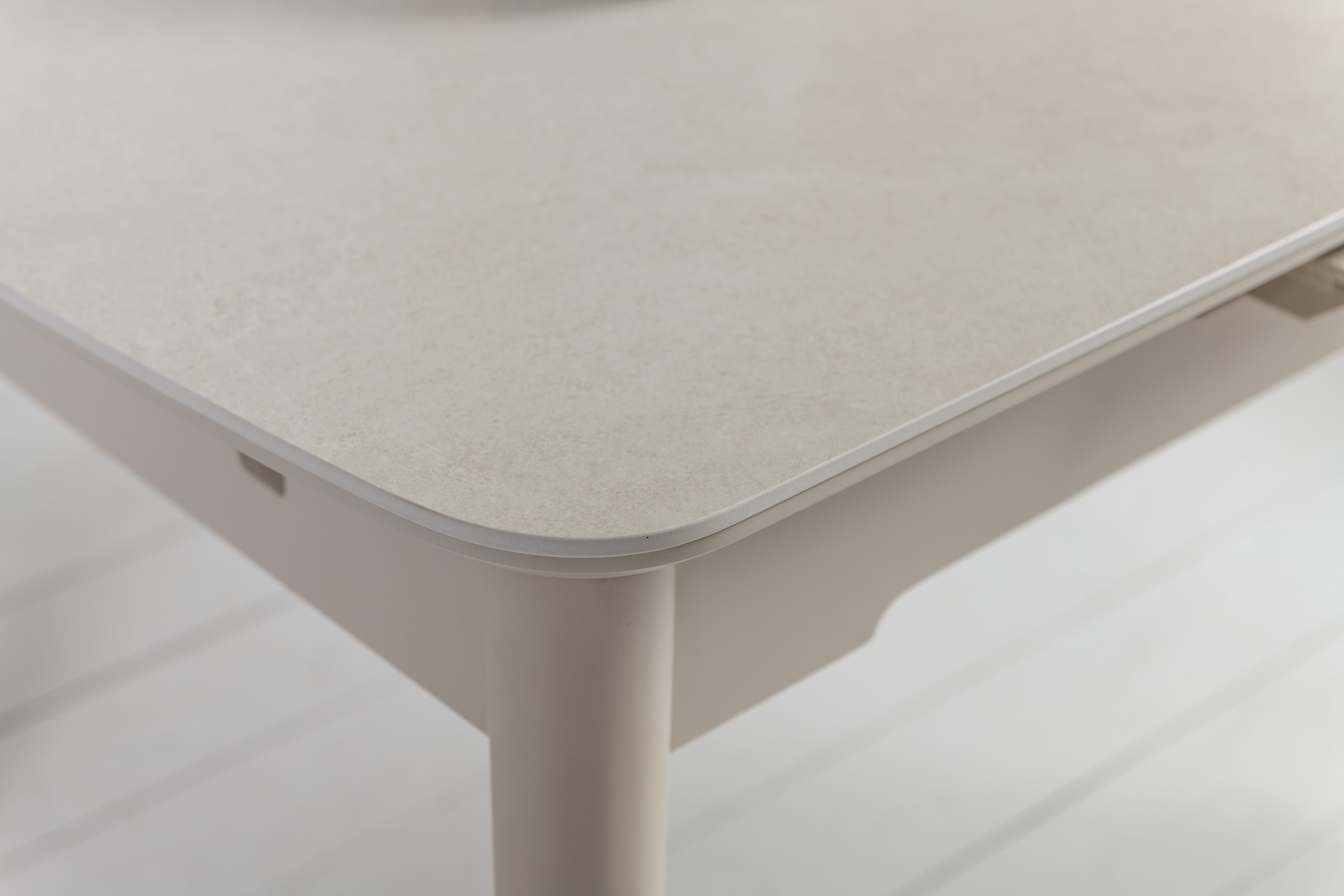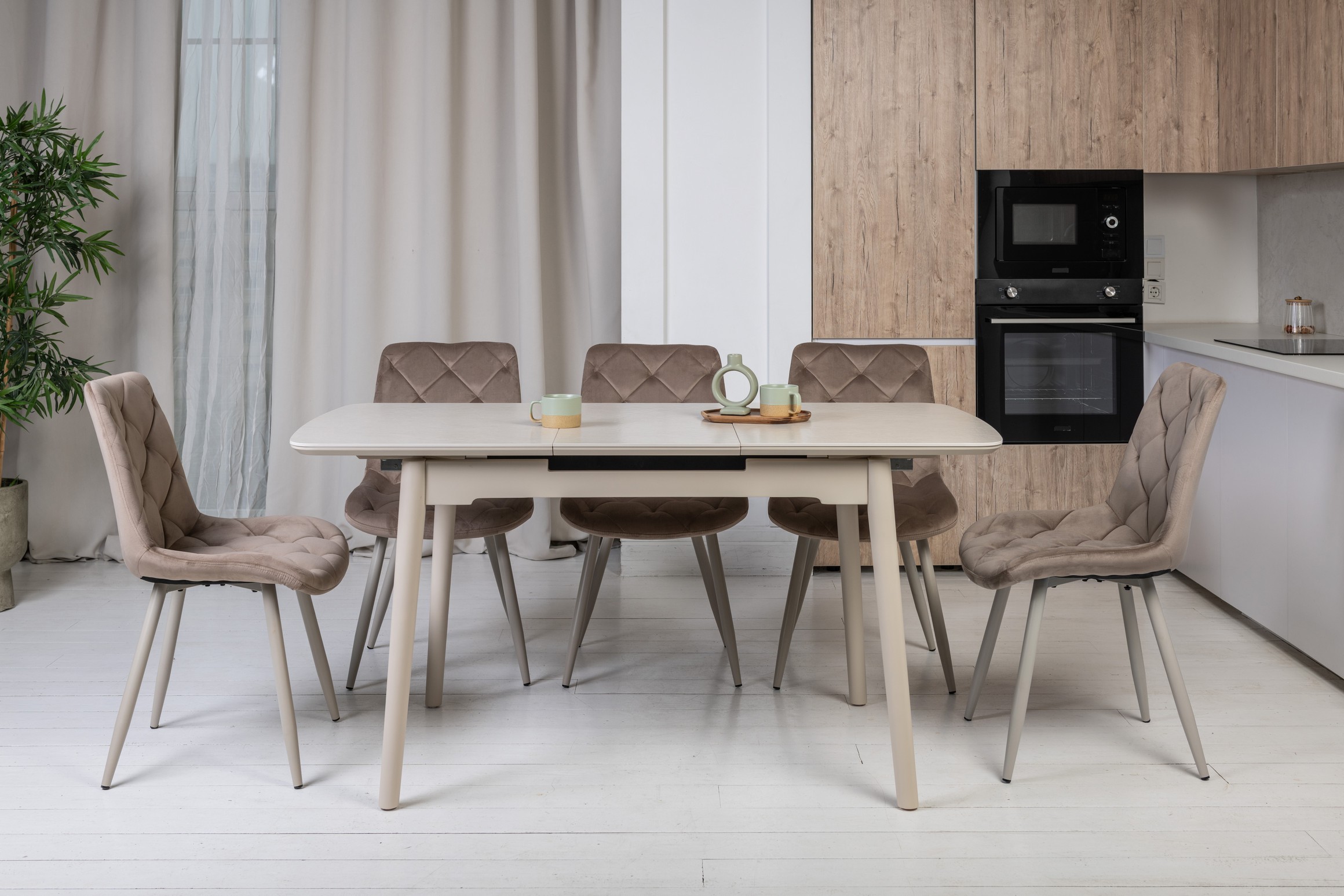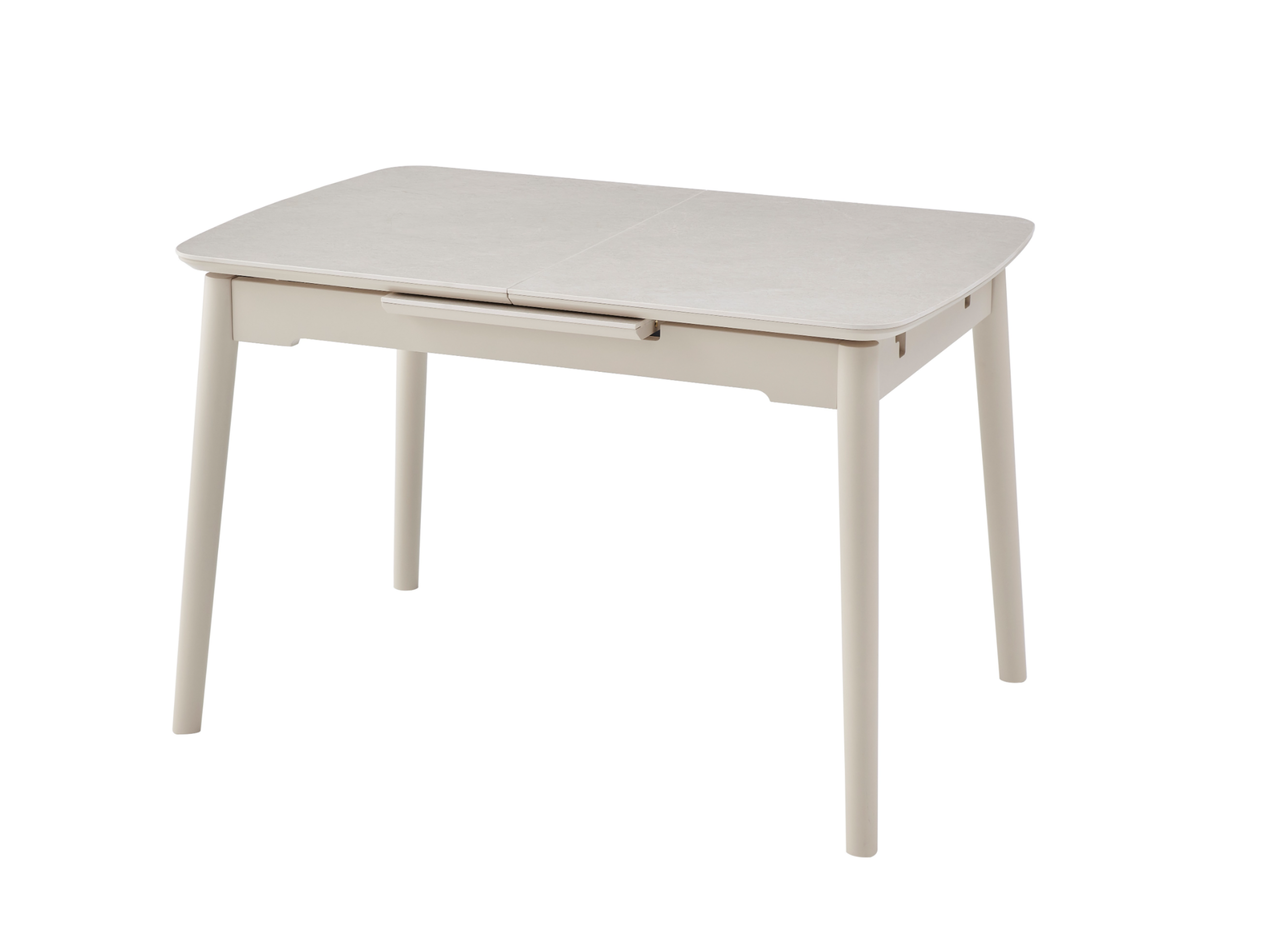 Стільниця з матової кераміки та МДФ вирізняється стійкістю до подряпин, плям і перепадів температур, зберігаючи бездоганний вигляд роками. Вбудований автоматичний механізм розкладання дозволяє легко збільшити довжину стола до 160 см — ідеальне рішення для прийому гостей або святкових подій.