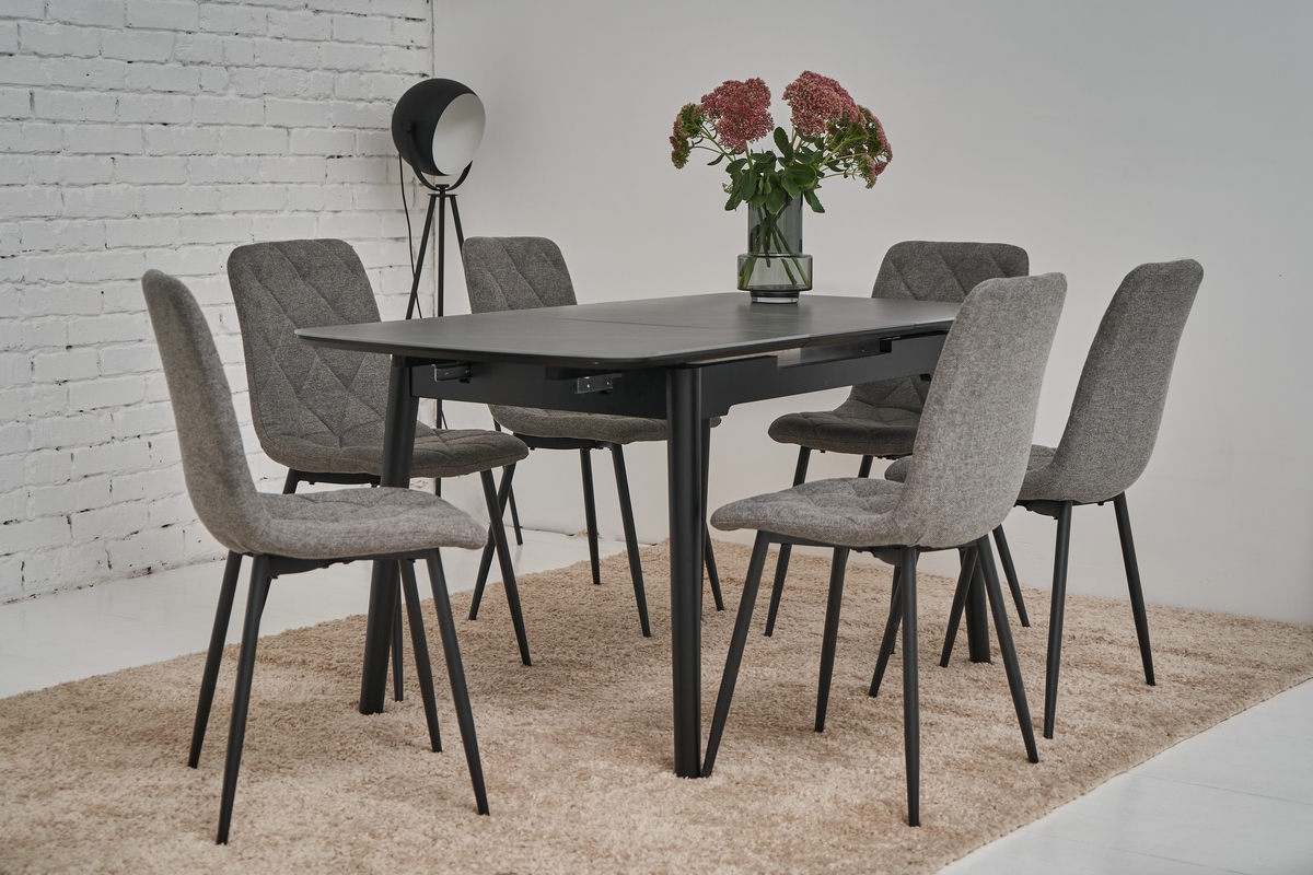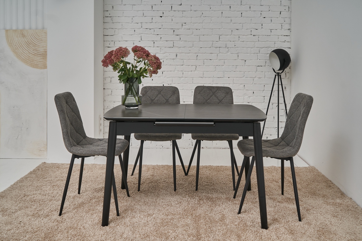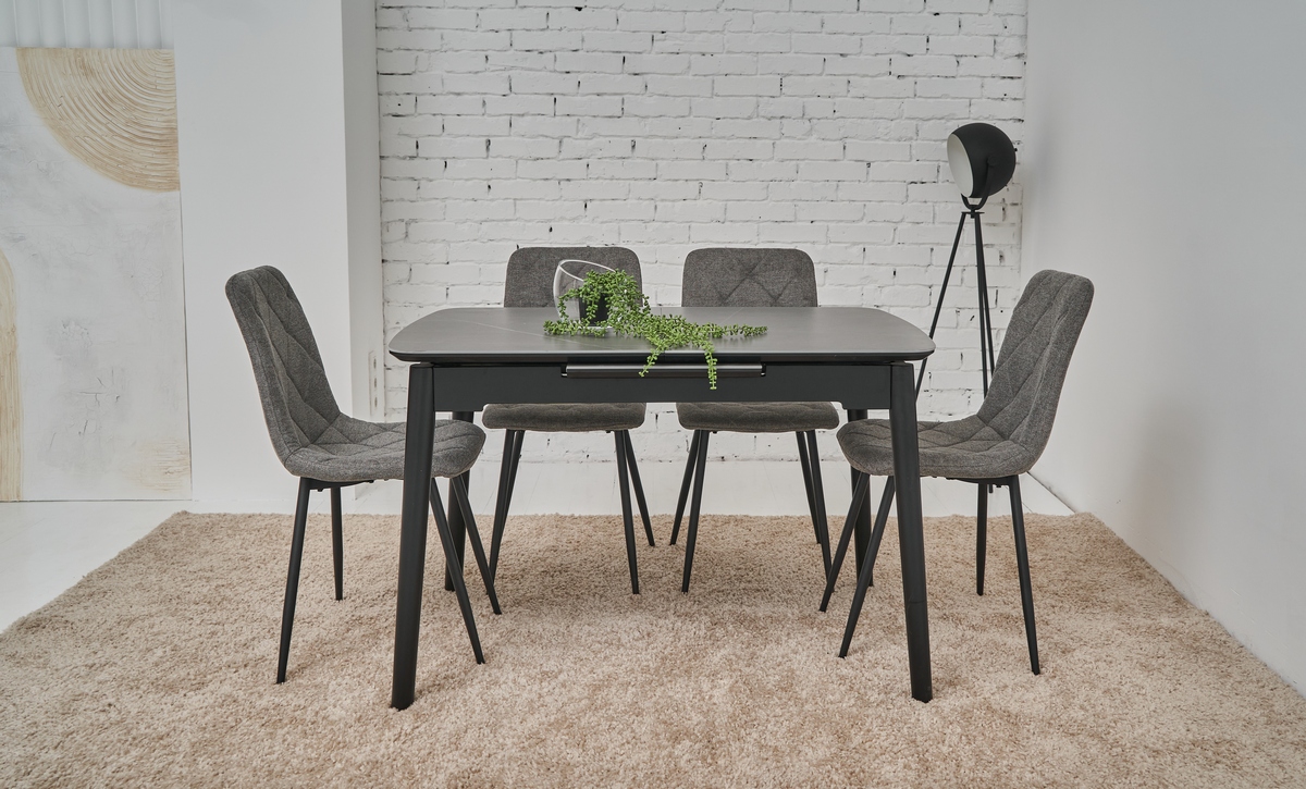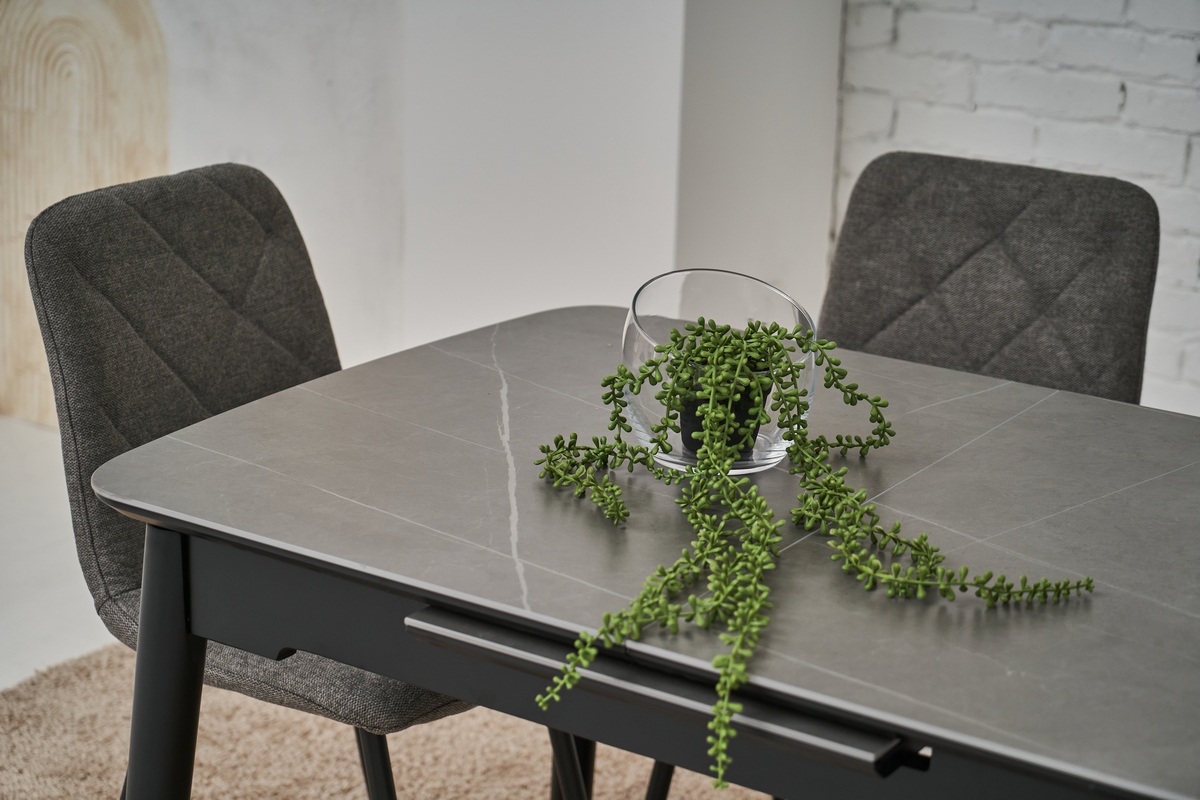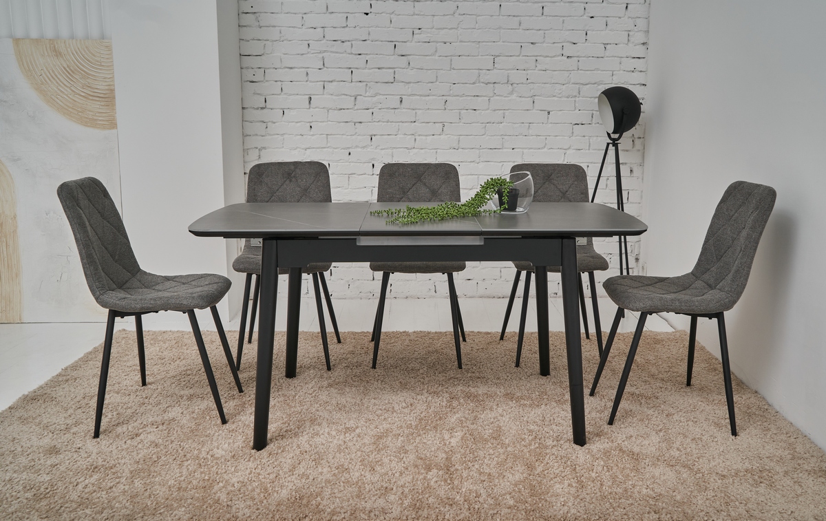 Наш прямокутний обідній стіл прикрасить вашу їдальню завдяки своєму сучасному дизайну і неймовірному кольору петра грей. Цей стіл не лише вражає естетикою, але й має високу функціональність завдяки автоматичному механізму розкладання. Легко змінюйте його розміри від 120 см до максимальних 160 см, створюючи ідеальний простір як для сімейних обідів, так і для вечірок з друзями.
