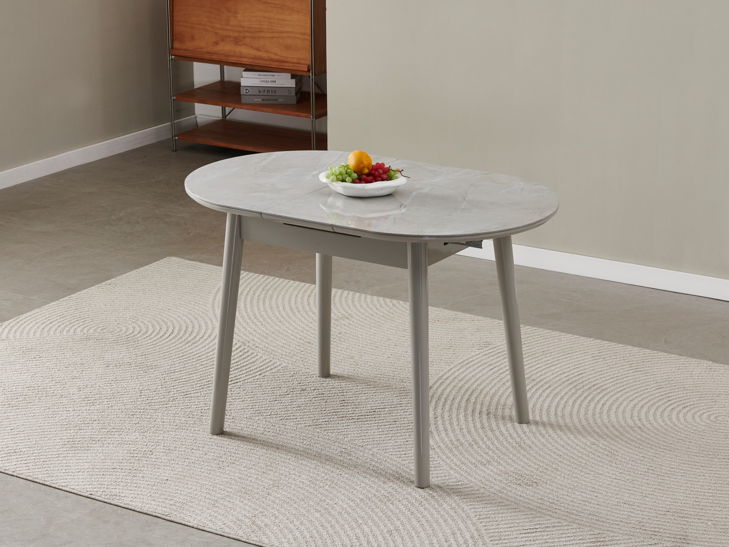 Глянцева стільниця з кераміки калакатта мармур чарує благородним малюнком каменю — вона не лише красива, а й практична: стійка до подряпин, вологи та високих температур. Компактна довжина 95 см дозволяє розташувати стіл навіть у невеликій кімнаті, а автоматичний розкладний механізм легко збільшує поверхню до 120 см, коли потрібно прийняти гостей або організувати сімейну вечерю.