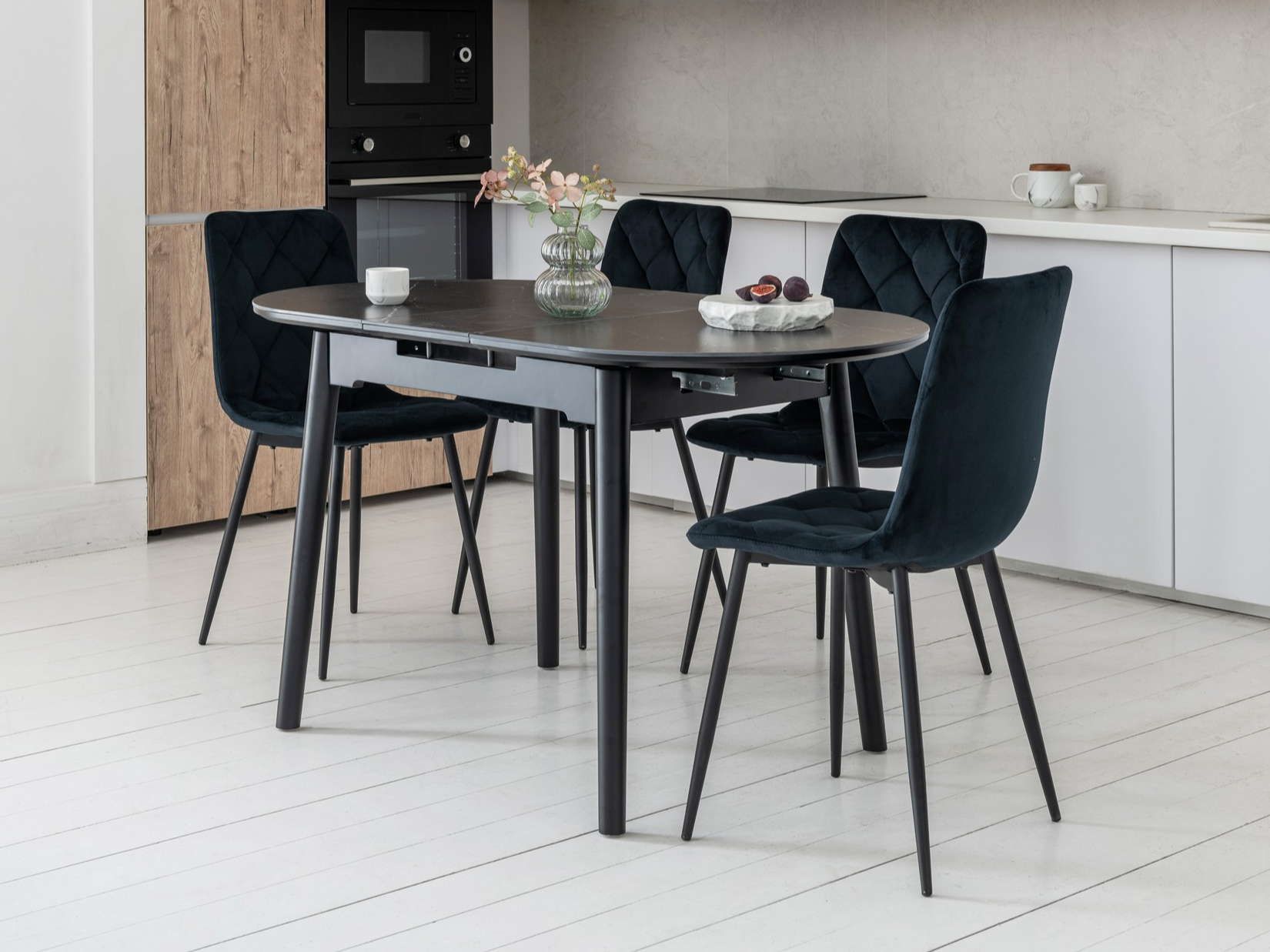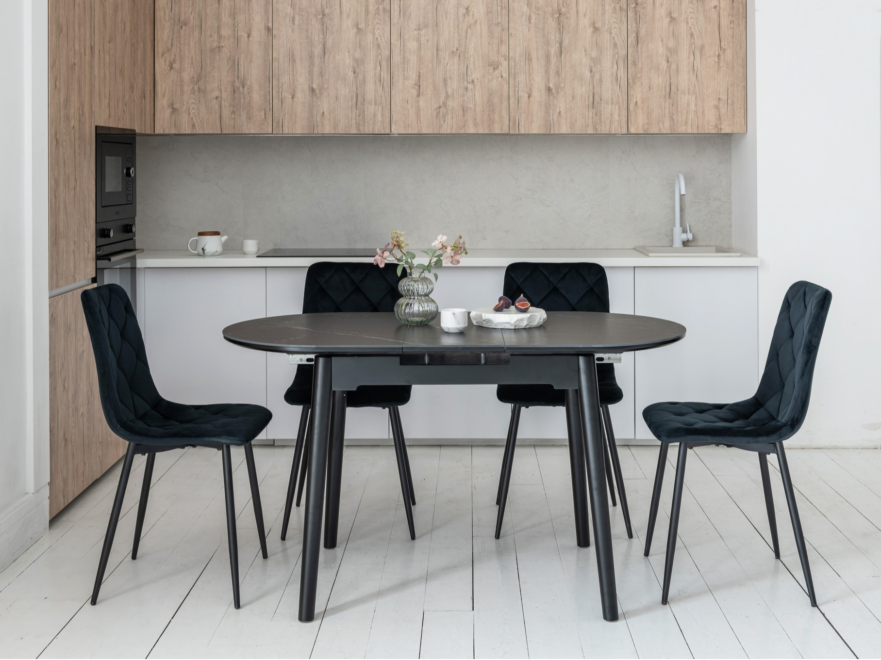 Обідній стіл у кольорі Чорний онікс привнесе стиль та вишуканість у ваш інтер'єр. Його овальна форма надає столу вишуканий вигляд, а чорний онікс додає елегантності та розкоші.