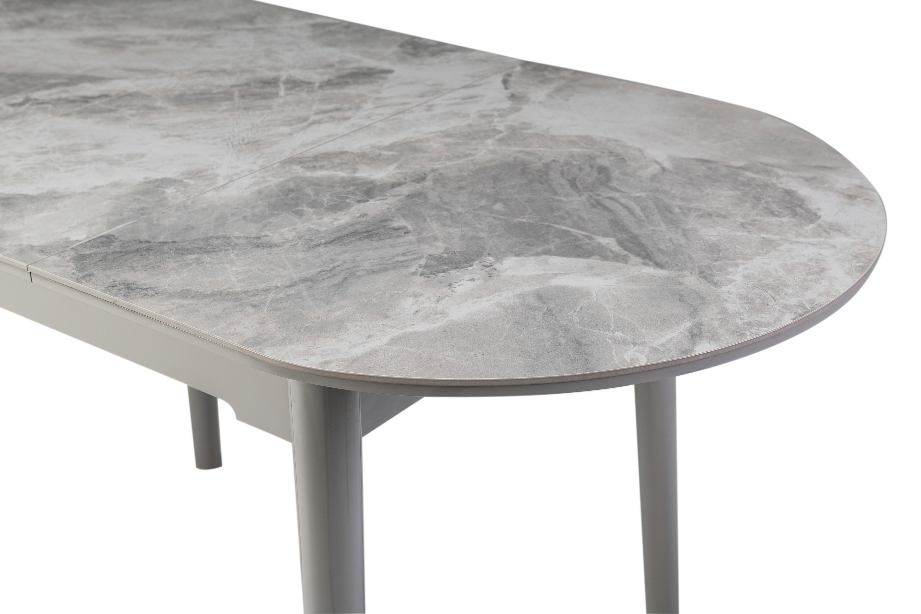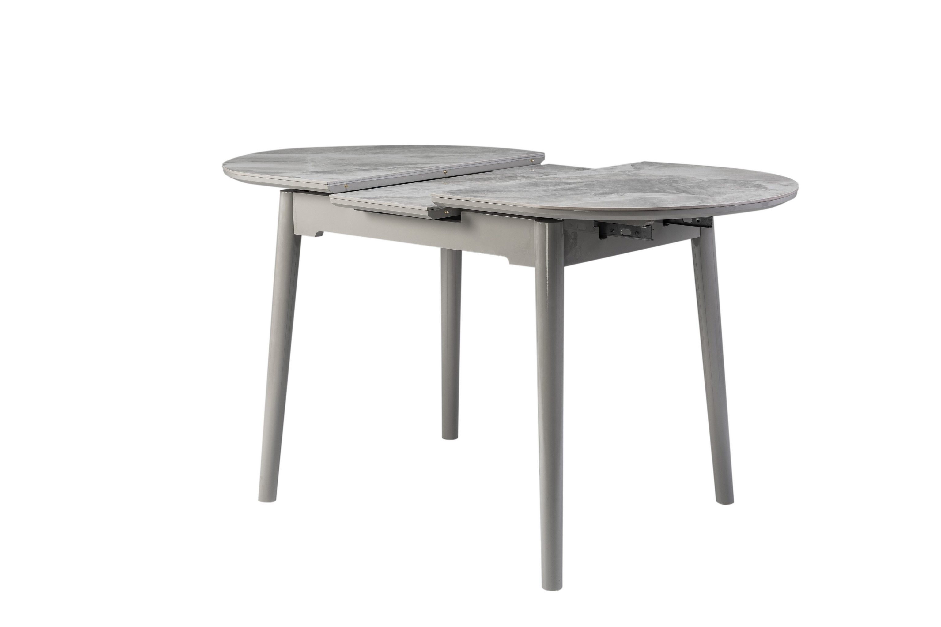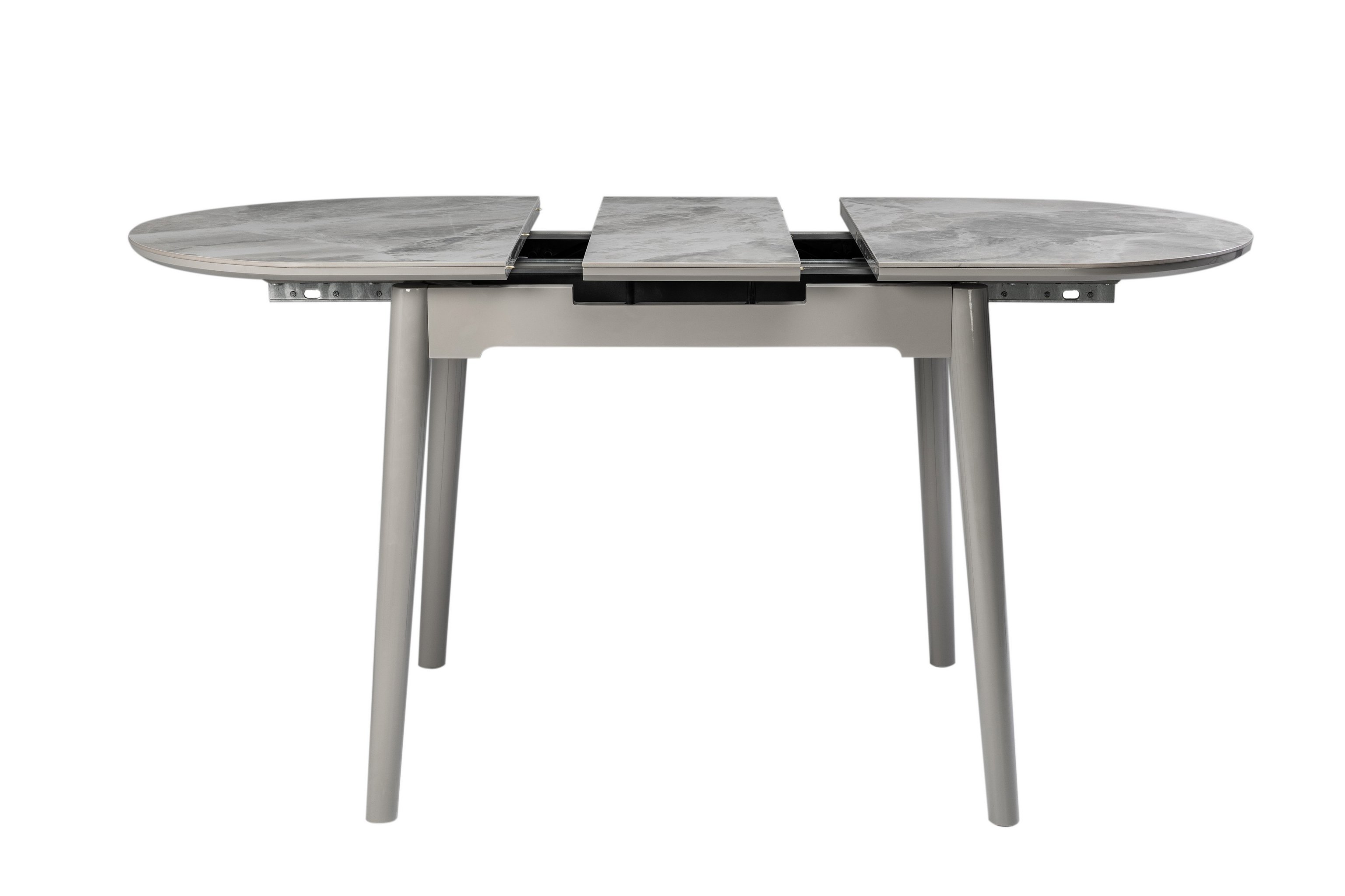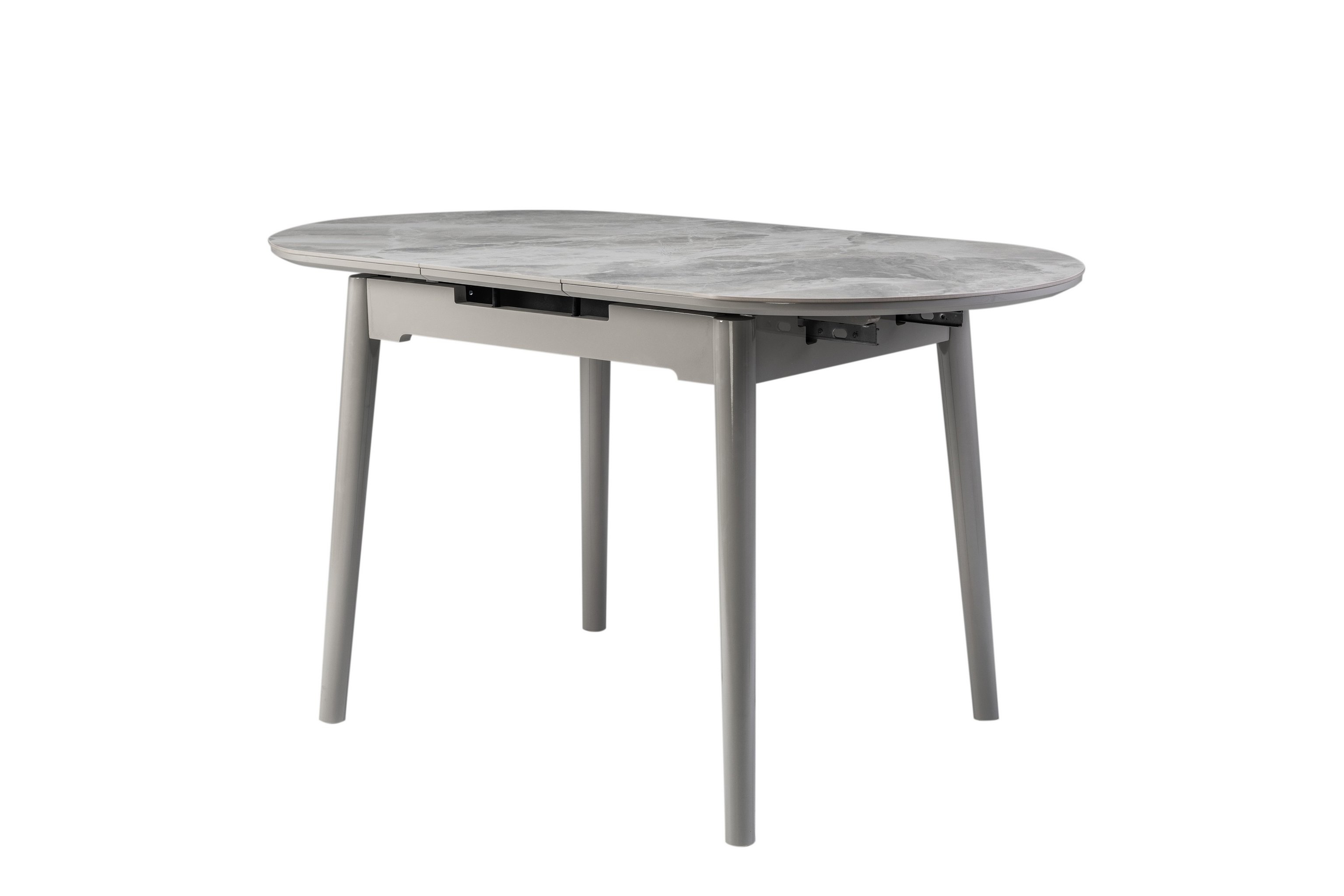 Завдяки своїй компактній овальній формі і розмірам - 110 см у довжину і 75 см у ширину, цей стіл ідеально підходить для маленьких їдалень. Розкладна конструкція з максимальною довжиною стільниці 140 см робить його ще більш практичним для різних подій - від сімейних обідів до вечірок з друзями.