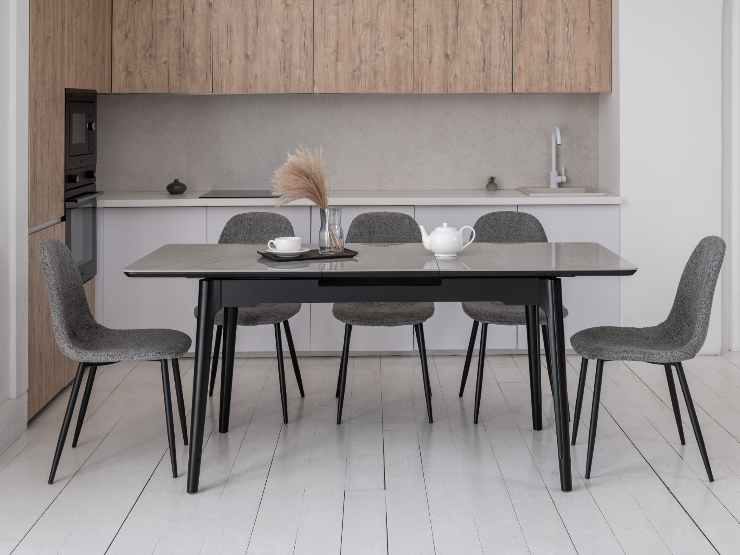 Цей стіл - не лише естетичне прикраса, він також має відмінні функціональні характеристики завдяки автоматичному механізму розкладання. З легкістю змінюйте його розміри від 140 см до максимальних 180 см, створюючи ідеальний простір як для сімейних обідів, так і для вечірок з друзями.