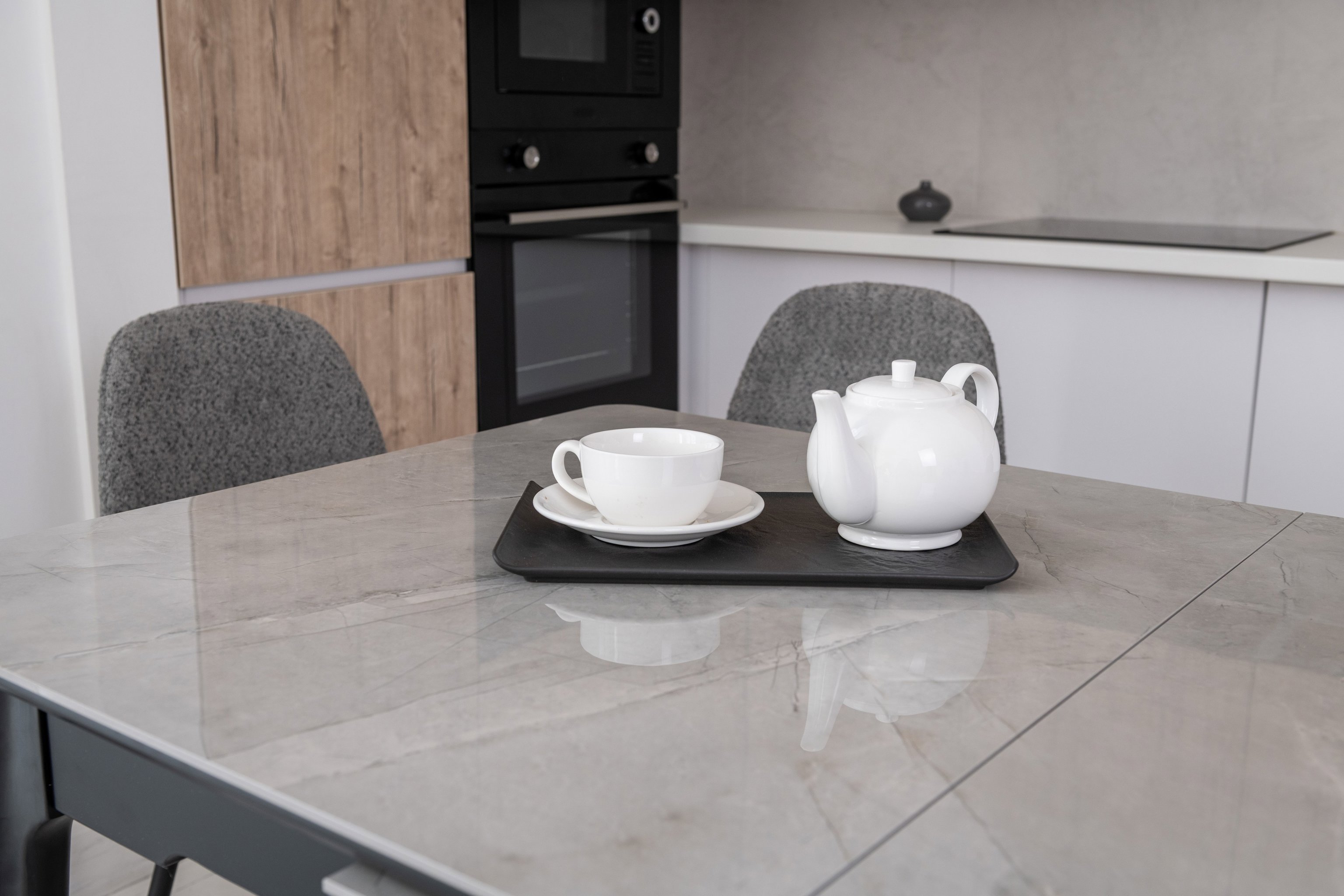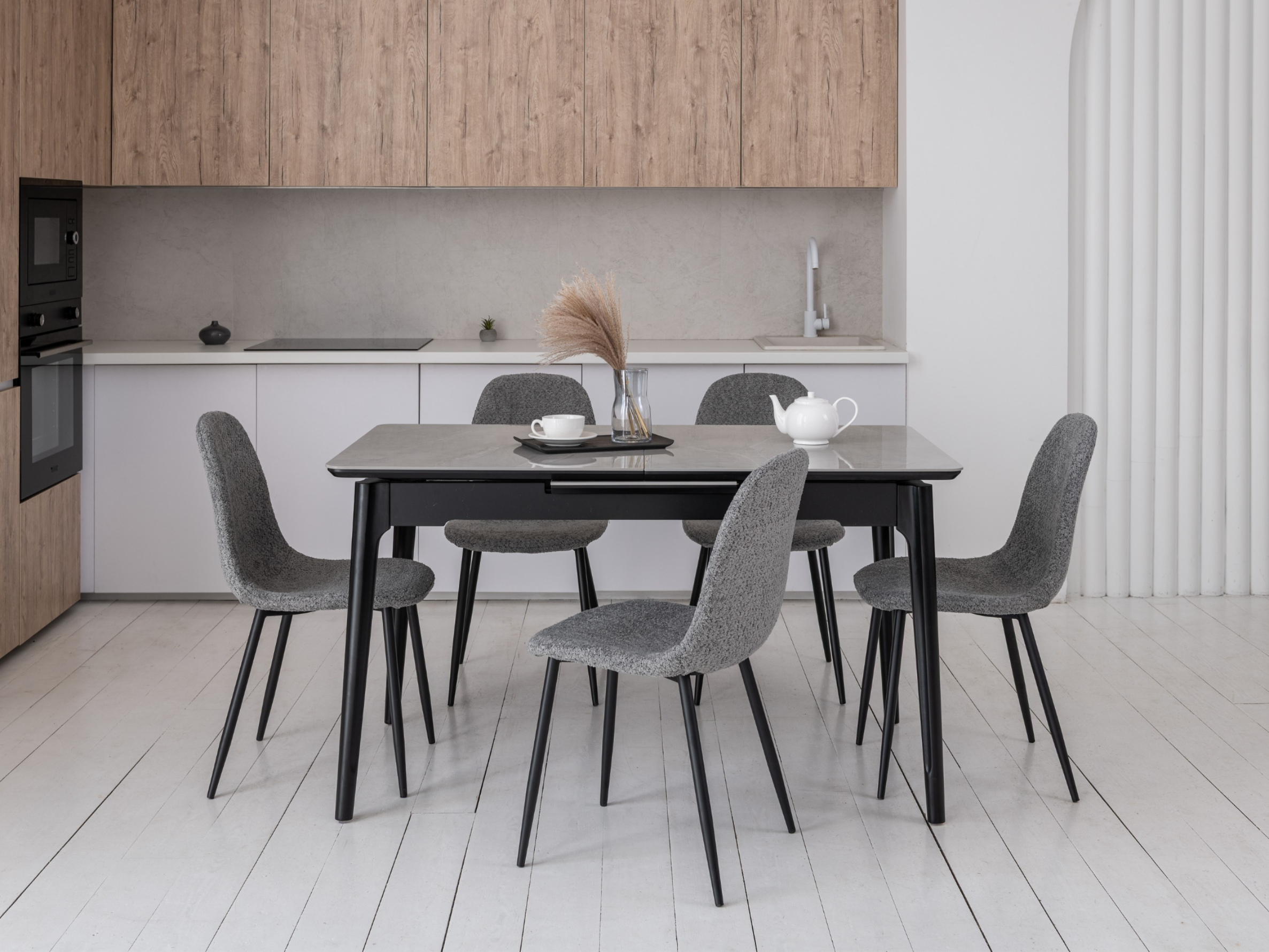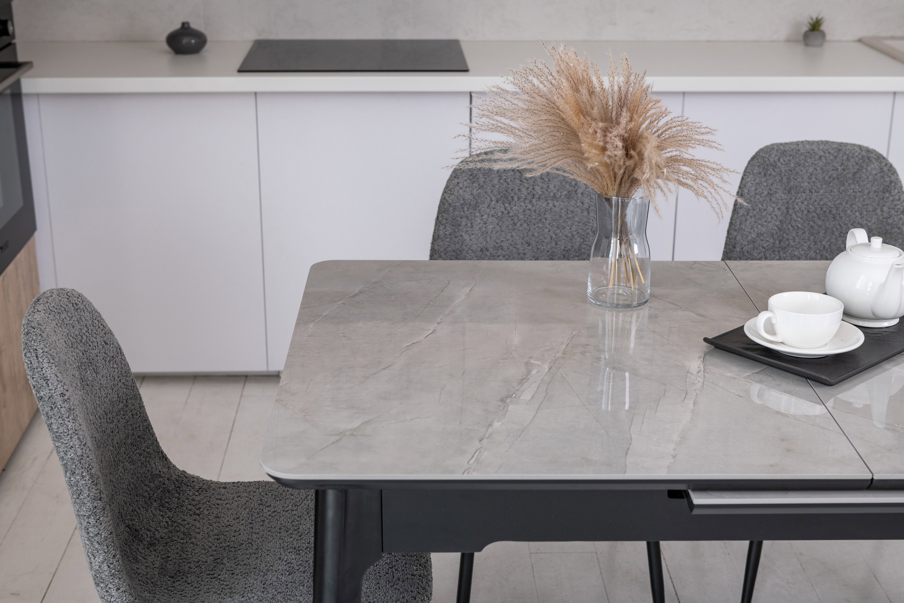 Столешняя з глянцевої кераміки та МДФ гарантує не лише стильний зовнішній вигляд, а й міцність. Високоякісні матеріали забезпечують довговічність та стійкість до пошкоджень, дозволяючи насолоджуватися красою столу протягом багатьох років.