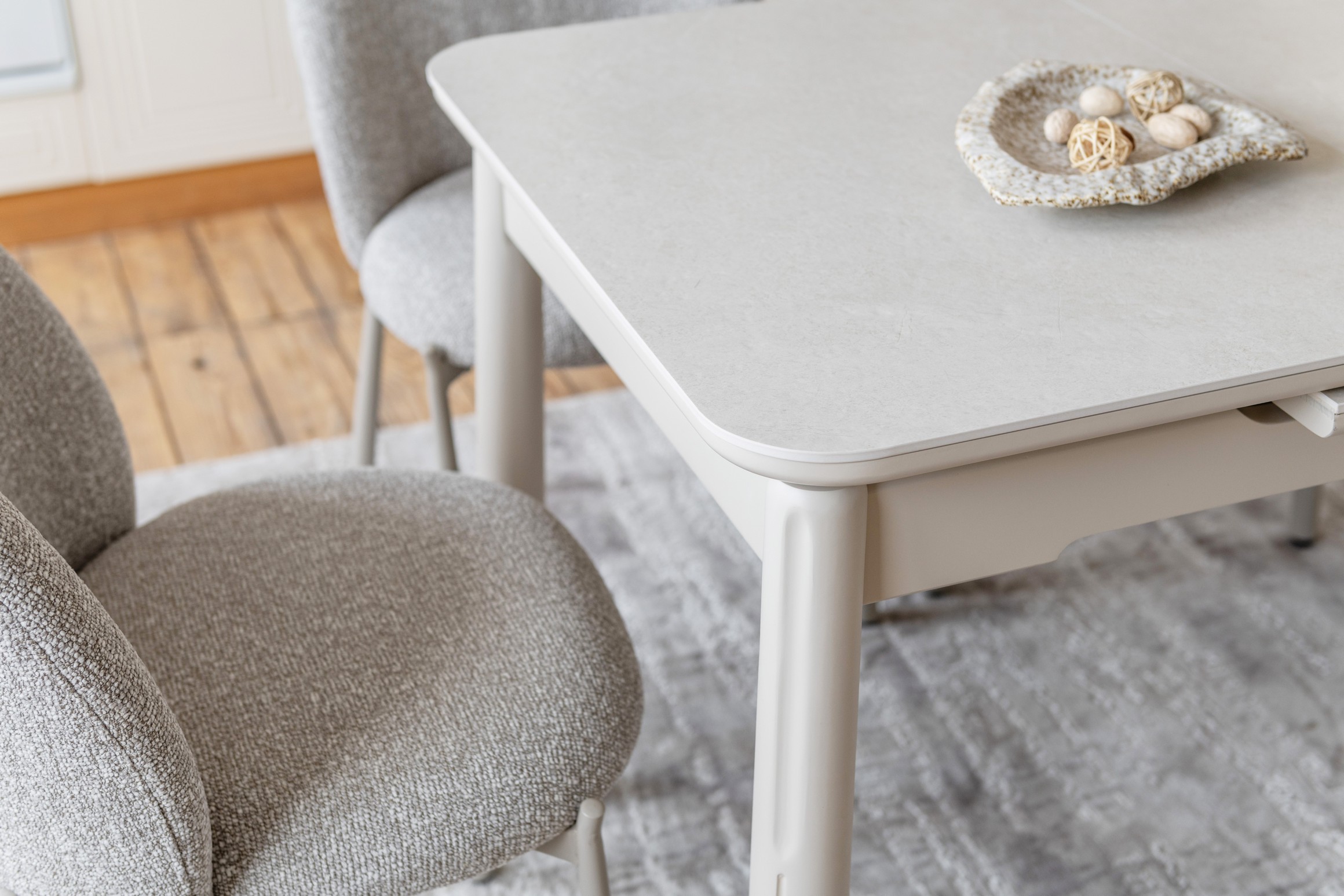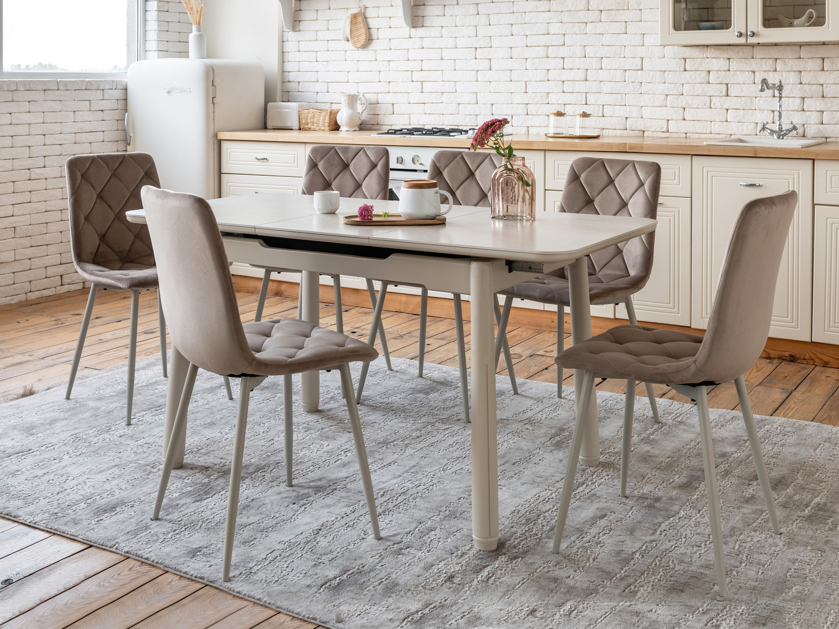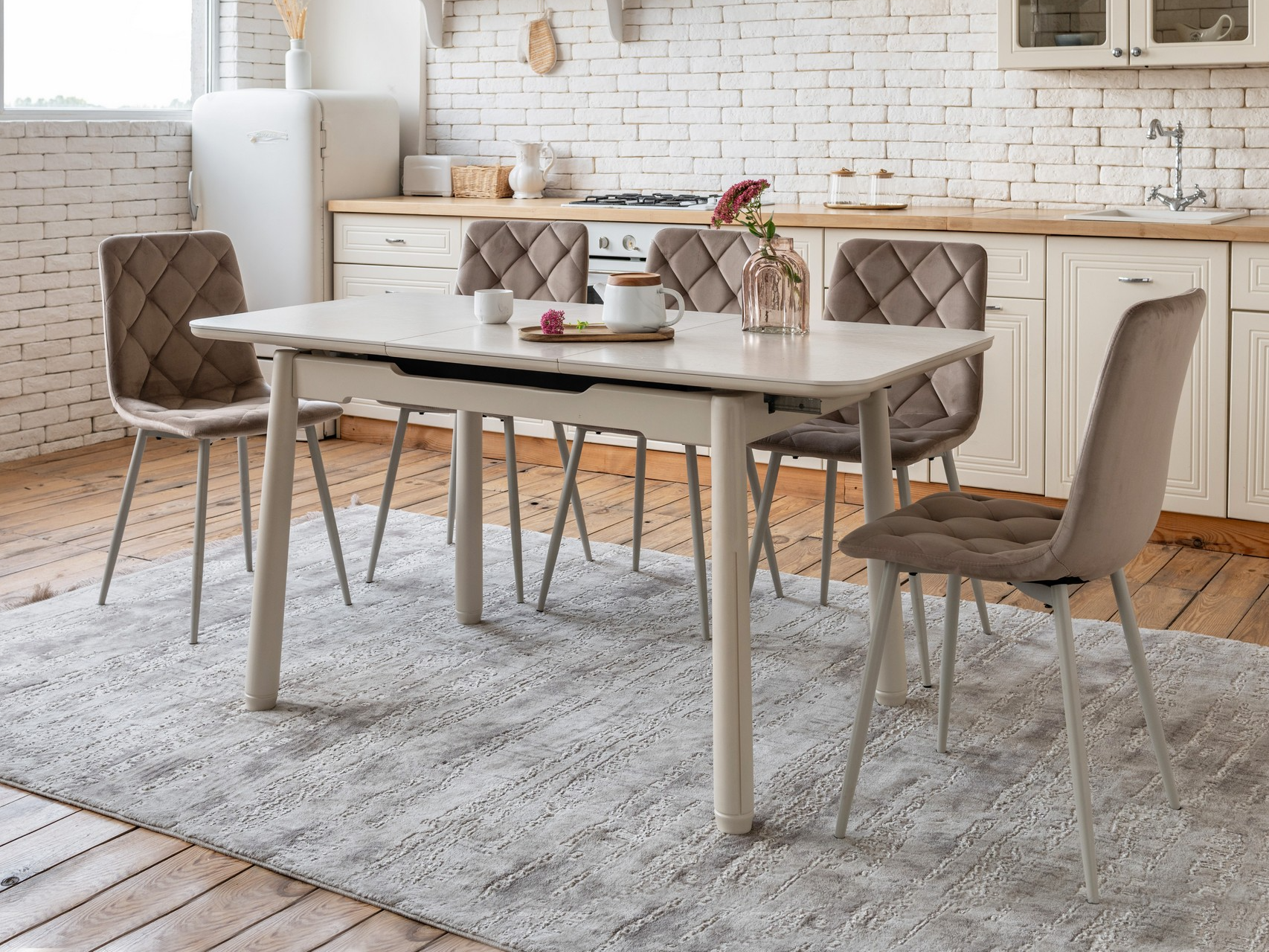 TM-92 крема саббія + капучино — це стіл, який однаково добре виглядає і в сучасній кухні, і в затишній їдальні. Він поєднує естетику, комфорт і функціональність, роблячи щоденні моменти за столом особливими.