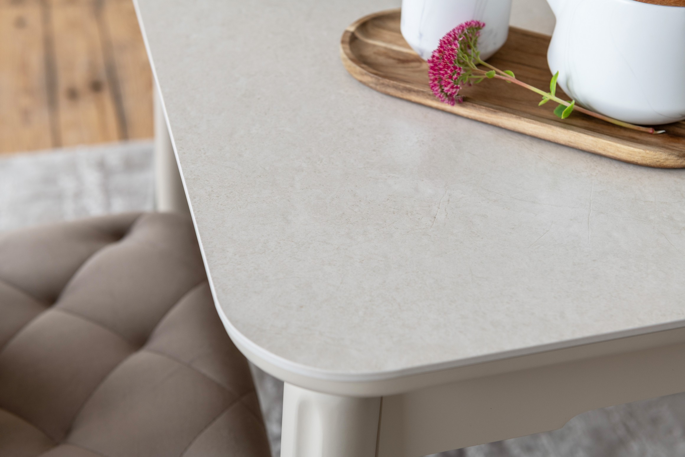 Керамічний стіл TM-92 крема саббія + капучино — це втілення сучасної елегантності й природної теплоти. М’який відтінок крема саббія нагадує колір піску на сонці, створюючи спокійну й гармонійну атмосферу в інтер’єрі. Матова стільниця з кераміки та МДФ не лише приваблює виглядом, а й вирізняється високою практичністю — вона стійка до подряпин, плям і перепадів температур.