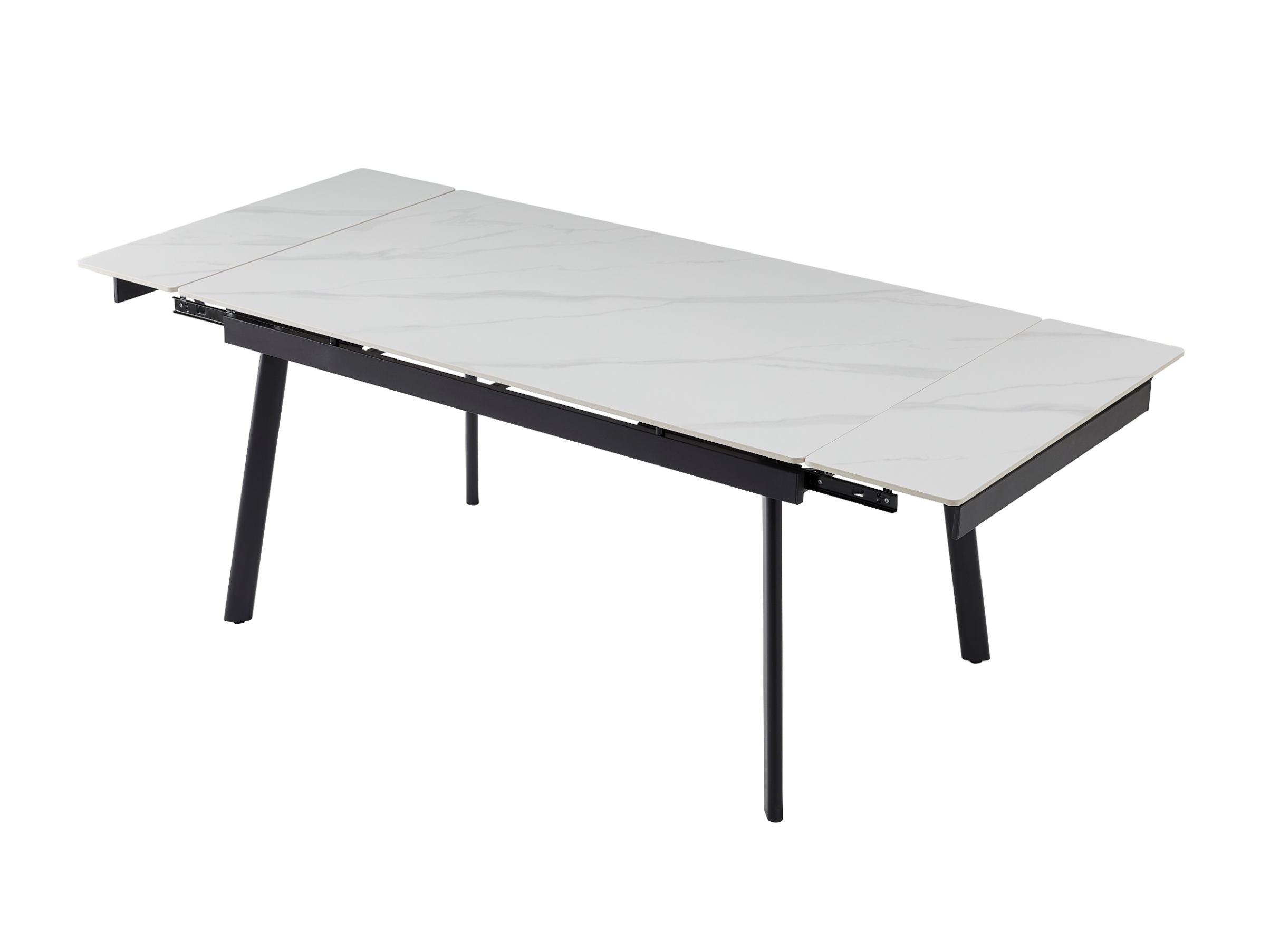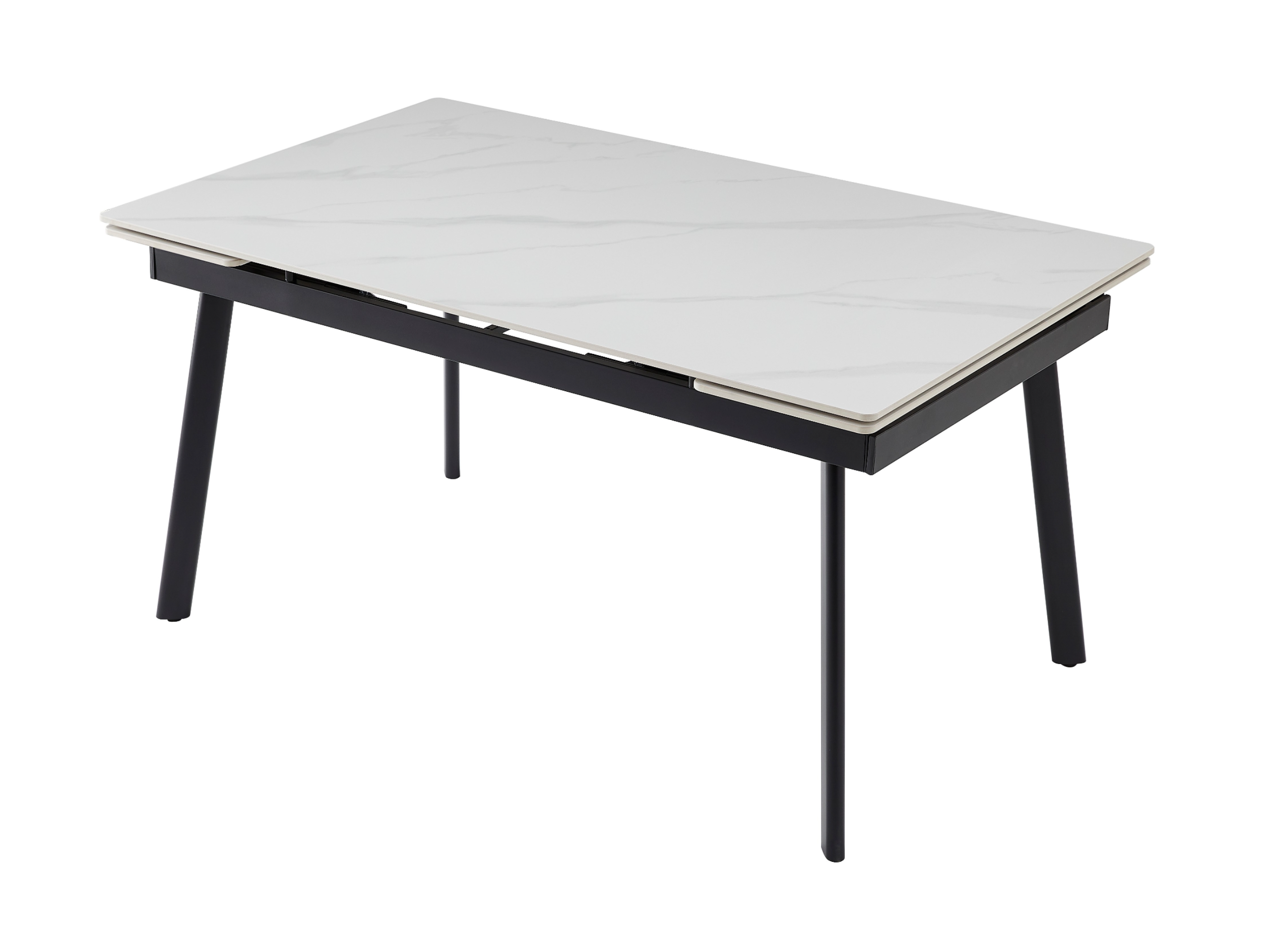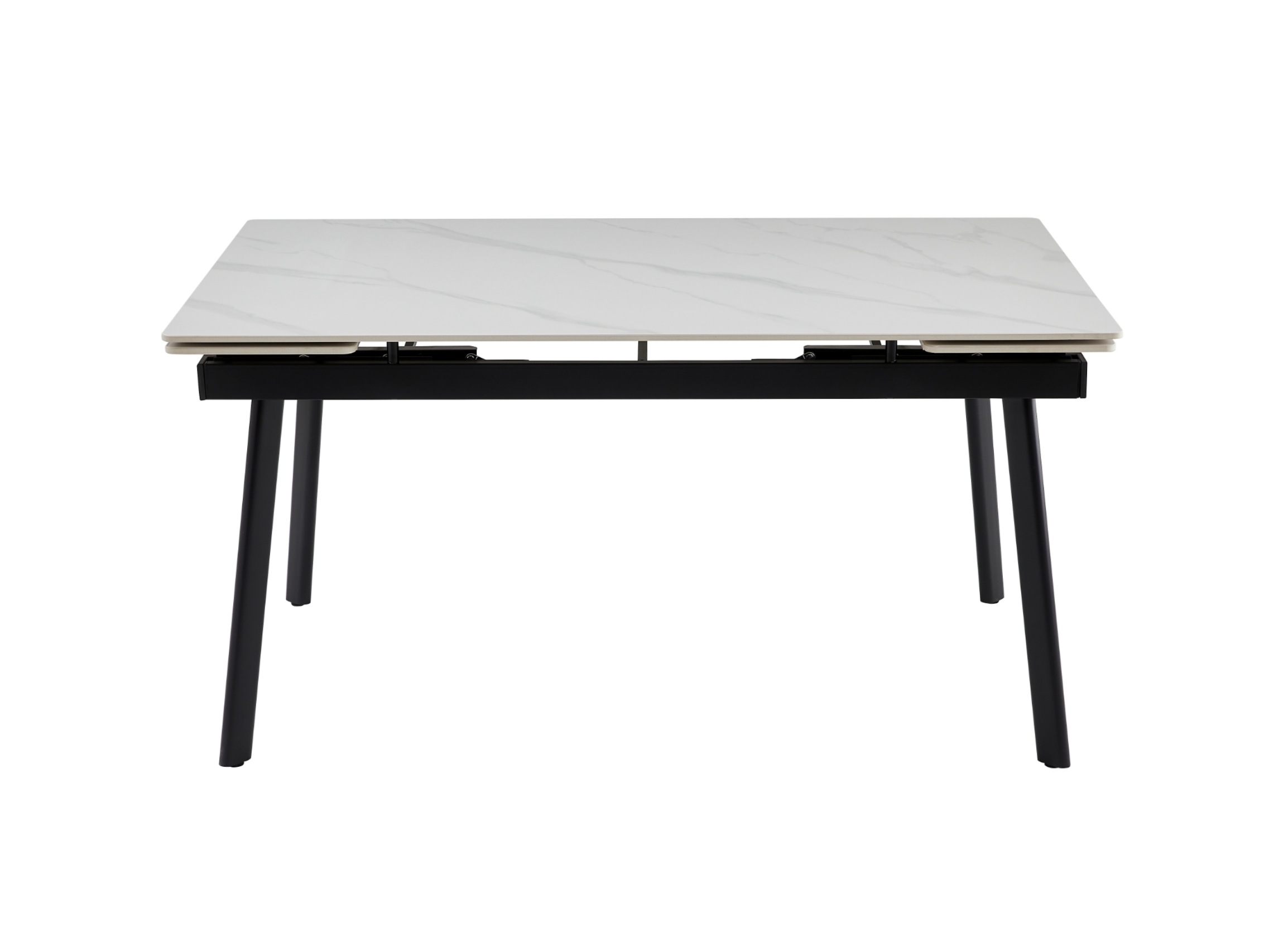 Керамічний стіл TM-98 у відтінку білий мармур + чорний — це поєднання вишуканої естетики та практичності, яке стане ідеальним вибором для сучасної їдальні чи вітальні. Прямокутна форма та глянцева керамічна стільниця з ефектом білого мармуру додають простору світла й елегантності, а чорна металева основа створює стильний контраст і підкреслює сучасний характер моделі.