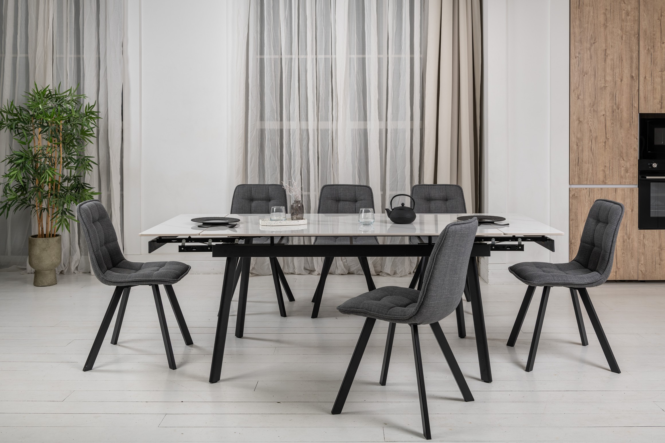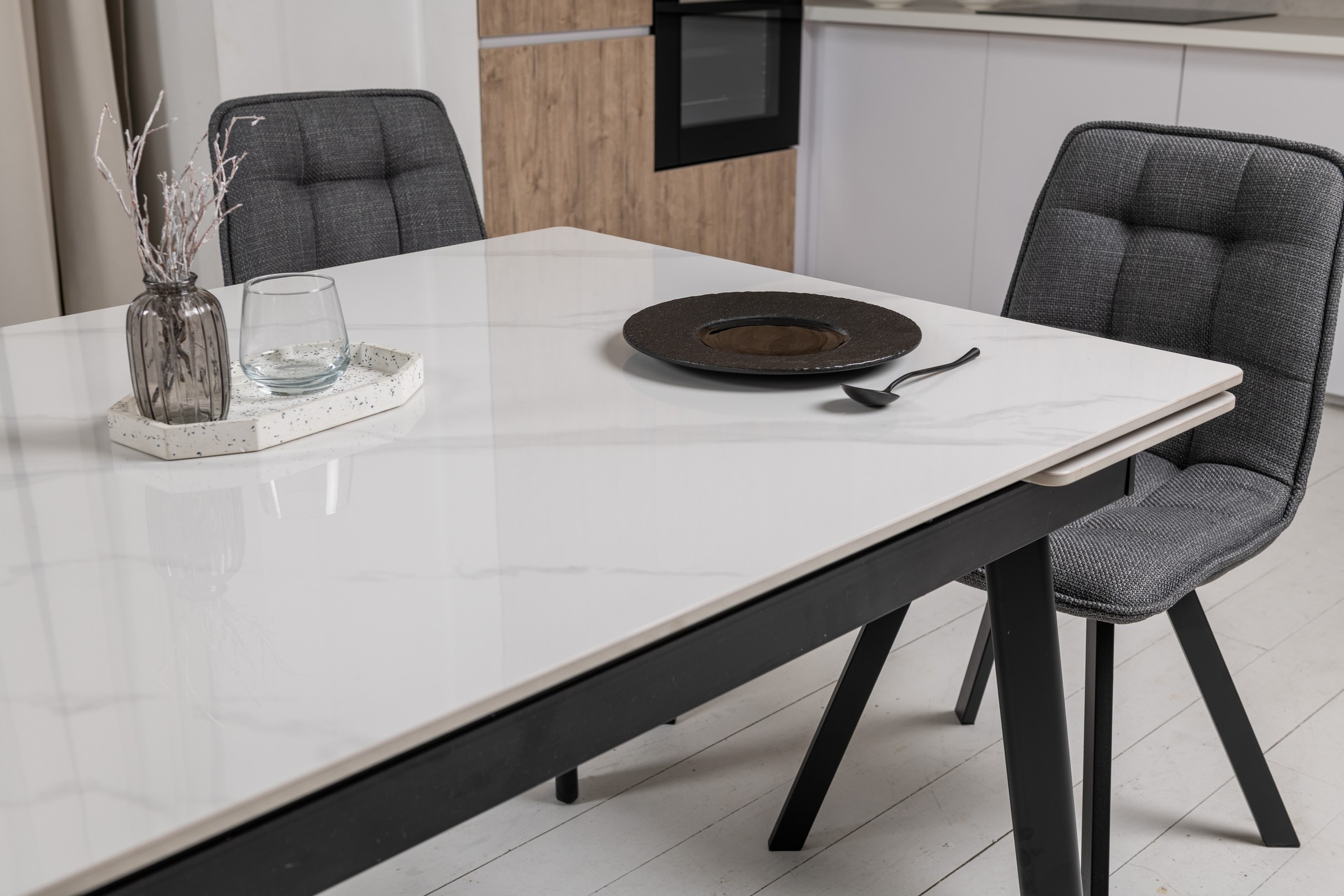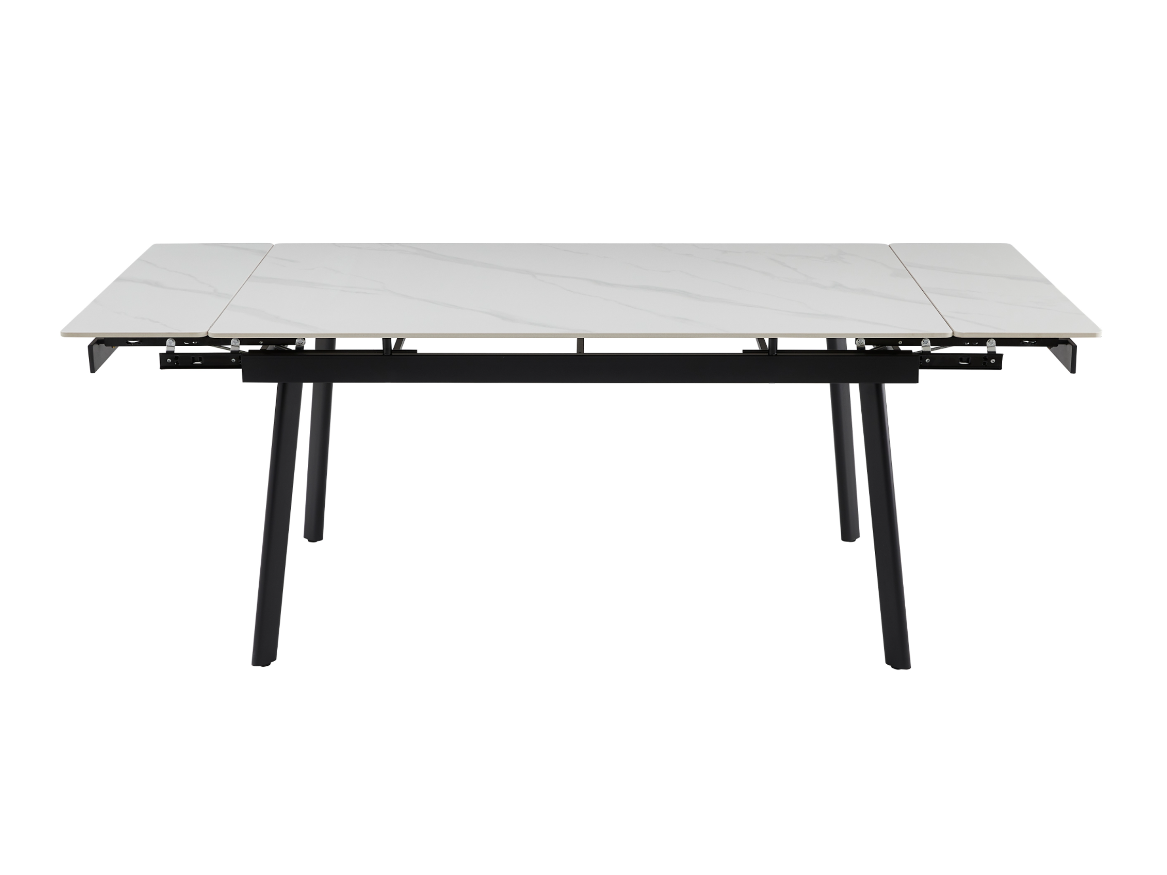 Керамічний стіл TM-98 у відтінку білий мармур + чорний — це поєднання вишуканої естетики та практичності, яке стане ідеальним вибором для сучасної їдальні чи вітальні. Прямокутна форма та глянцева керамічна стільниця з ефектом білого мармуру додають простору світла й елегантності, а чорна металева основа створює стильний контраст і підкреслює сучасний характер моделі.