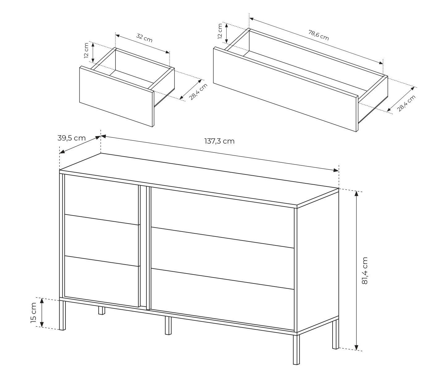 Комод 2 стандарт, Готові кольорові рішення Біле дерево