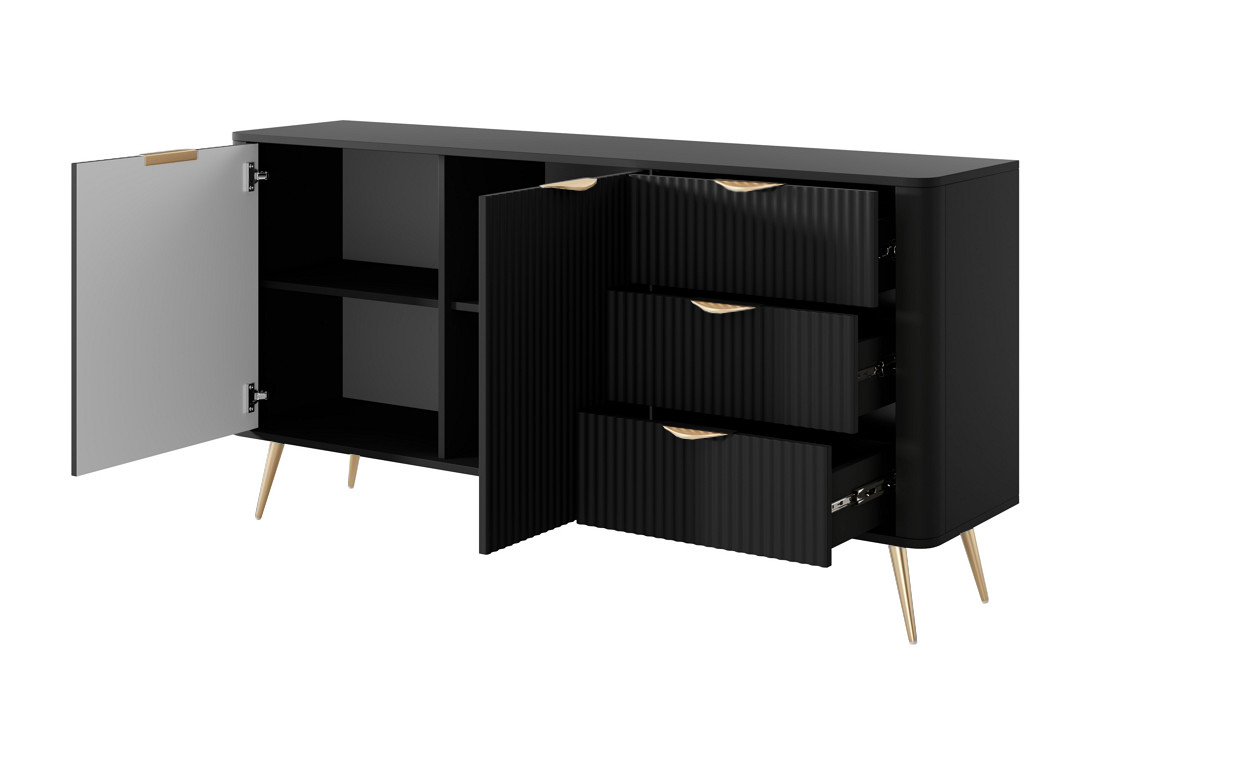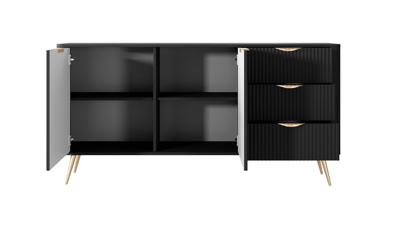 Зображення з  Комод Perfect Home Ланте / Lante 2-дверний з 3 шухлядами і золотими ніжками 2D3S/163 Чорний