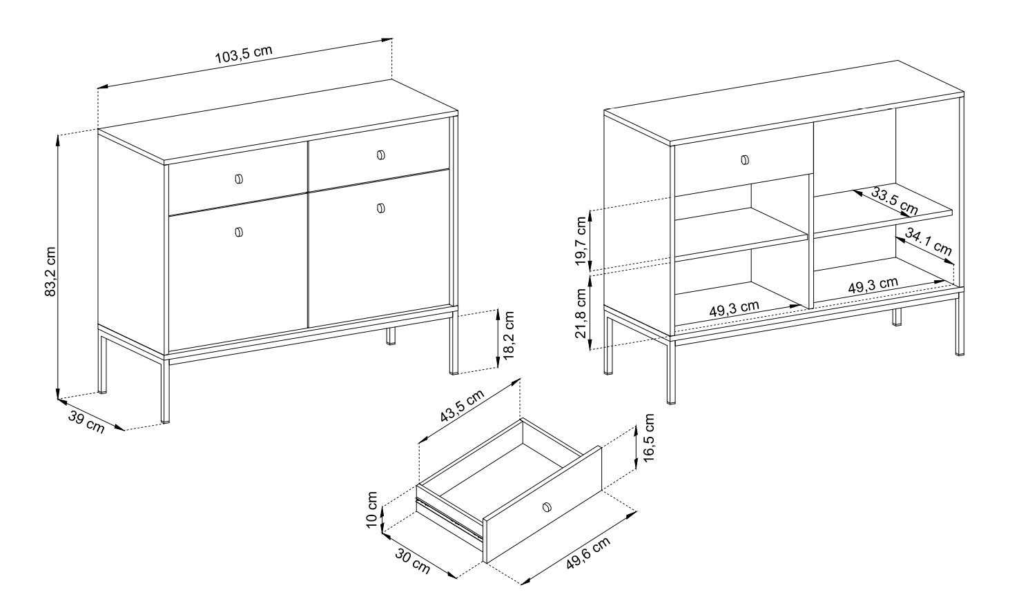 Зображення з  Комод Perfect Home Моно / Mono 3-дверний з 3 шухлядами і чорними ніжками MKSZ154 Беж пісочний