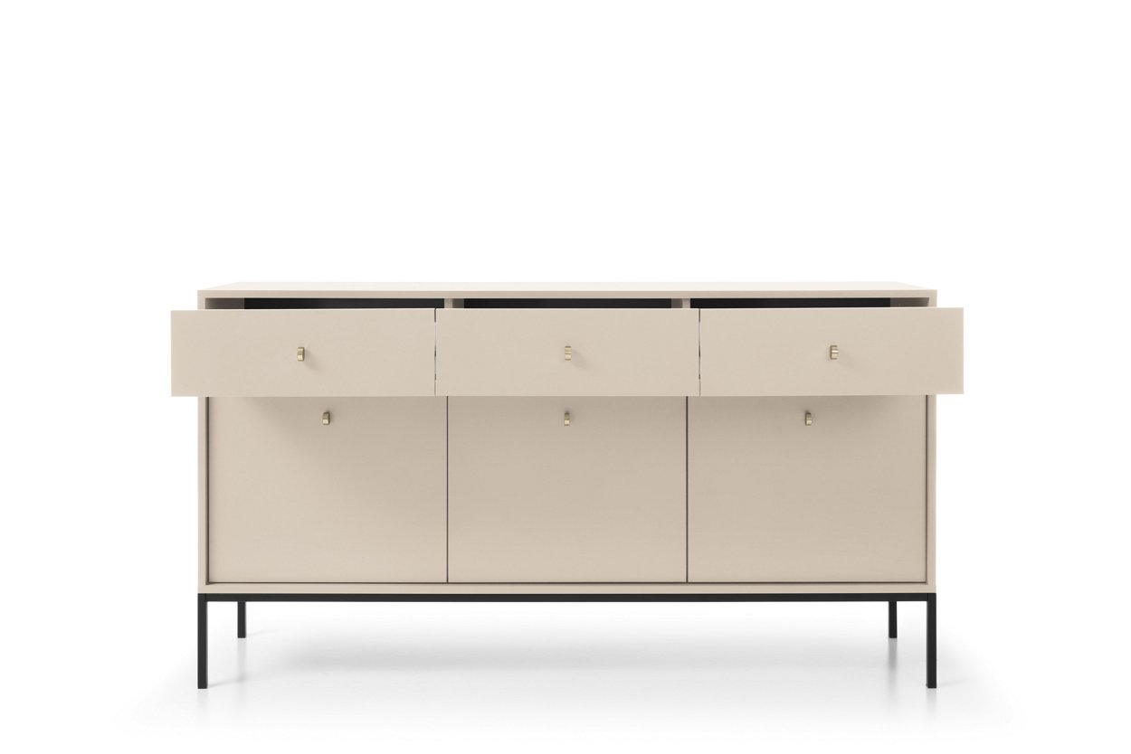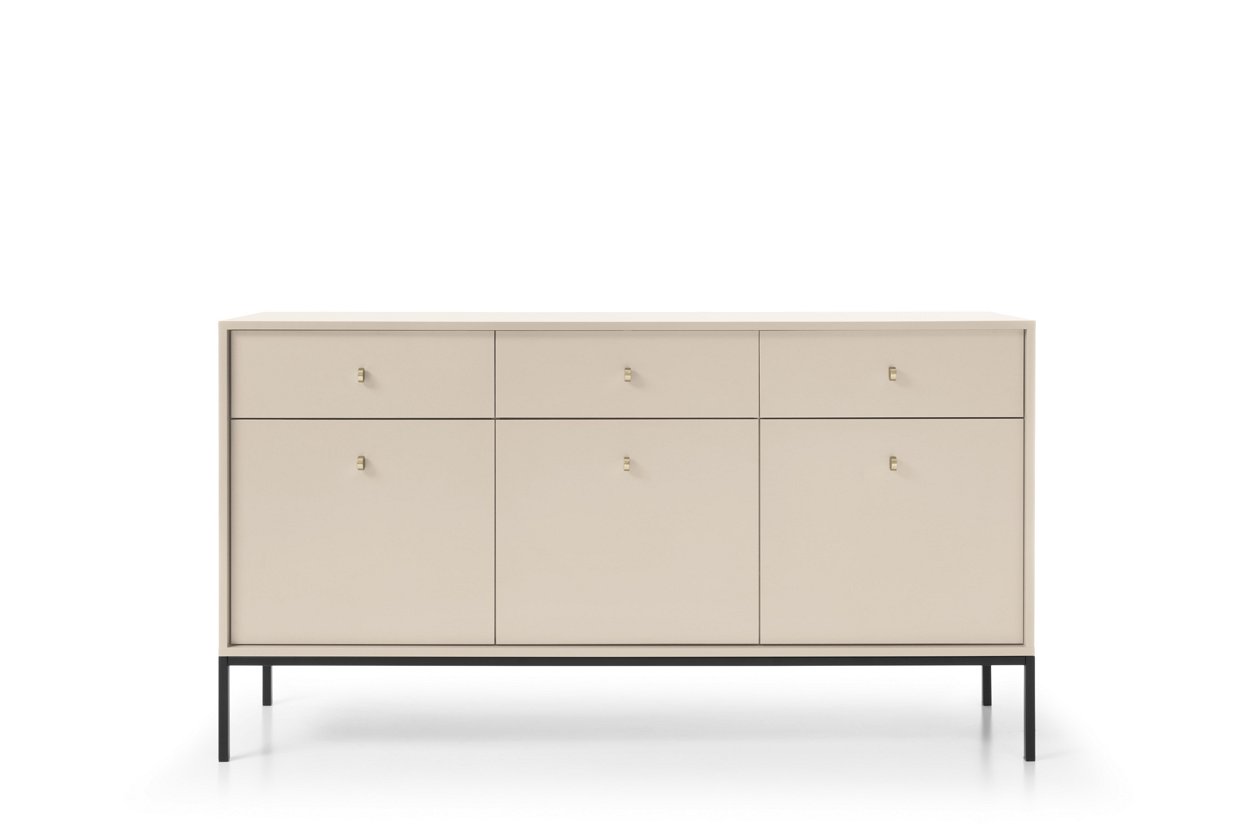 Комод Perfect Home Моно / Mono 3-дверний з 3 шухлядами і золотими ніжками MKSZ154 Беж пісочний