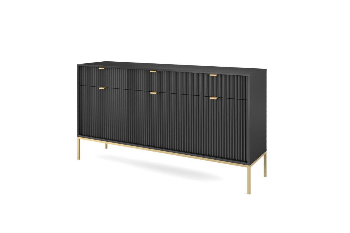 Комод Perfect Home Нова / Nova 3-дверний з 3 шухлядами і золотими ніжками KSZ154 Чорний