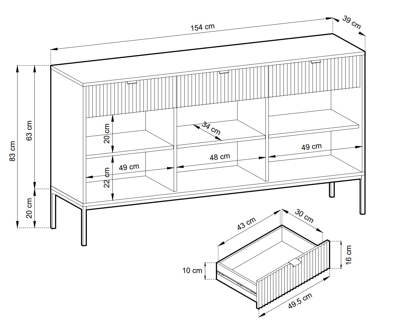 Тумба під телевізор Perfect Home Оро / Oro 3-дверна з золотими ніжками RTV175 Чорний