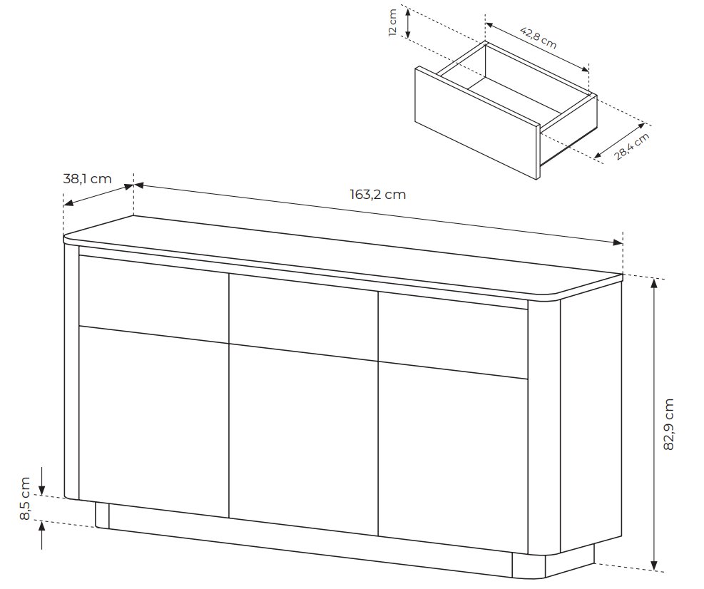 Зображення з  Комод Perfect Home Таво / Tavo 2D3S/153 2-дверний з 3 шухлядами Дуб кремона
