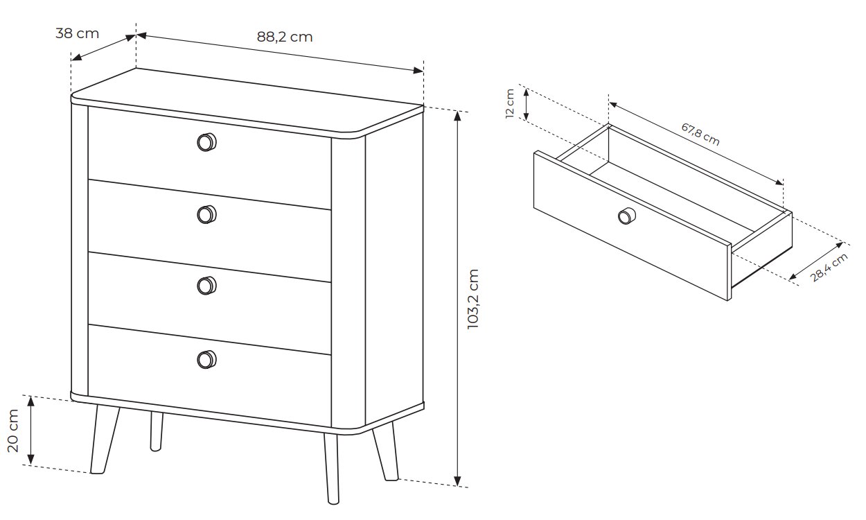 Комод Perfect Home Вікі / Viki 4S/88 з 4 шухлядами Дуб бариста