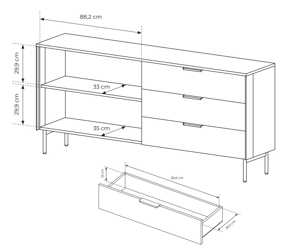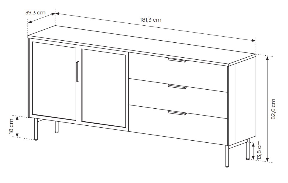 Комод з підсвіткою Perfect Home Лумі / Lumi 2D3S/181 2-дверний з 3 шухлядами Дуб дунін