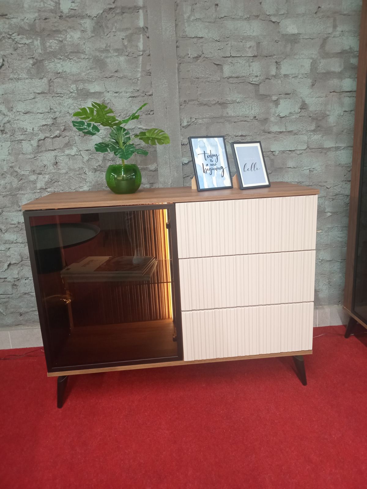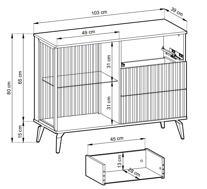 Комод Perfect Home Моно / Mono 2-дверний з 2 шухлядами і чорними ніжками MKSZ104 Беж пісочний