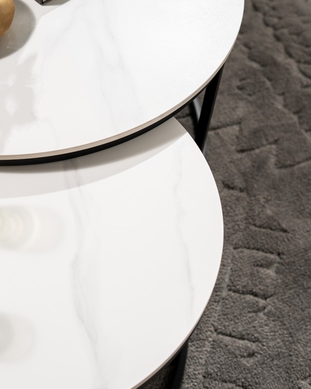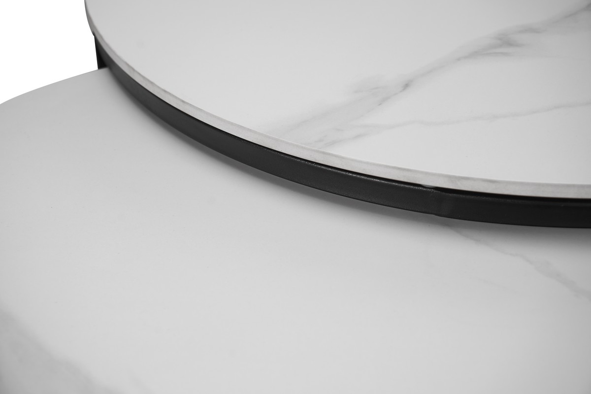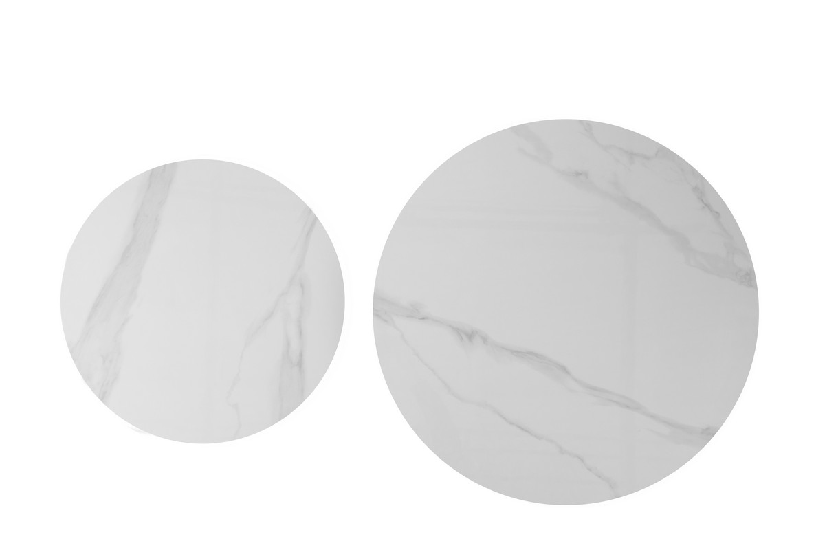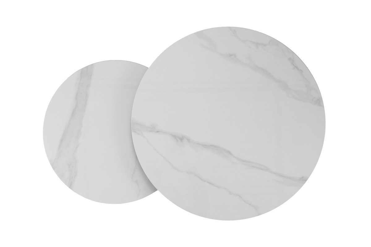 Комплект журнальних столів CT-35 Лоренза в кольорі "каса вайт" — це стильне та сучасне рішення для вашого інтер'єру. Набір включає два круглих столи різного діаметра, що дозволяє використовувати їх як разом, так і окремо, залежно від ваших потреб і простору.
