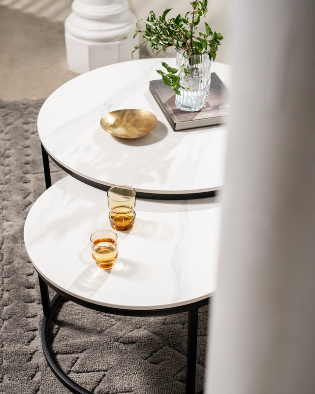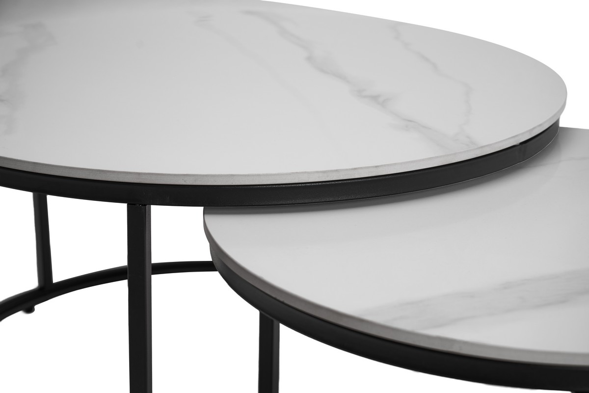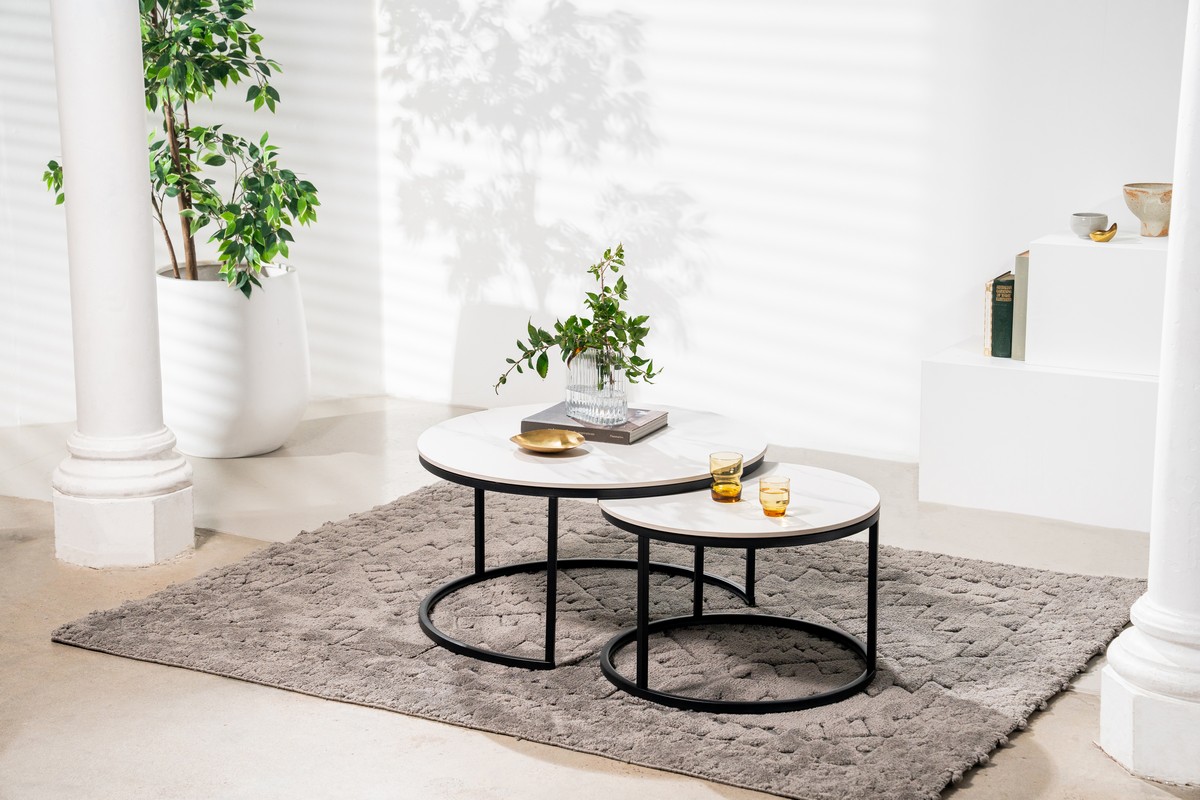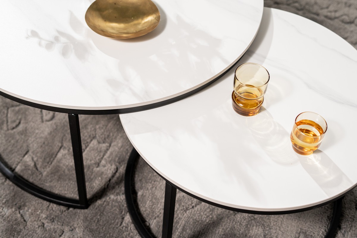 Комплект журнальних столів CT-35 Лоренза в кольорі "каса вайт" — це стильне та сучасне рішення для вашого інтер'єру. Набір включає два круглих столи різного діаметра, що дозволяє використовувати їх як разом, так і окремо, залежно від ваших потреб і простору.