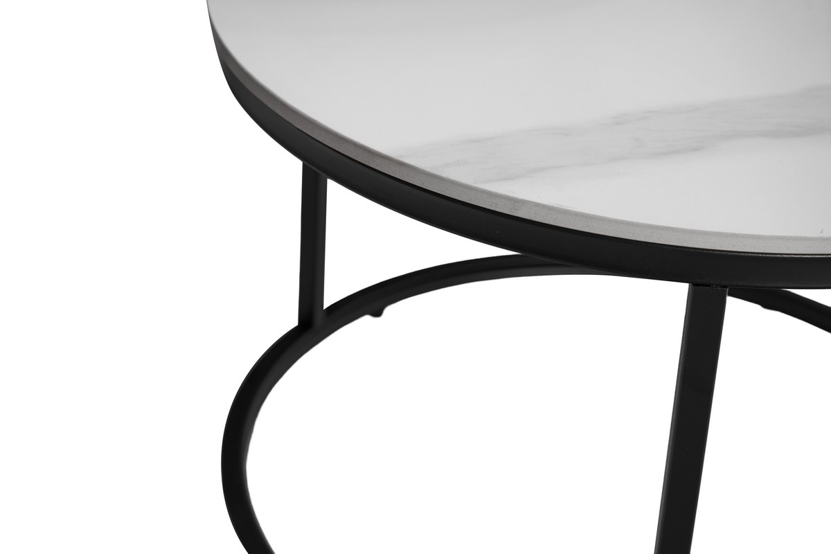 Кругла форма столів додає м'якості простору, створюючи гармонійний і збалансований інтер'єр. Основа з фарбованого металу чорного кольору додає контрастності та міцності, роблячи ці столи не лише функціональними, але й стильними елементами декору.