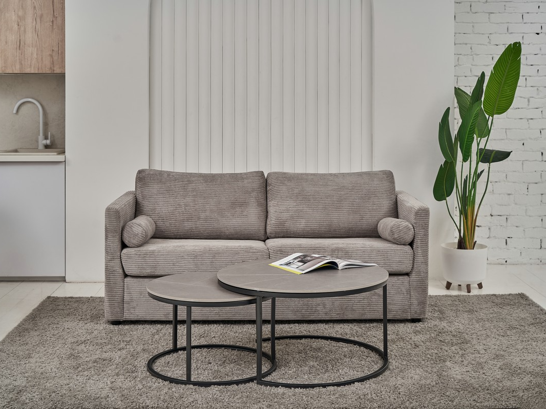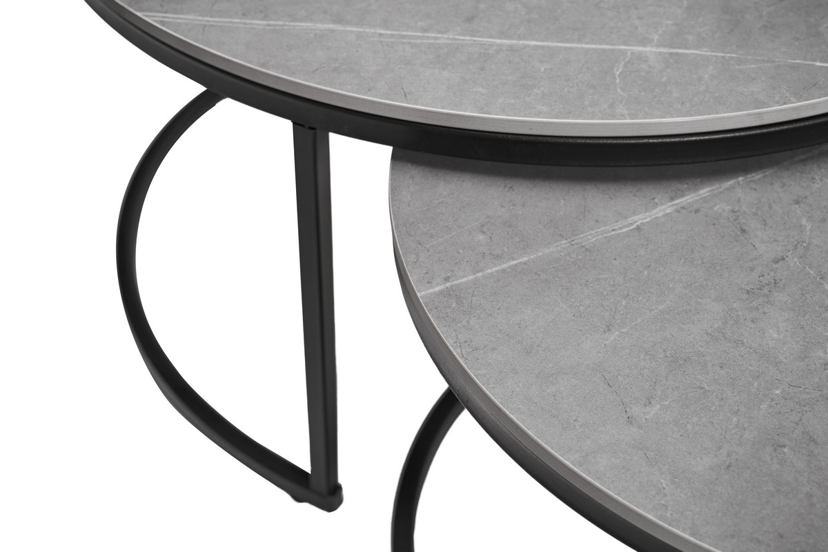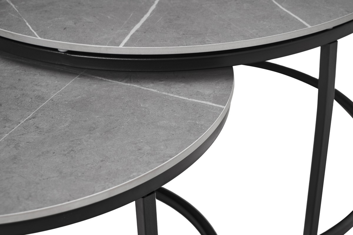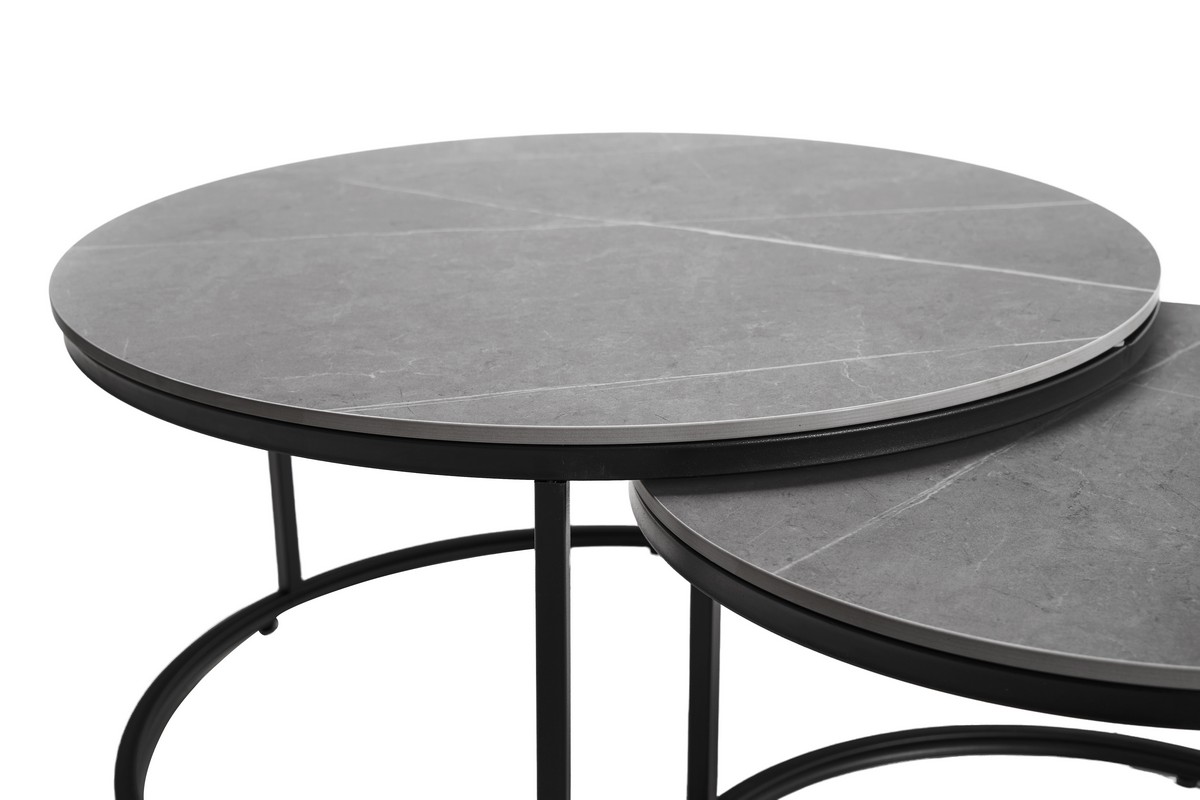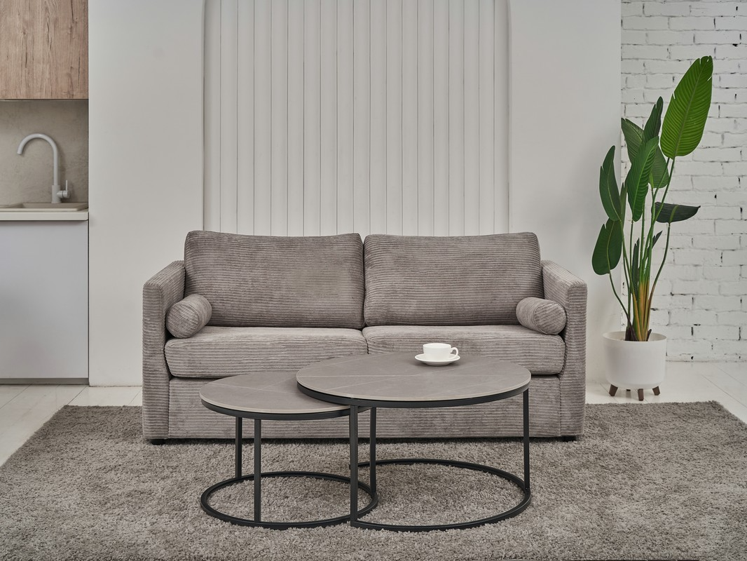 Комплект журнальних столів CT-35 Лоренза в кольорі "петра грей" з чорним поєднує сучасний дизайн та функціональність, надаючи вашому інтер'єру елегантності. Набір складається з двох круглих столів різного діаметра, які можна використовувати разом або окремо, залежно від ваших потреб і простору.