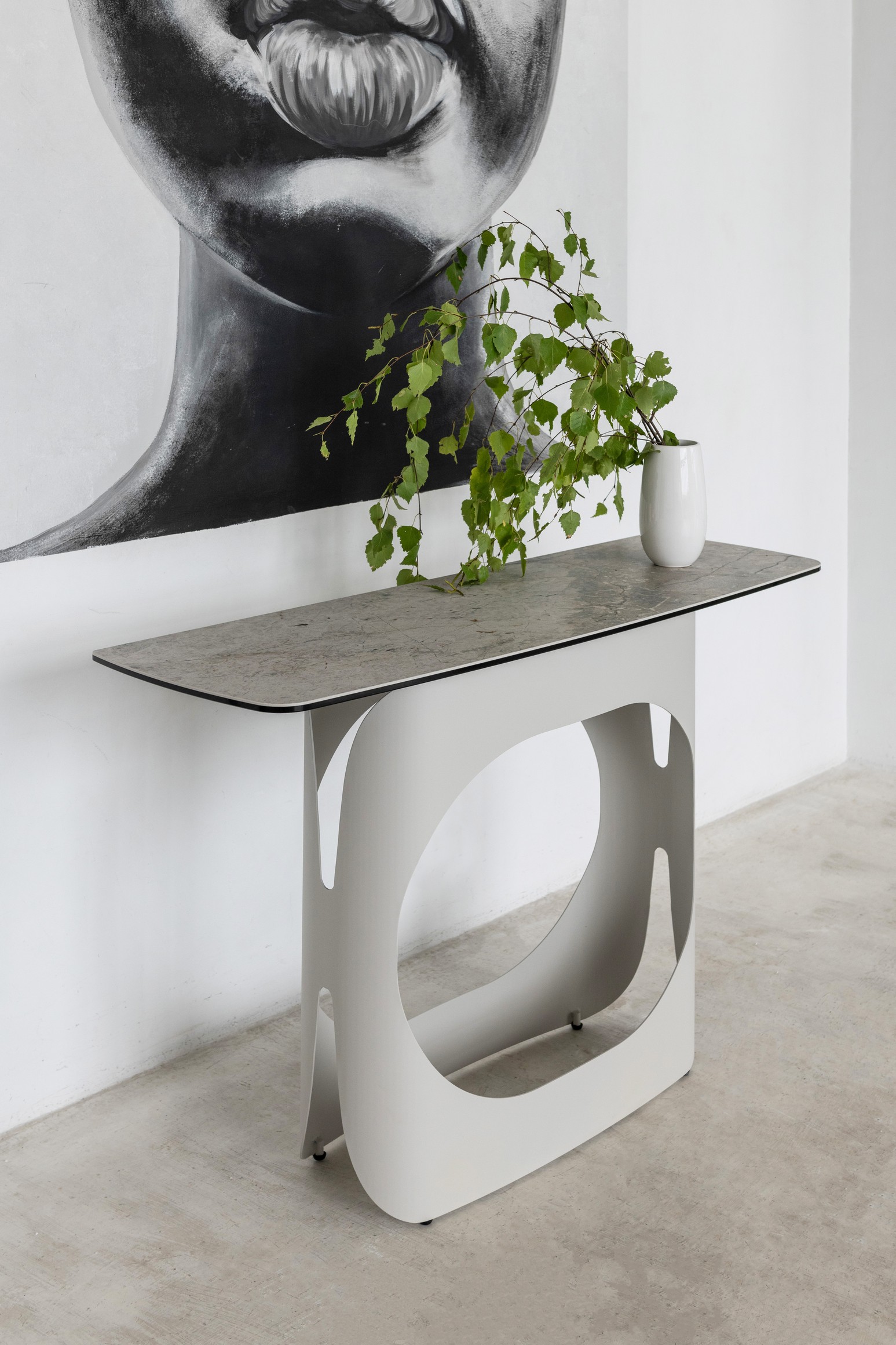 Світла металева основа в кольорі айворі надає консолі легкості та сучасного характеру, водночас забезпечуючи стабільність конструкції. Прямокутна форма та компактні розміри роблять "Арно" універсальним рішенням: вона гармонійно доповнить передпокій, вітальню чи спальню, підкресливши елегантність простору.