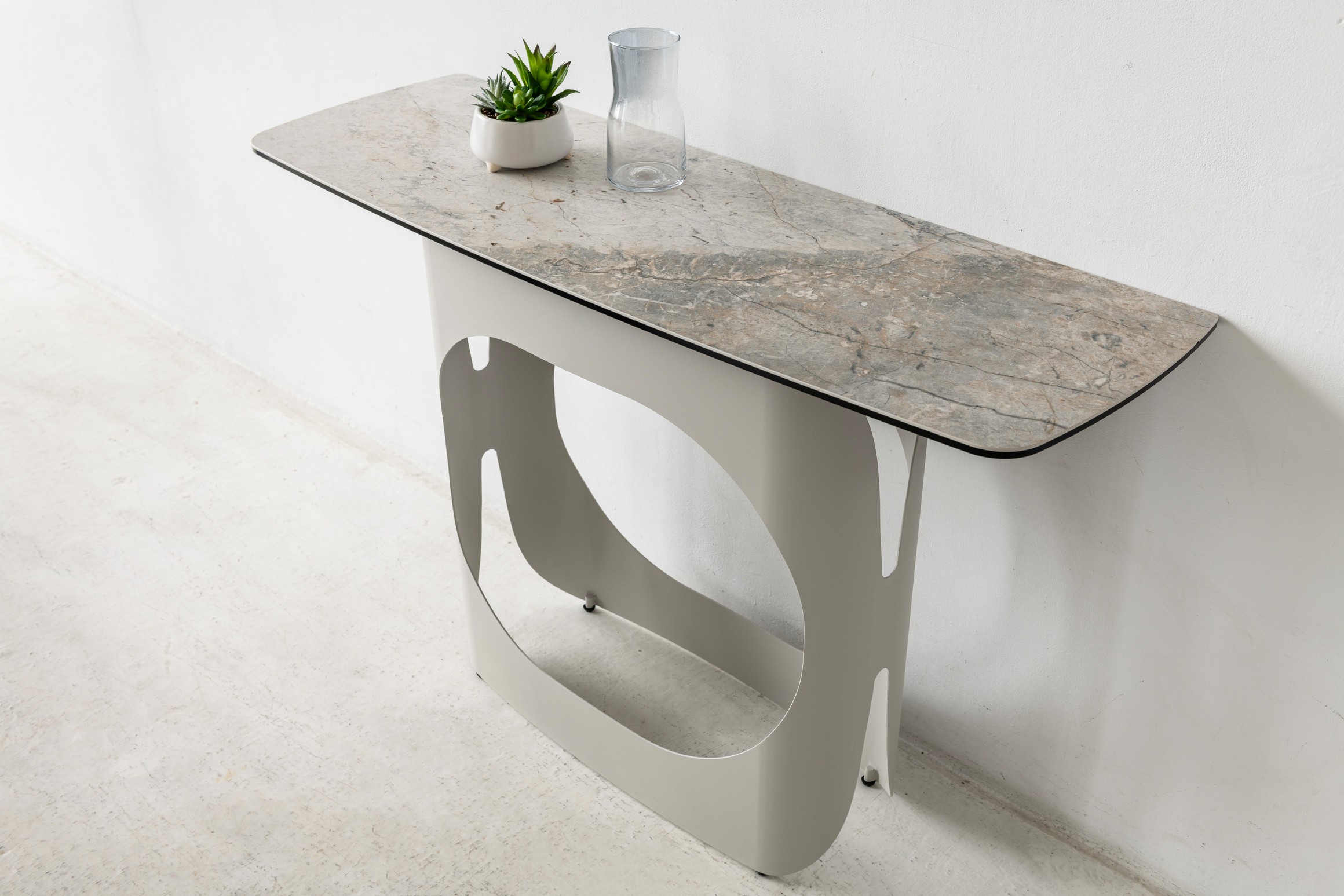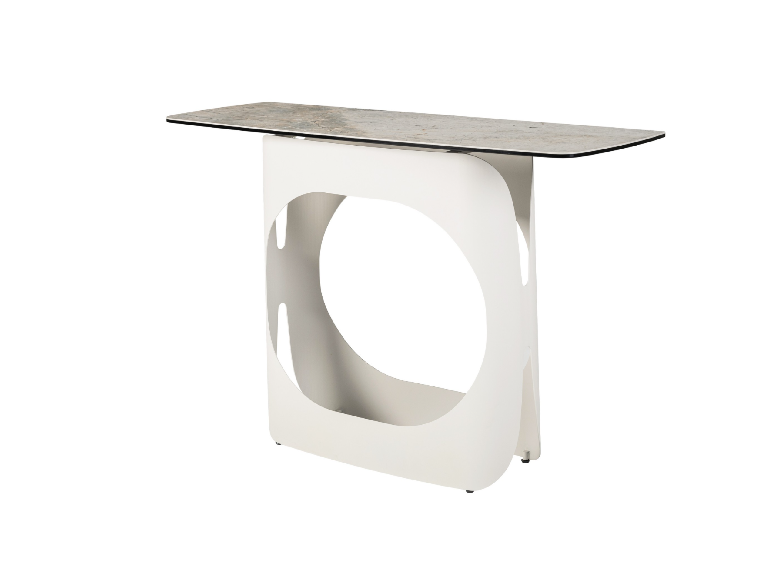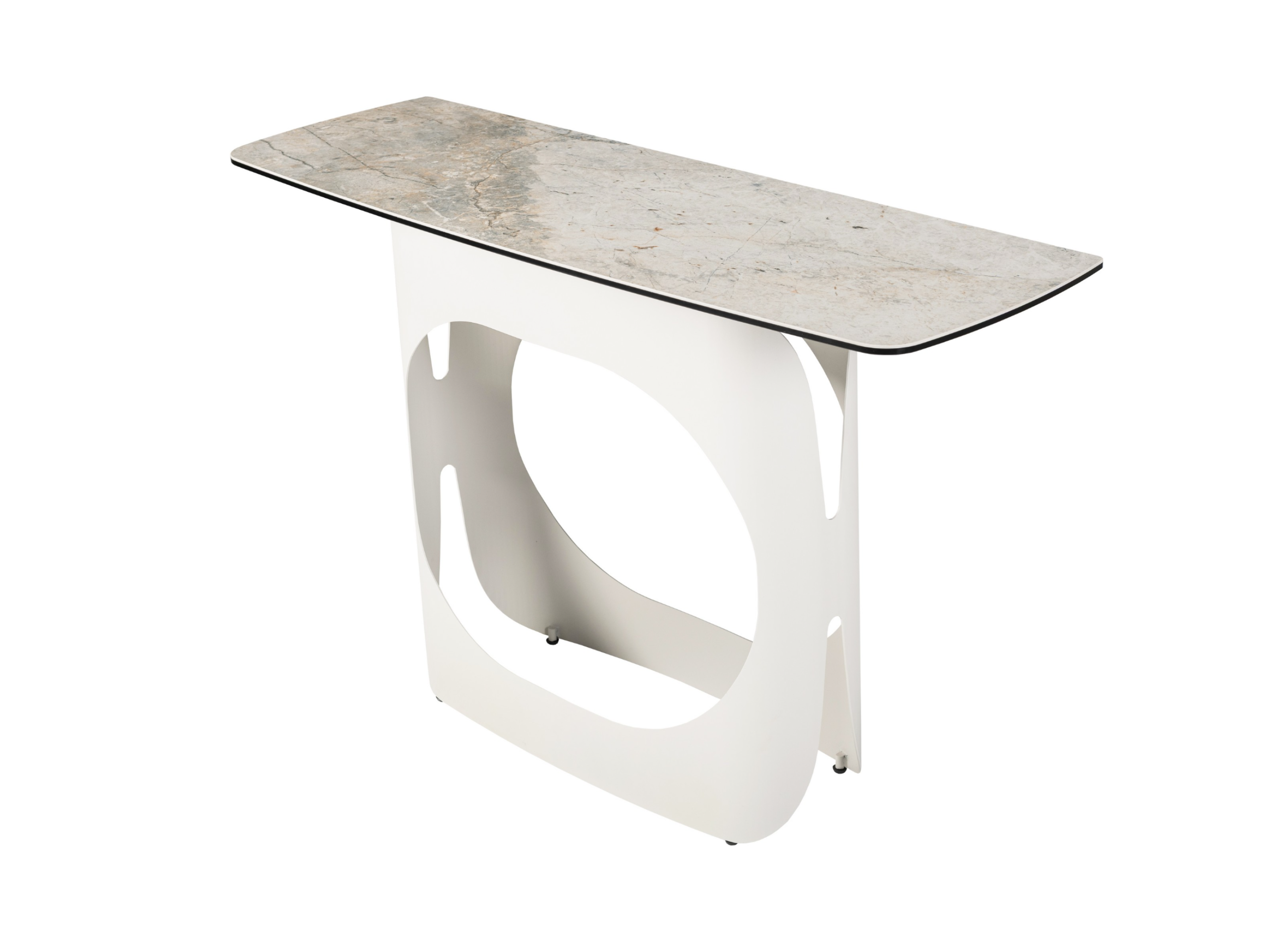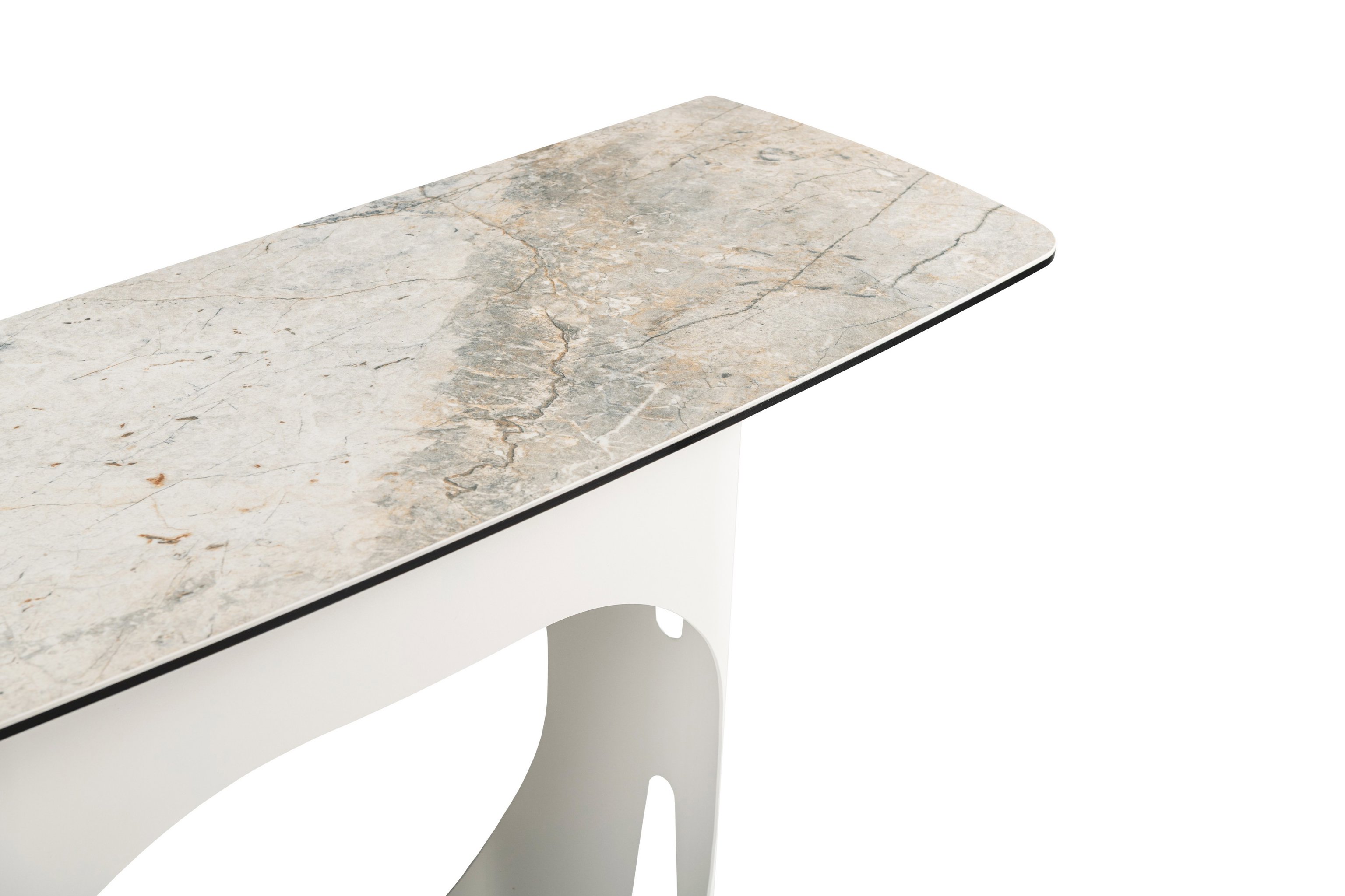 Консоль "Арно" сілвер рівер + айворі — це витончене поєднання стилю та функціональності, яке стане стильним акцентом у вашому інтер’єрі. Стільниця з матової кераміки у відтінку сілвер рівер вражає природною текстурою, що нагадує переливи каменю, створюючи відчуття вишуканості та гармонії. Поверхня поєднана з гартованим склом, завдяки чому вона вирізняється міцністю, стійкістю до подряпин та простотою у догляді.