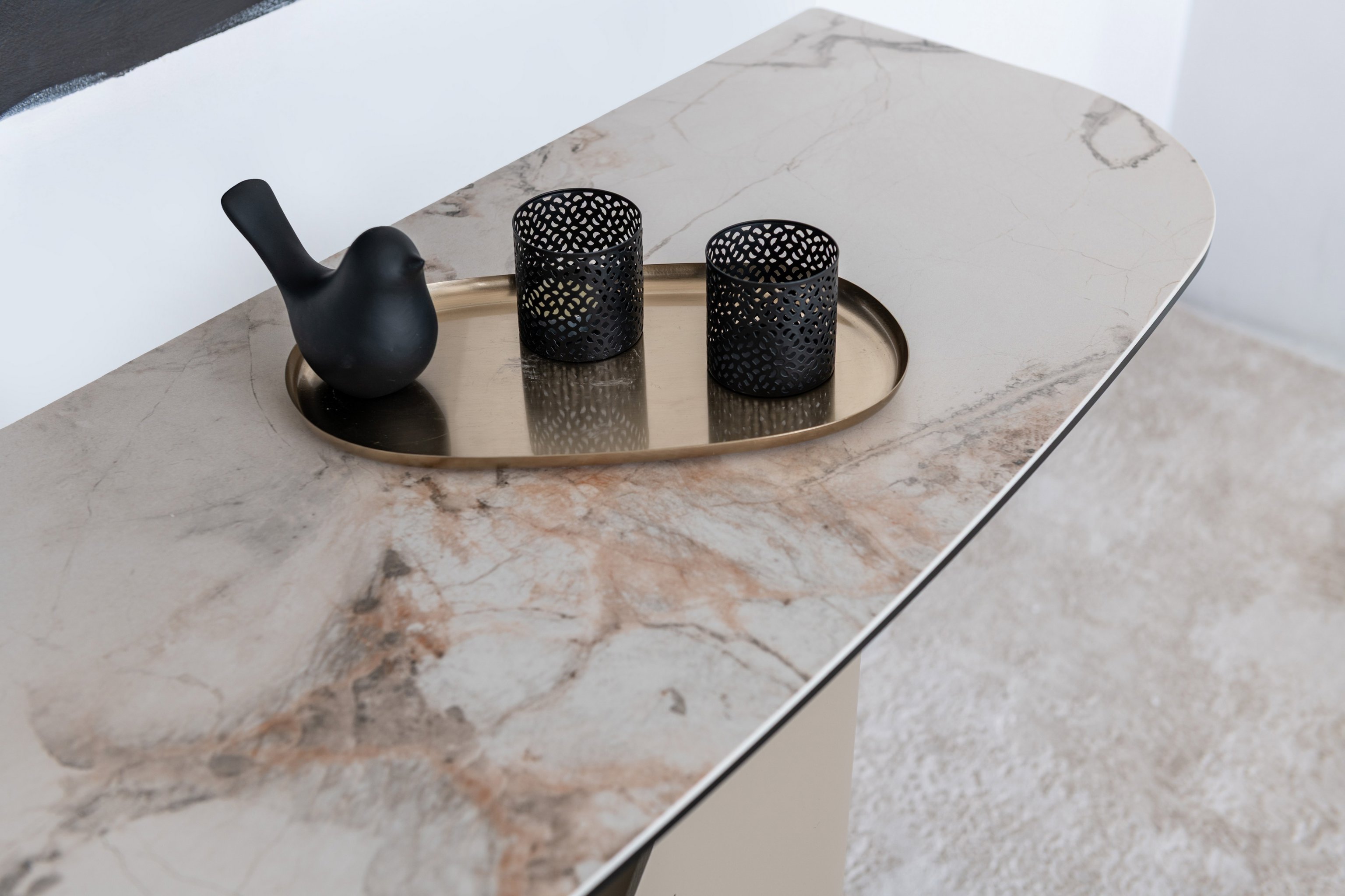 Металева основа з фарбованим покриттям надає консолі надійності та легкості, створюючи гармонійний баланс між функціональністю та витонченістю. Стриманий силует і благородна палітра кольорів дозволяють цьому предмету меблів стати стильним доповненням інтер’єру — від класики до сучасного мінімалізму.