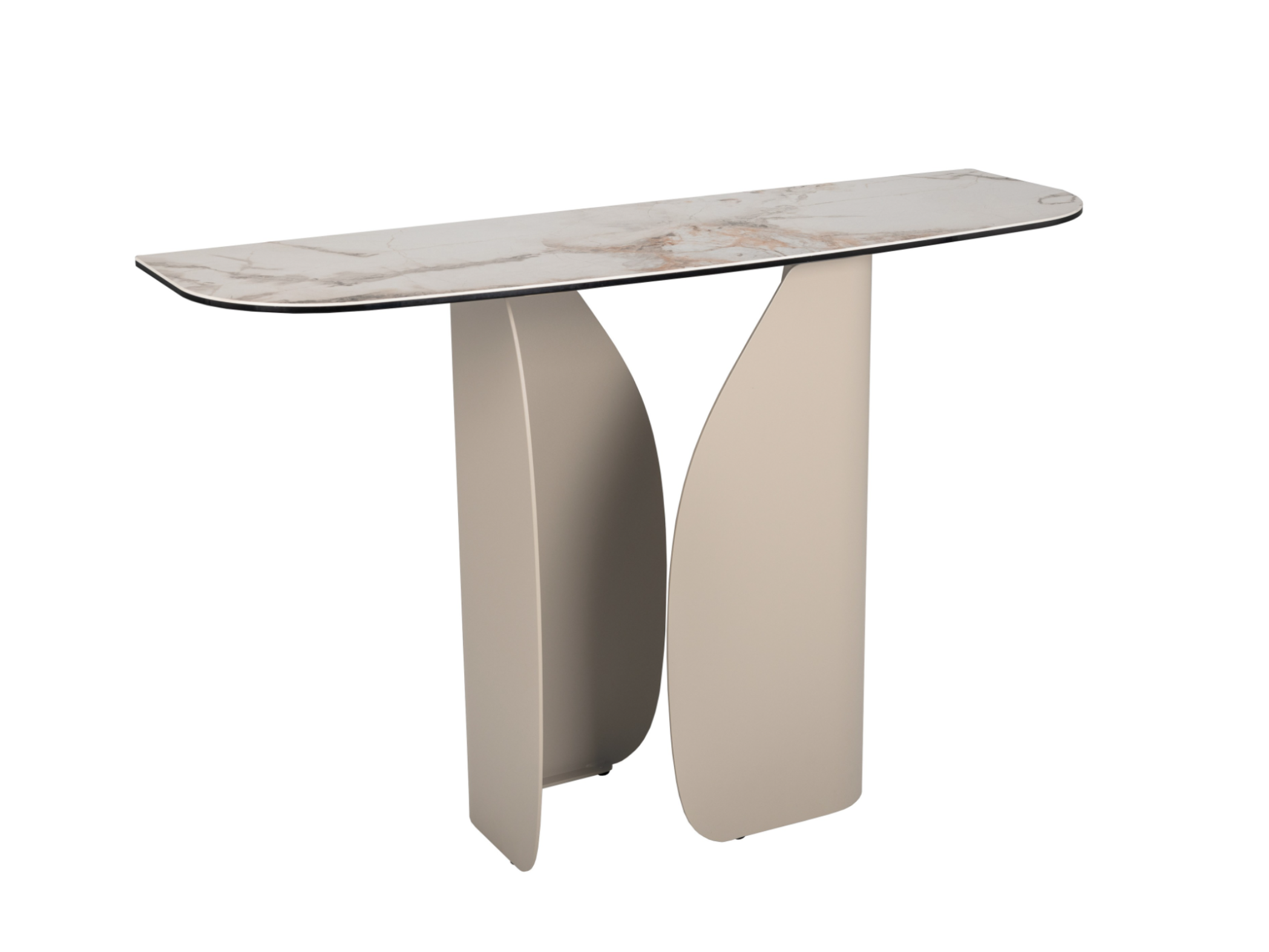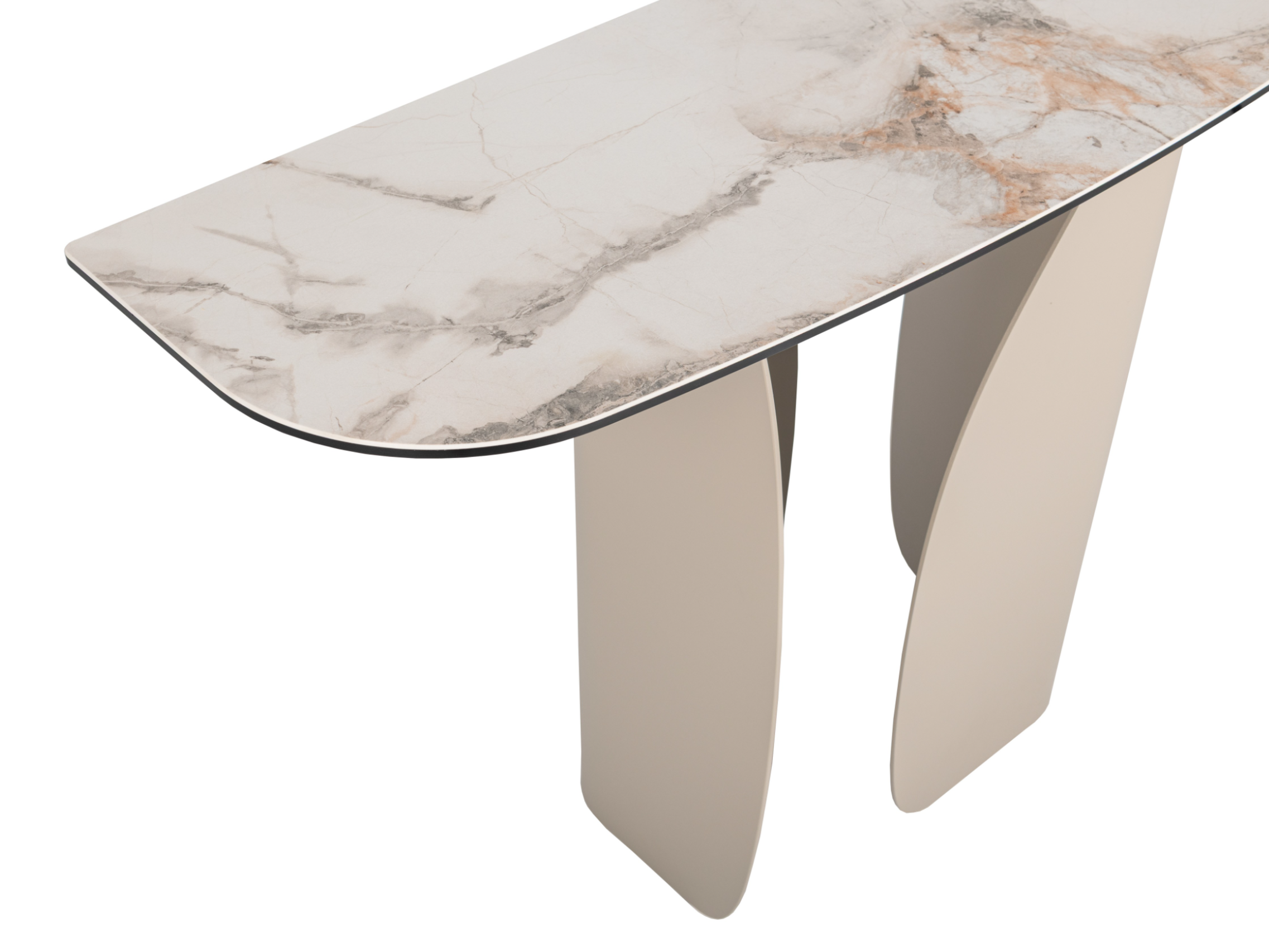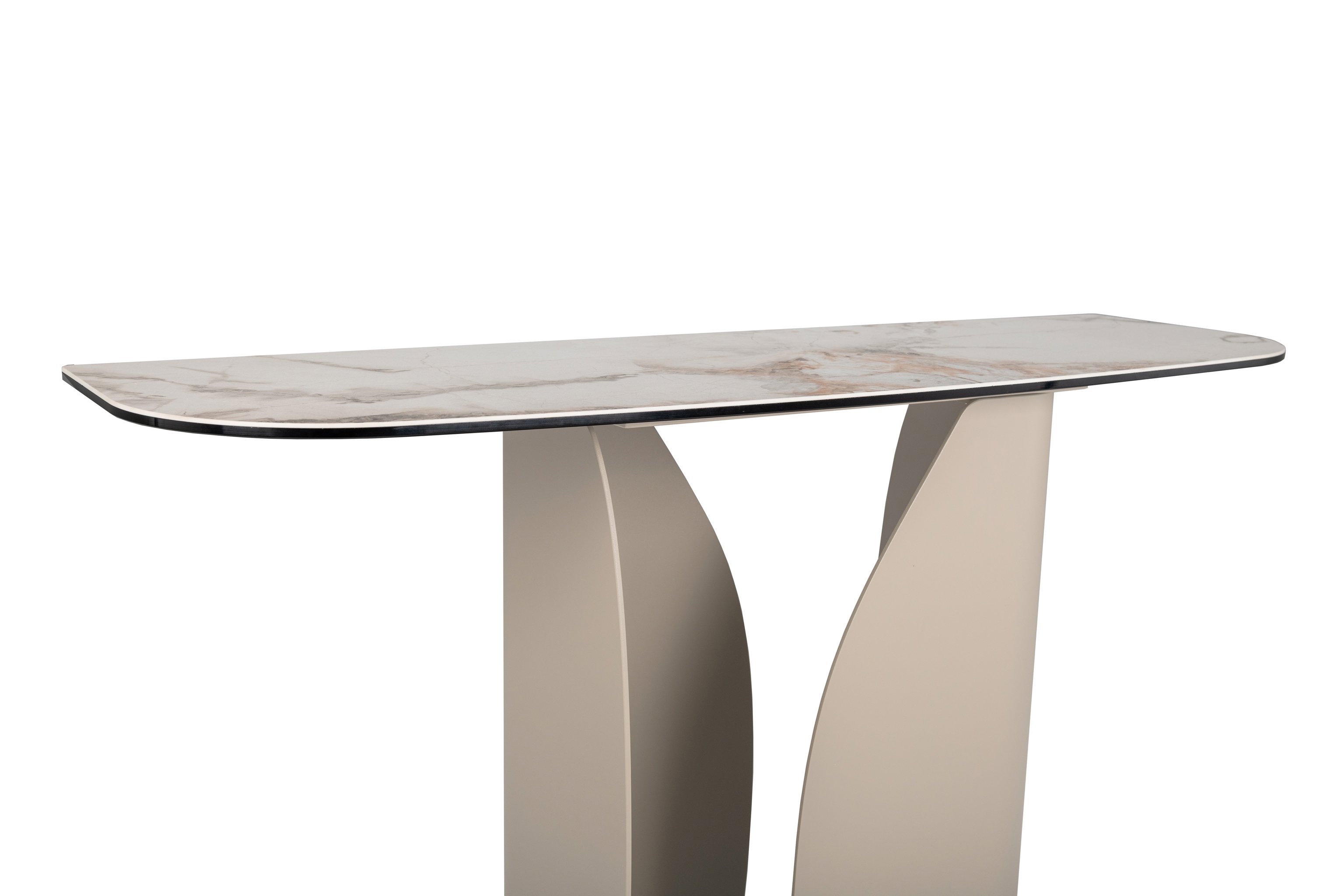 Консоль "Крістіано" в кольорі аврора голд + бежевий — це втілення вишуканості та стриманої елегантності. Її прямокутна стільниця з матової кераміки та гартованого скла зачаровує благородною текстурою, поєднуючи природну естетику з високою міцністю. Стійка до подряпин, вологи та температурних впливів, вона зберігає бездоганний вигляд у будь-яких умовах.