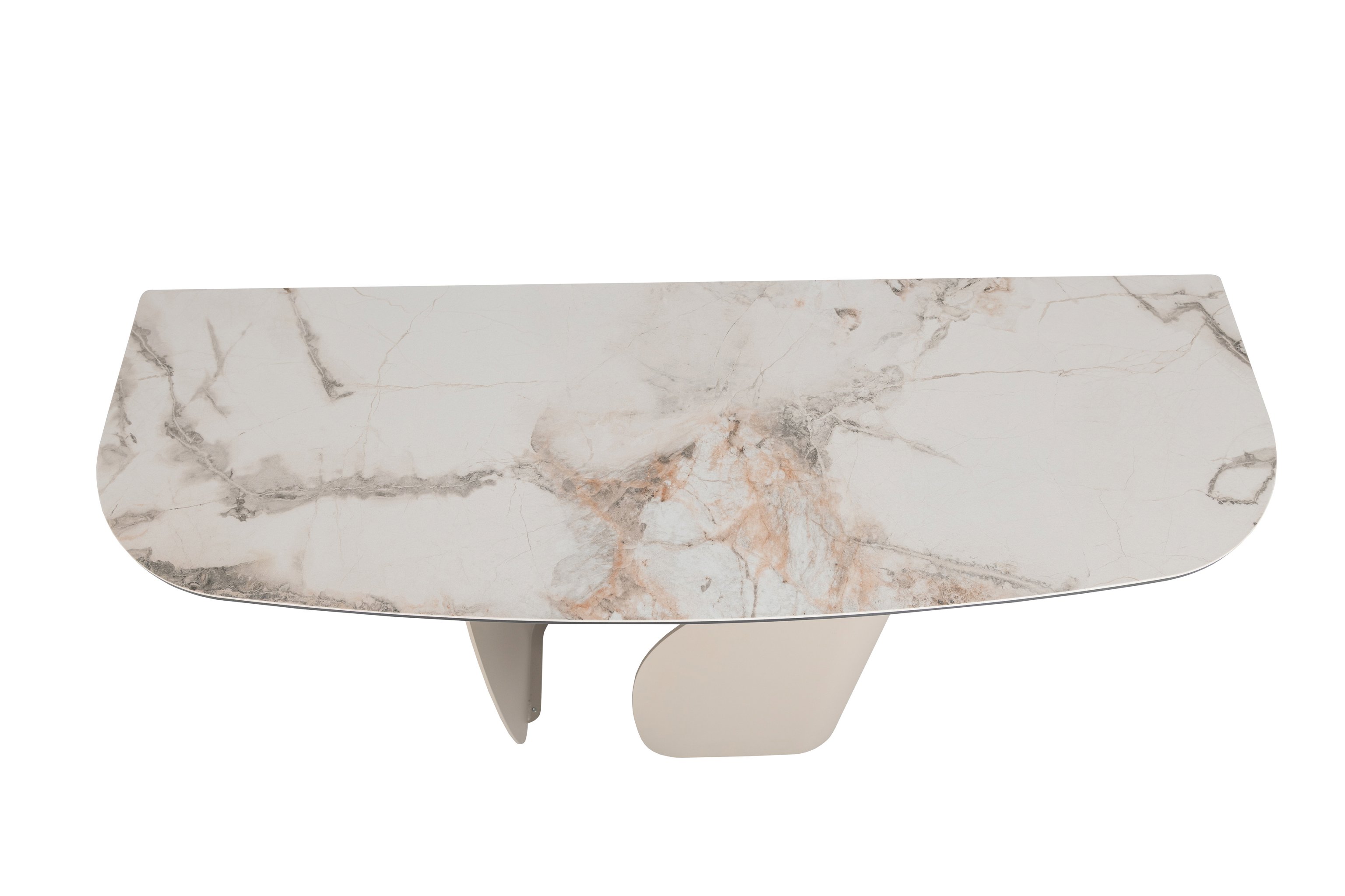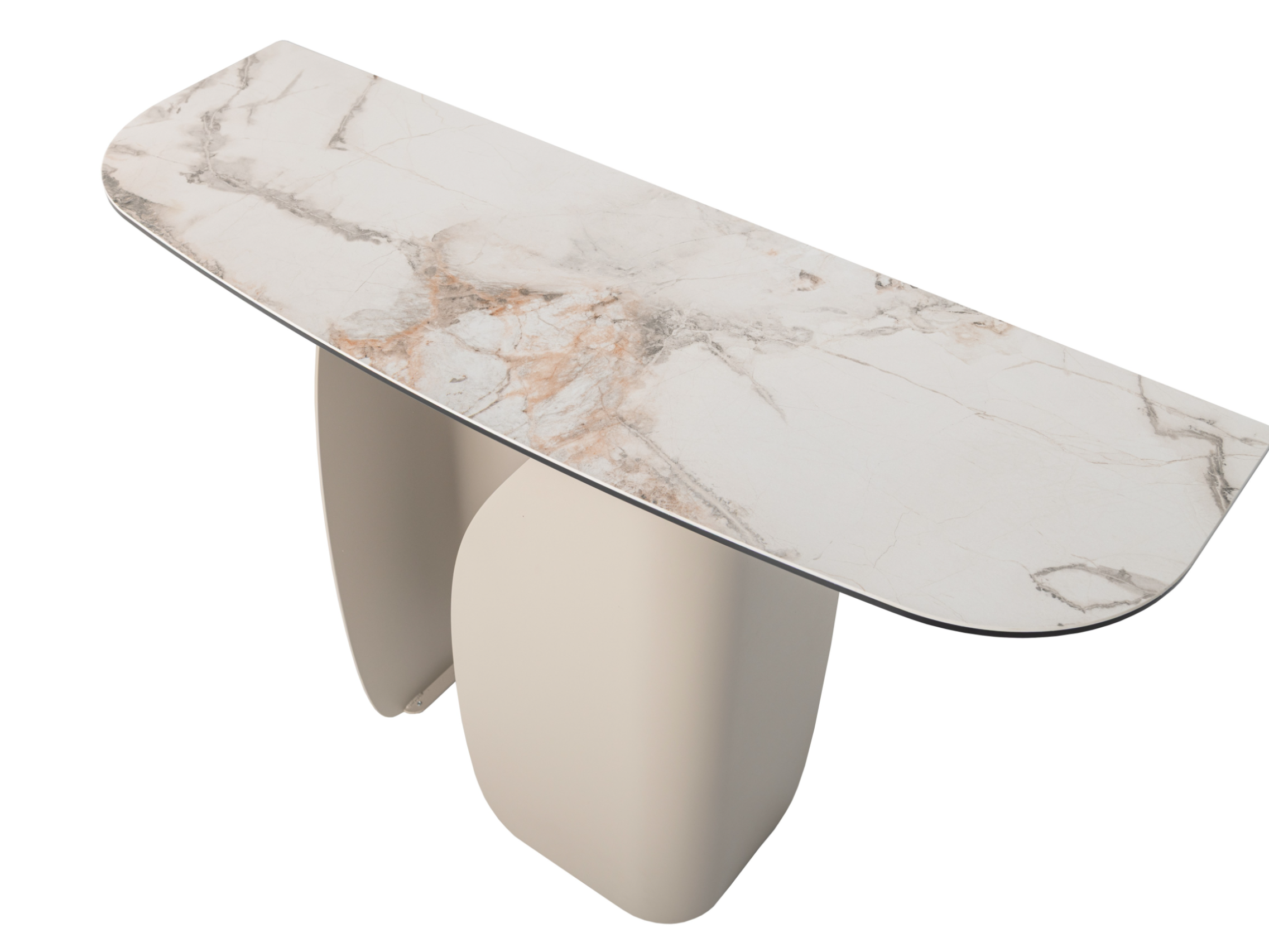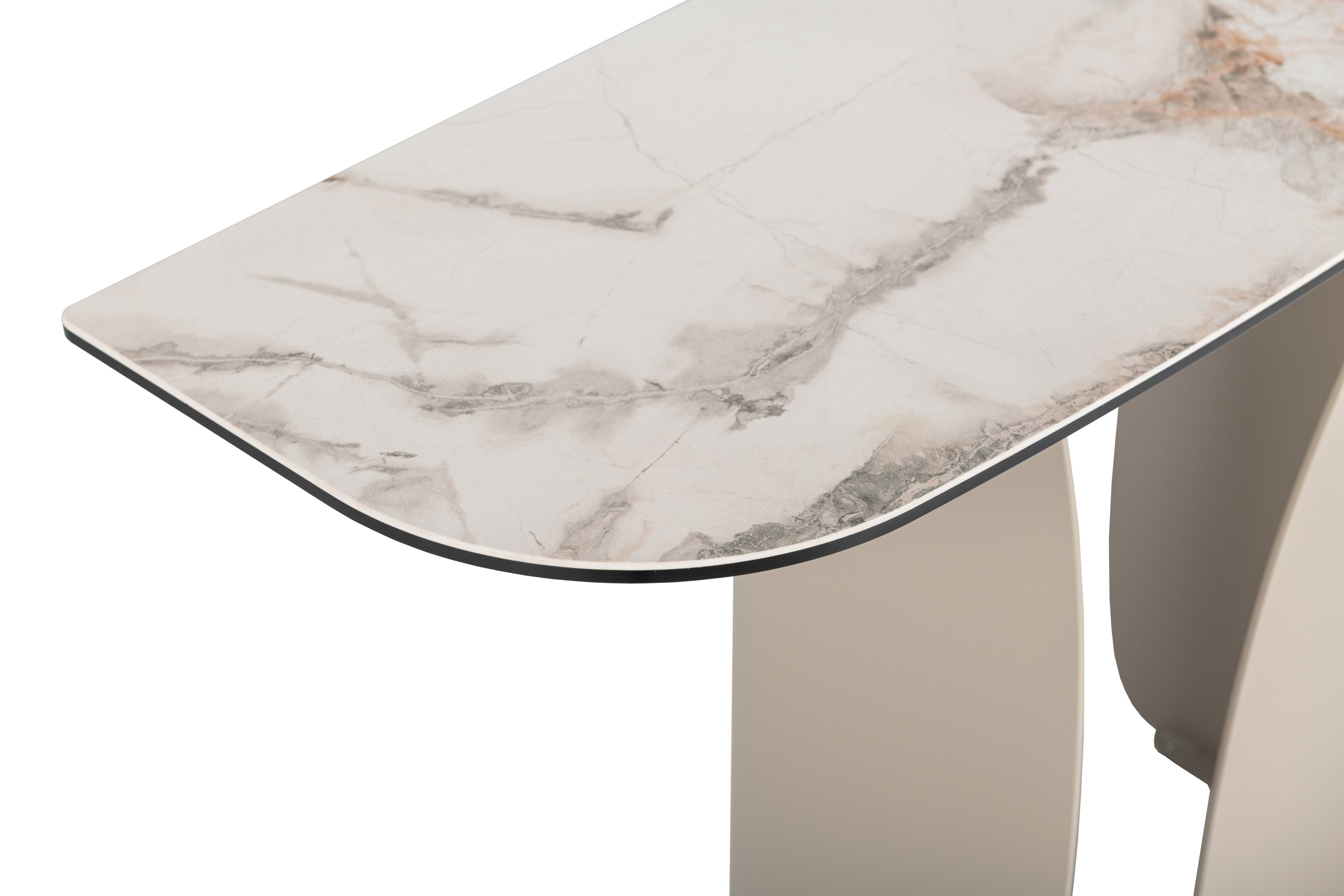 Консоль "Крістіано" в кольорі аврора голд + бежевий — це втілення вишуканості та стриманої елегантності. Її прямокутна стільниця з матової кераміки та гартованого скла зачаровує благородною текстурою, поєднуючи природну естетику з високою міцністю. Стійка до подряпин, вологи та температурних впливів, вона зберігає бездоганний вигляд у будь-яких умовах.