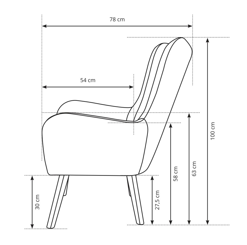 Крісло Ted - це сучасний, низький, модерновий предмет меблів з конструкцією з дерева та фанери. Набір декорований вертикальною строчкою на подушках спинки та стилізованою спинкою. Весь комплект стоїть на високих дерев'яних ніжках. Меблі доступні в широкому асортименті тканин, які розміщені в майстрі виробів.