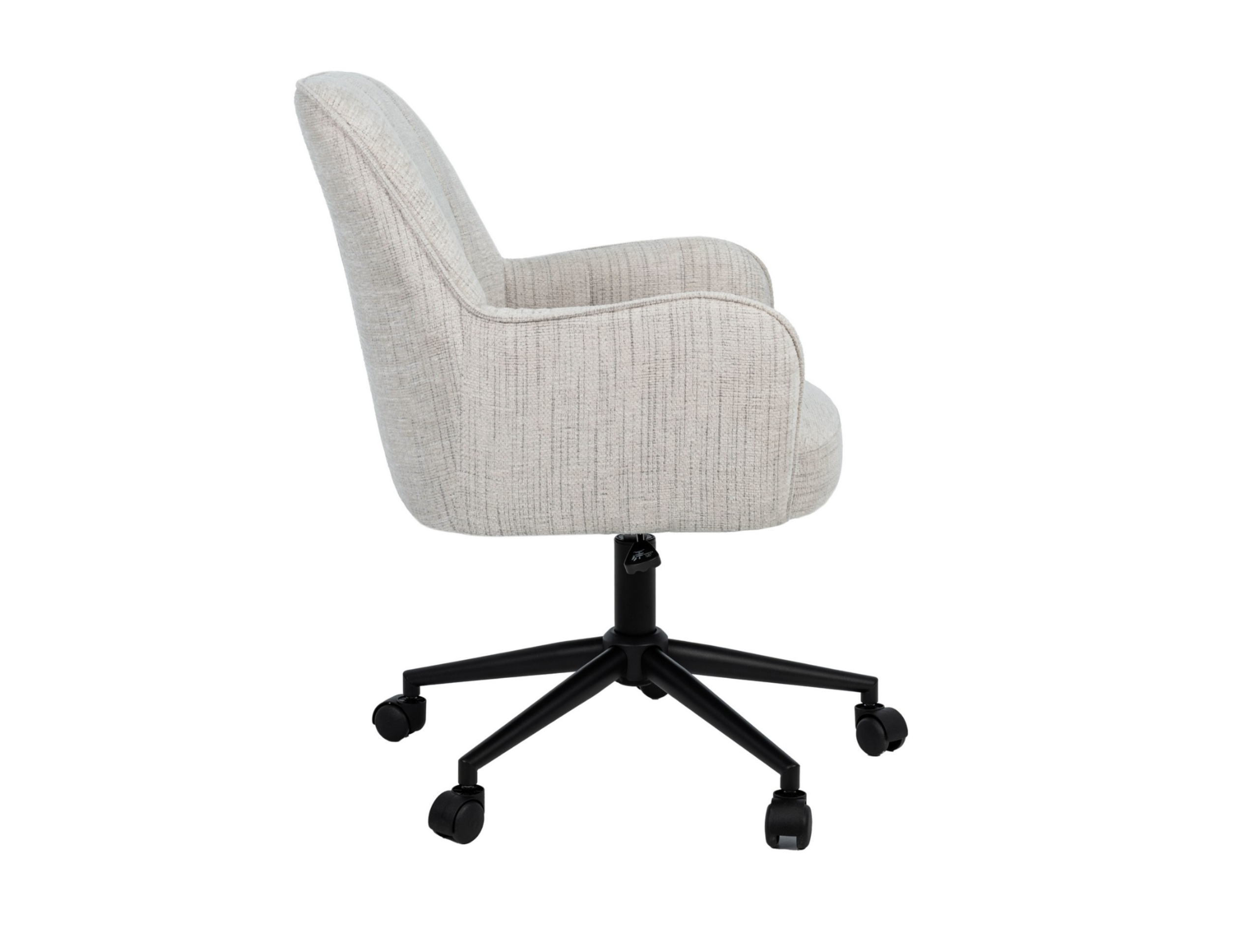 Механізм обертання на 360° і зручні колеса забезпечують свободу руху, роблячи робочий процес комфортним і динамічним. Металева основа, пофарбована в чорний колір, додає моделі стабільності та візуального контрасту, підкреслюючи її сучасний характер.