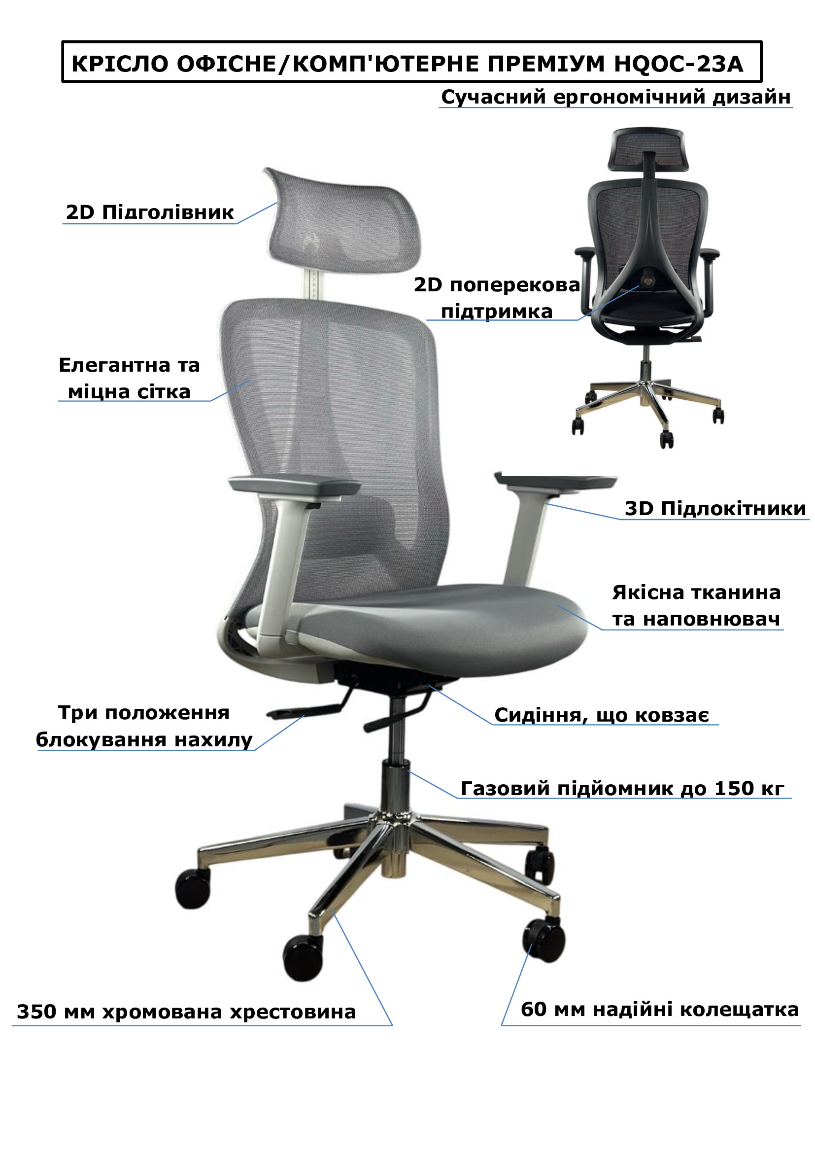 Крісло офісне/комп'ютерне преміум HQOC-17-G Perfect Home Україна Сірий